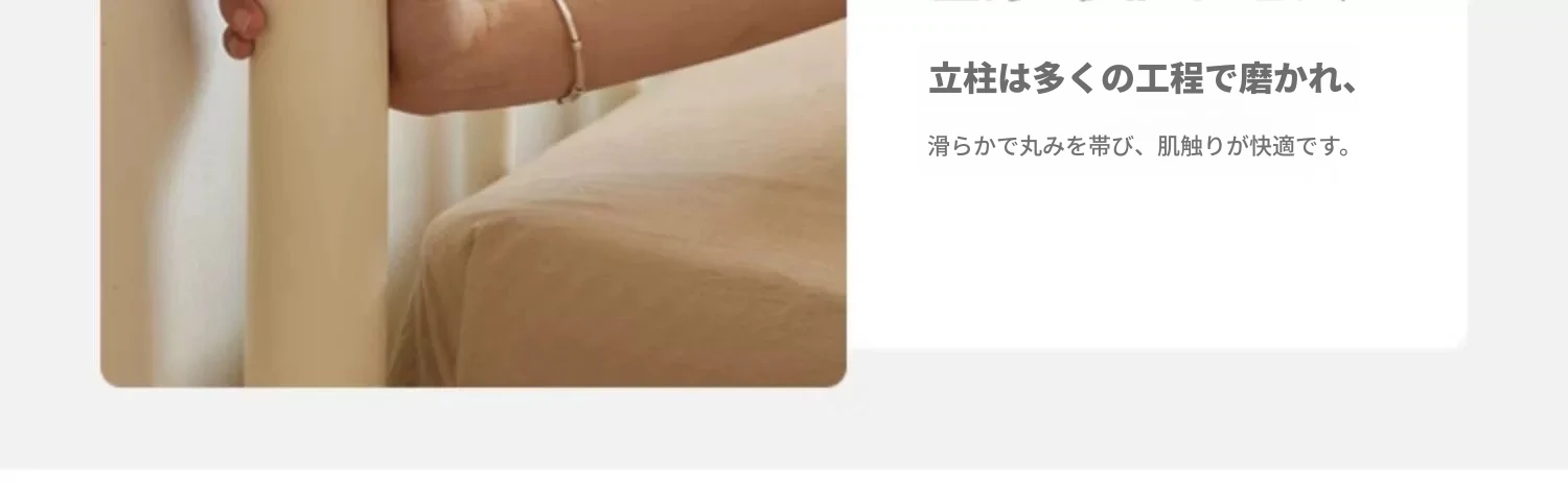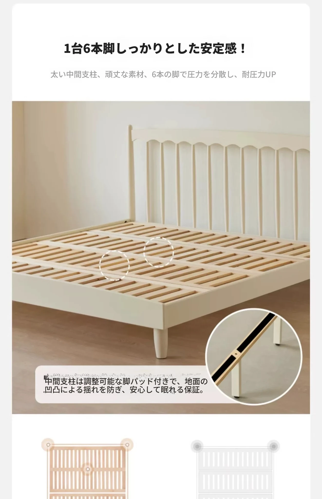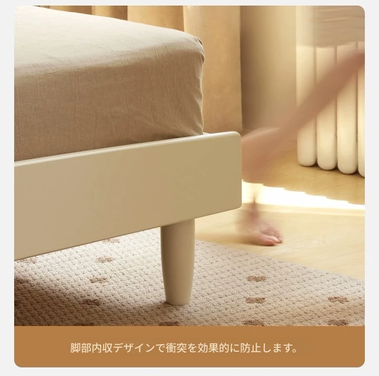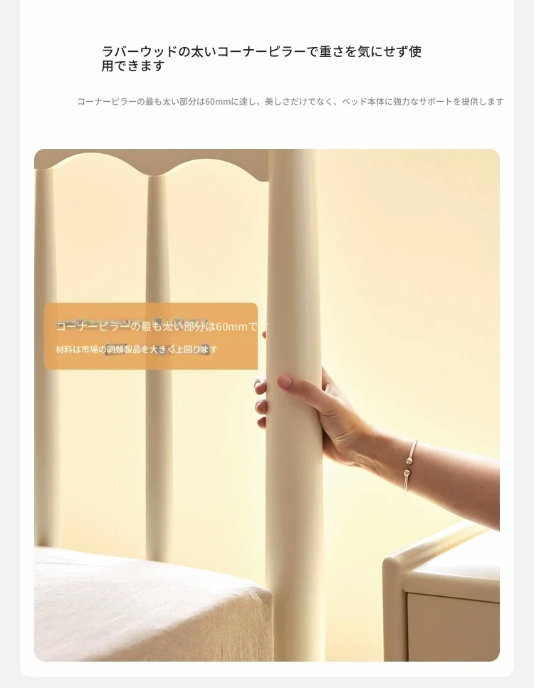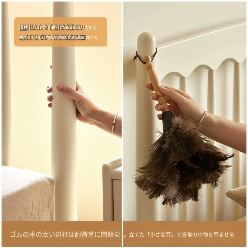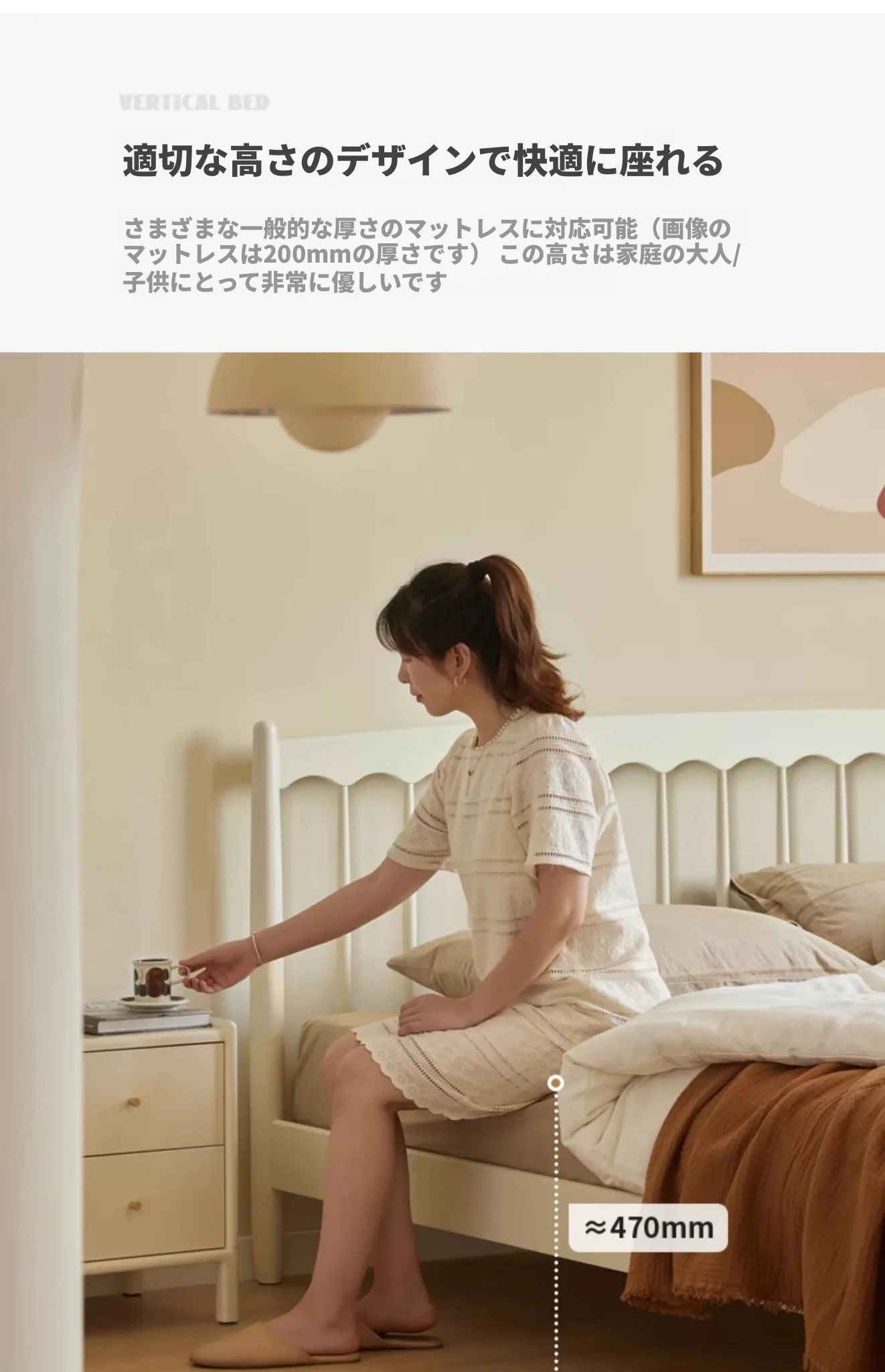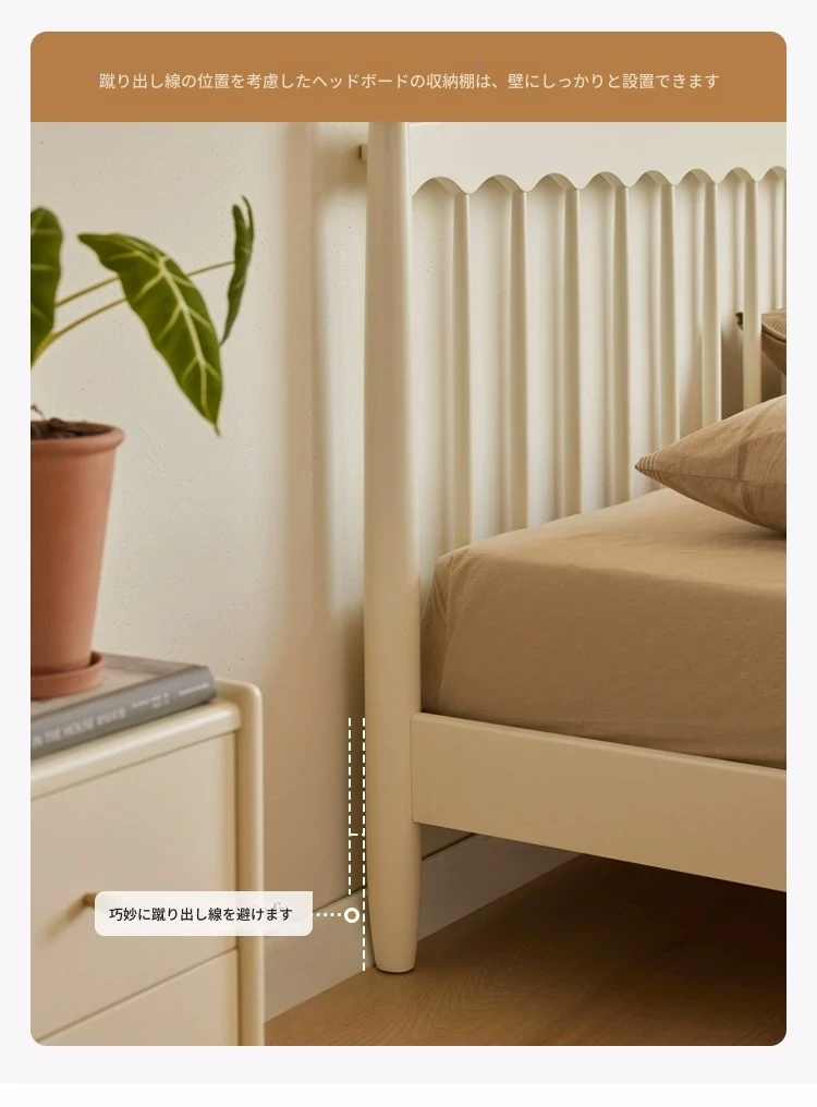オーセンティックな無垢材のベッド - モダンでシンプルなクリーム風デザイン、ホワイトのハープ・ウィンザースタイル。小型住宅にもぴったりのダブルベッドで、快適な眠りを提供します。