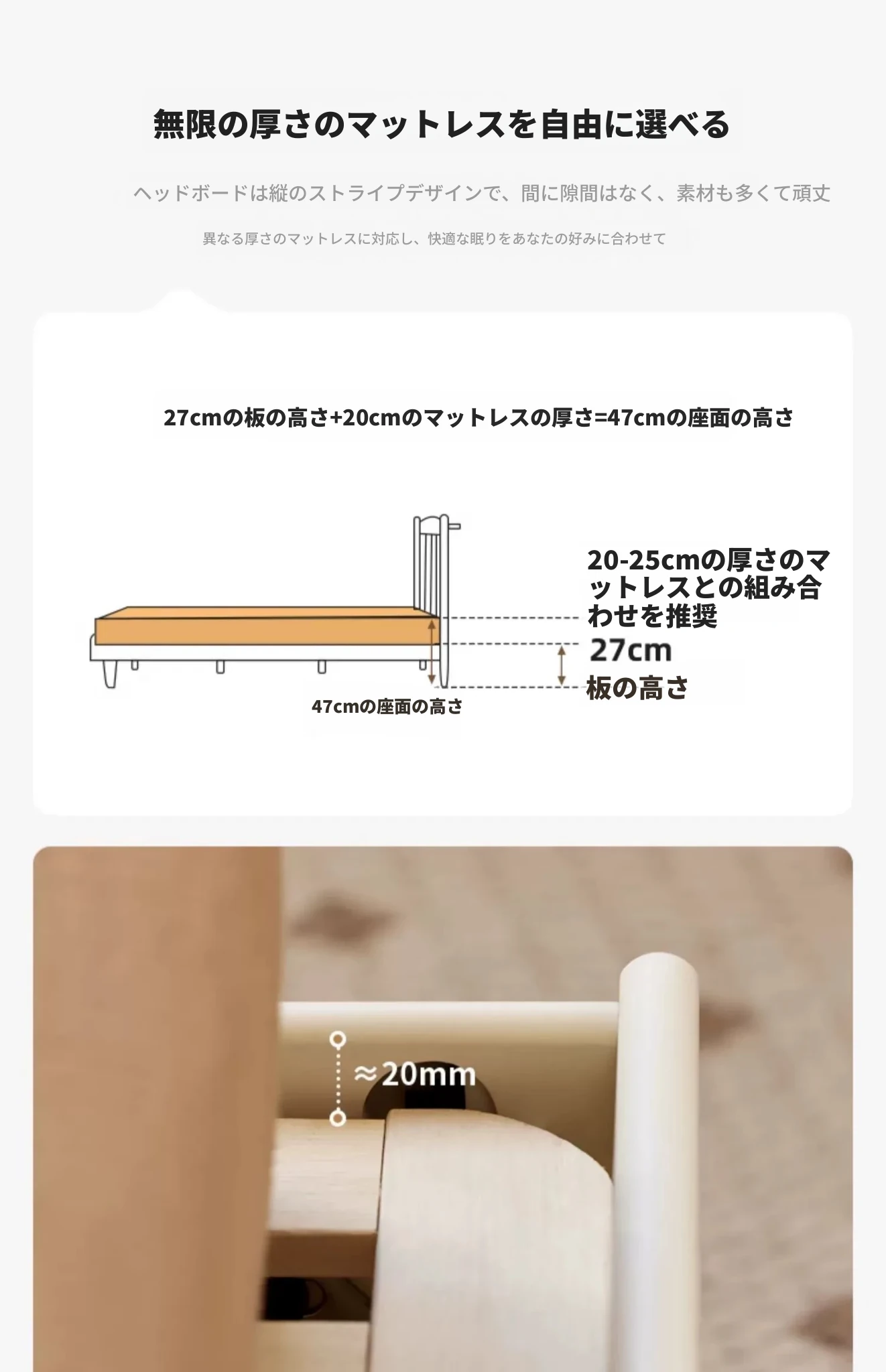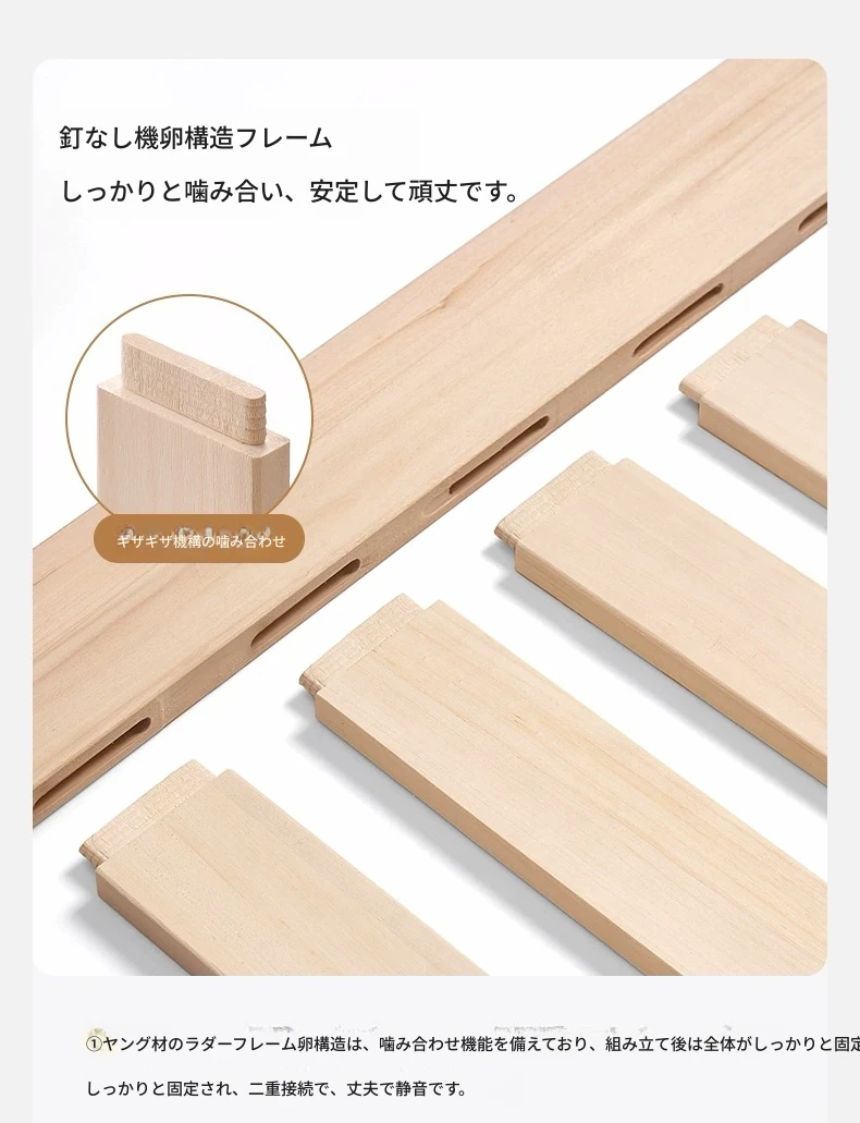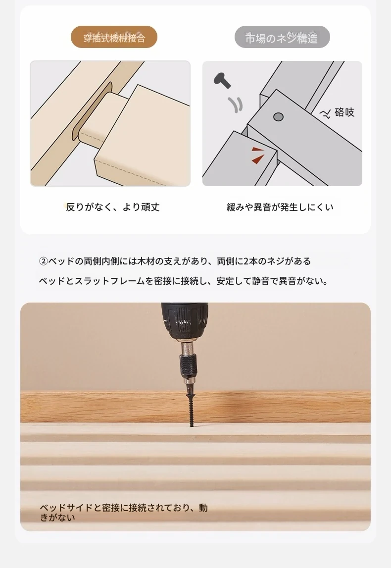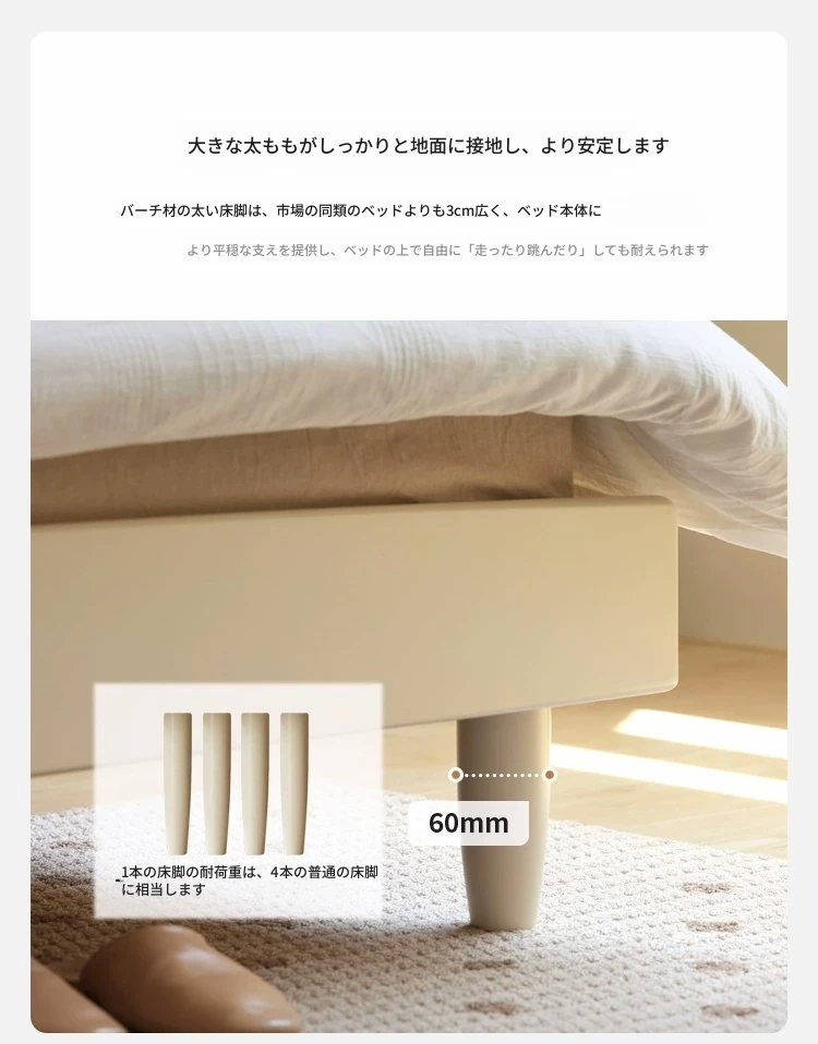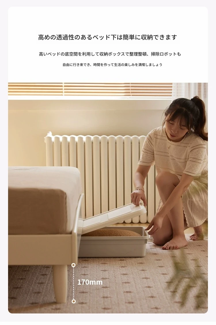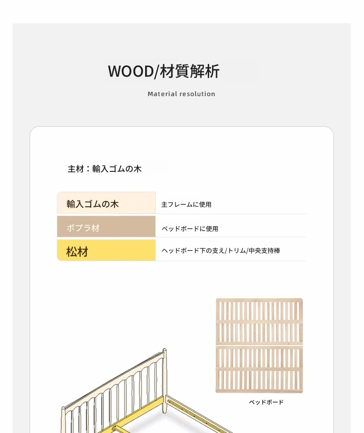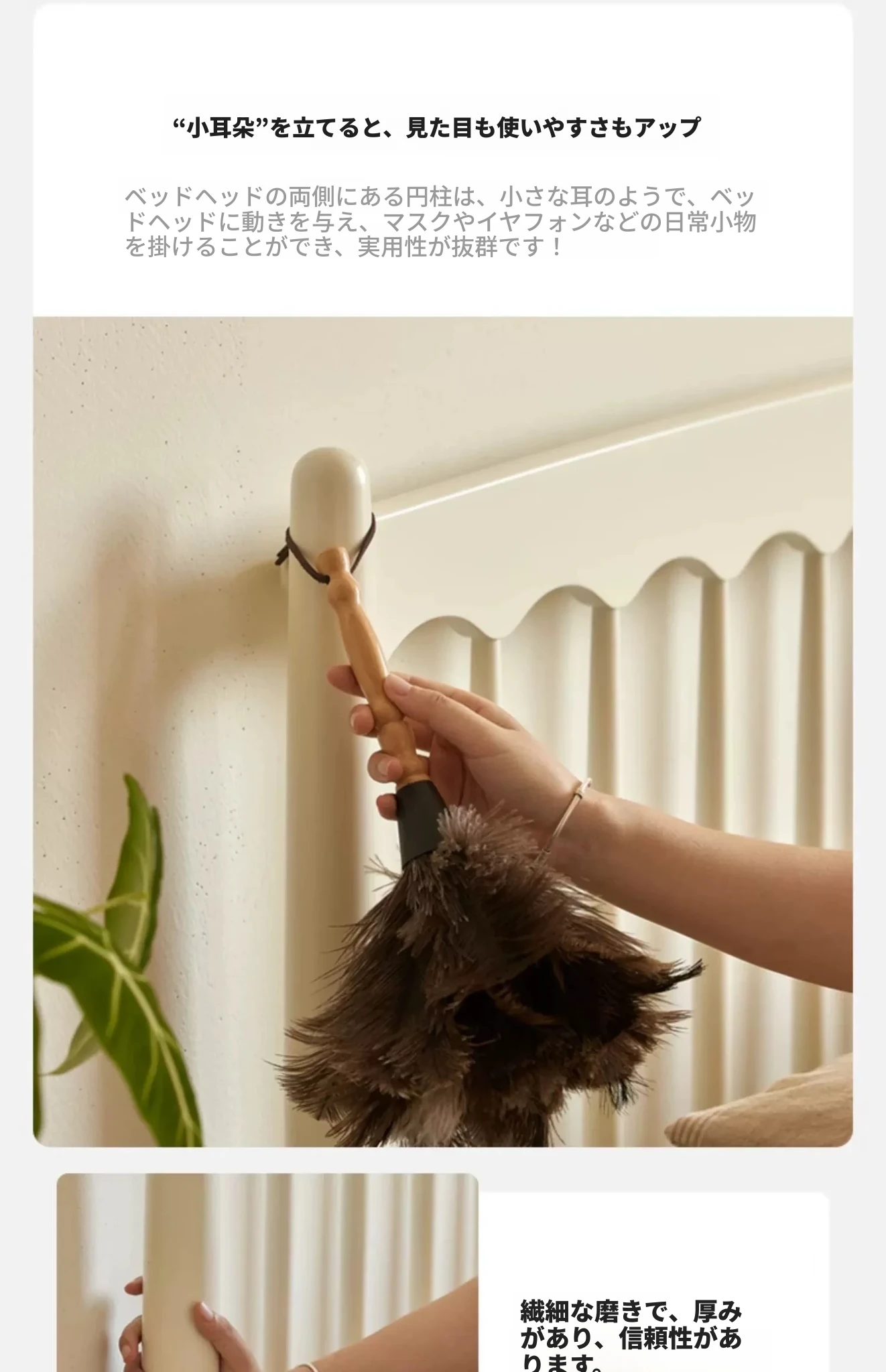 オーセンティックな無垢材のベッド - モダンでシンプルなクリーム風デザイン、ホワイトのハープ・ウィンザースタイル。小型住宅にもぴったりのダブルベッドで、快適な眠りを提供します。