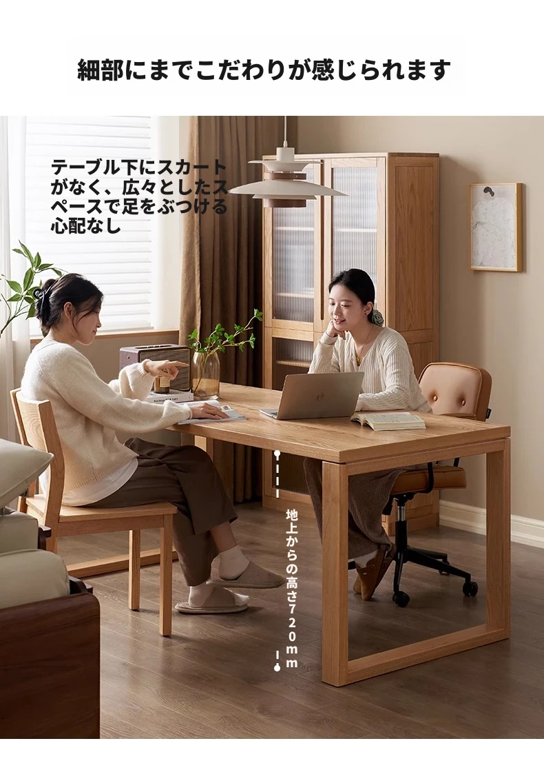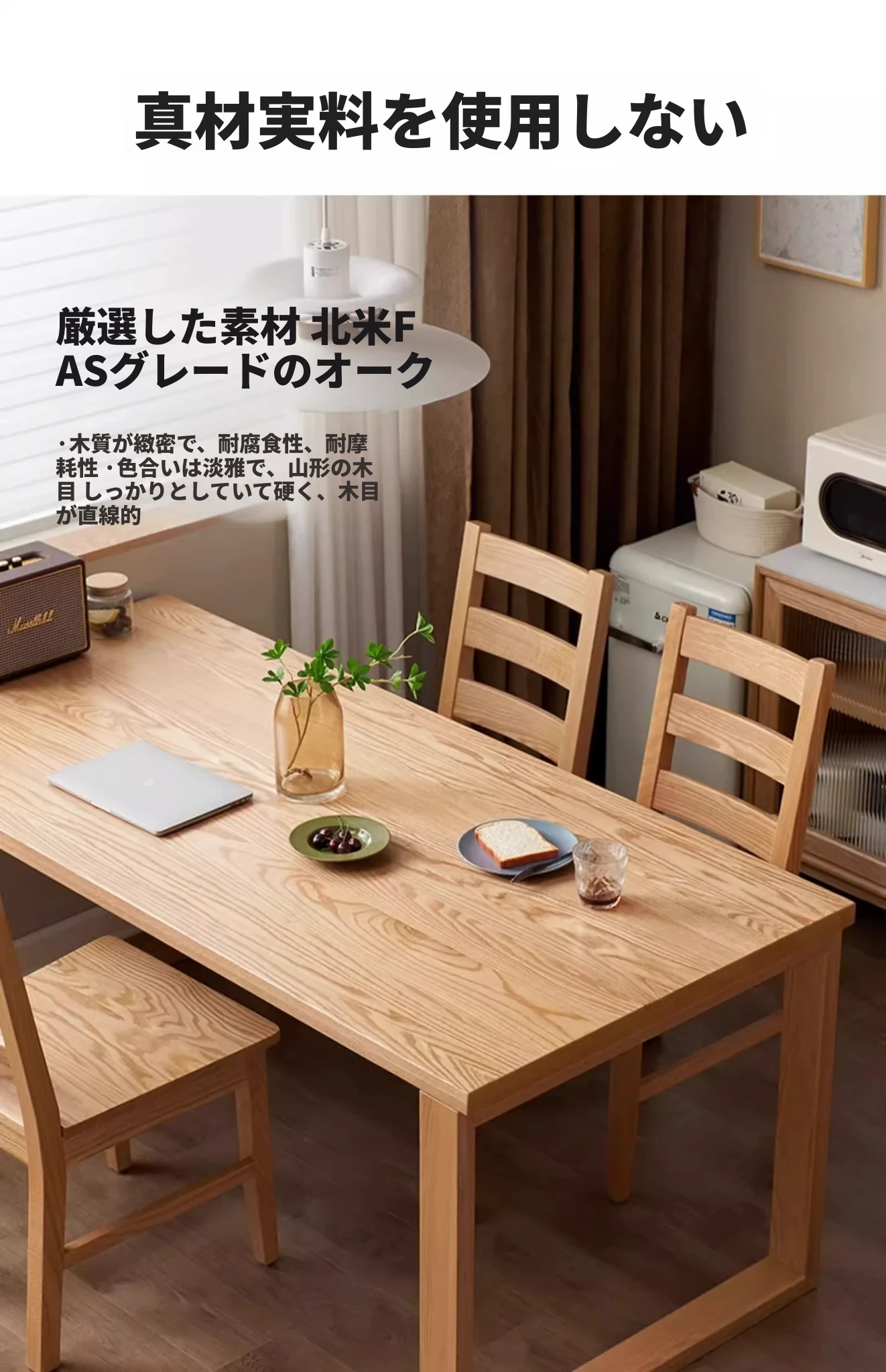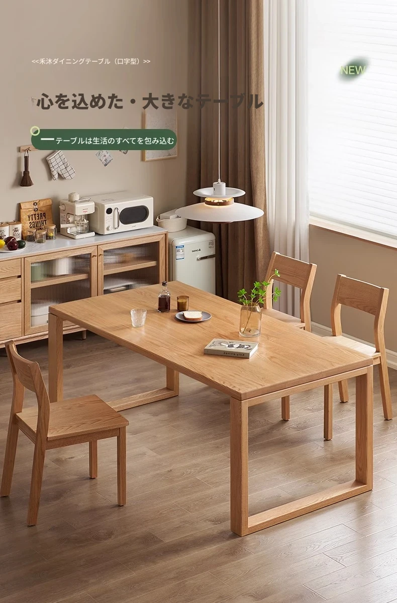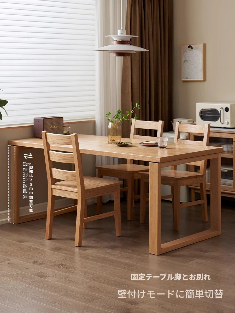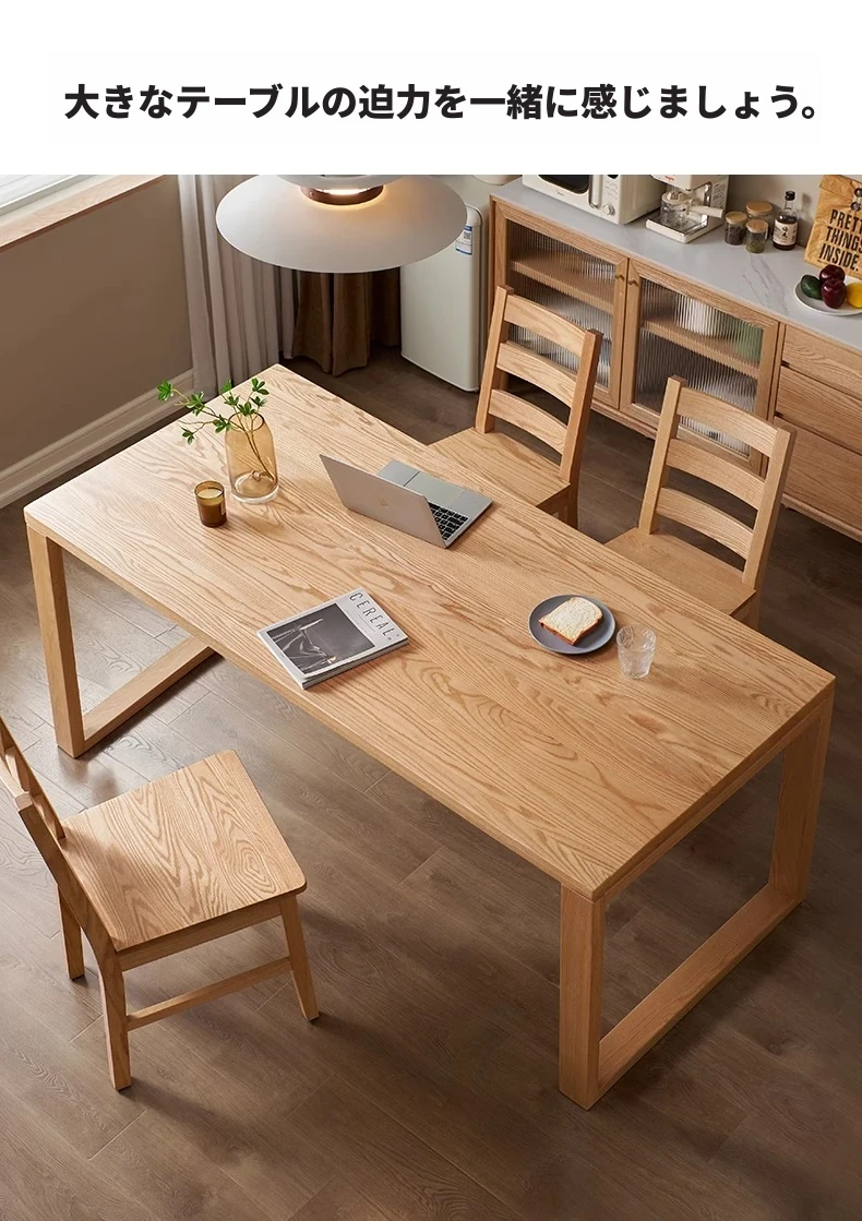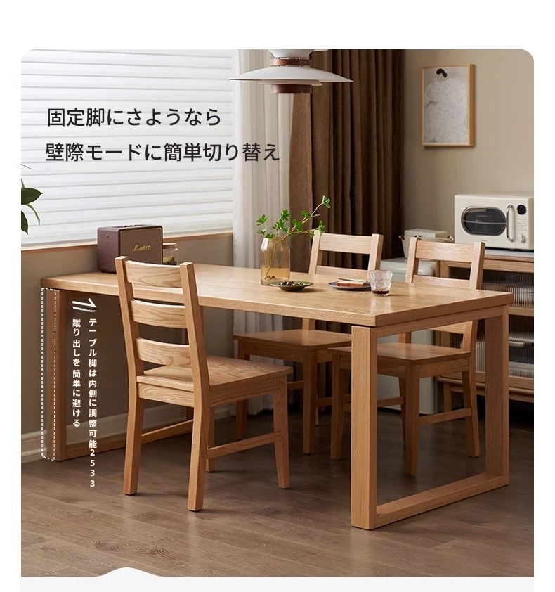 オーセンティックな無垢材製ダイニングテーブル - 壁にぴったりフィットする大型オーク製の長方形テーブル、食事やオフィスにも最適!高級感あふれるデザインで、心地よい食卓を演出します。