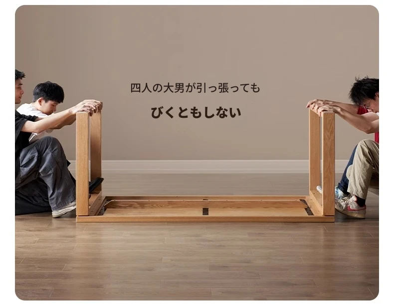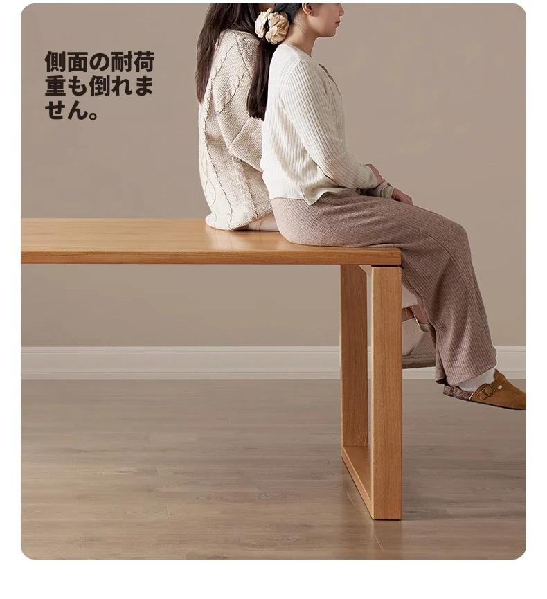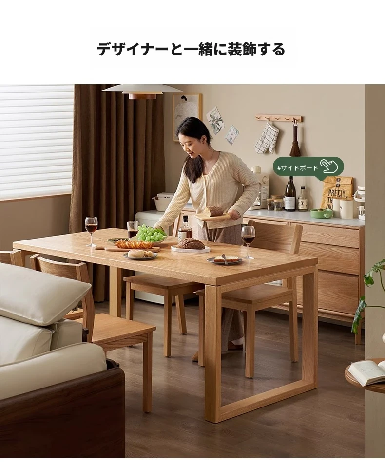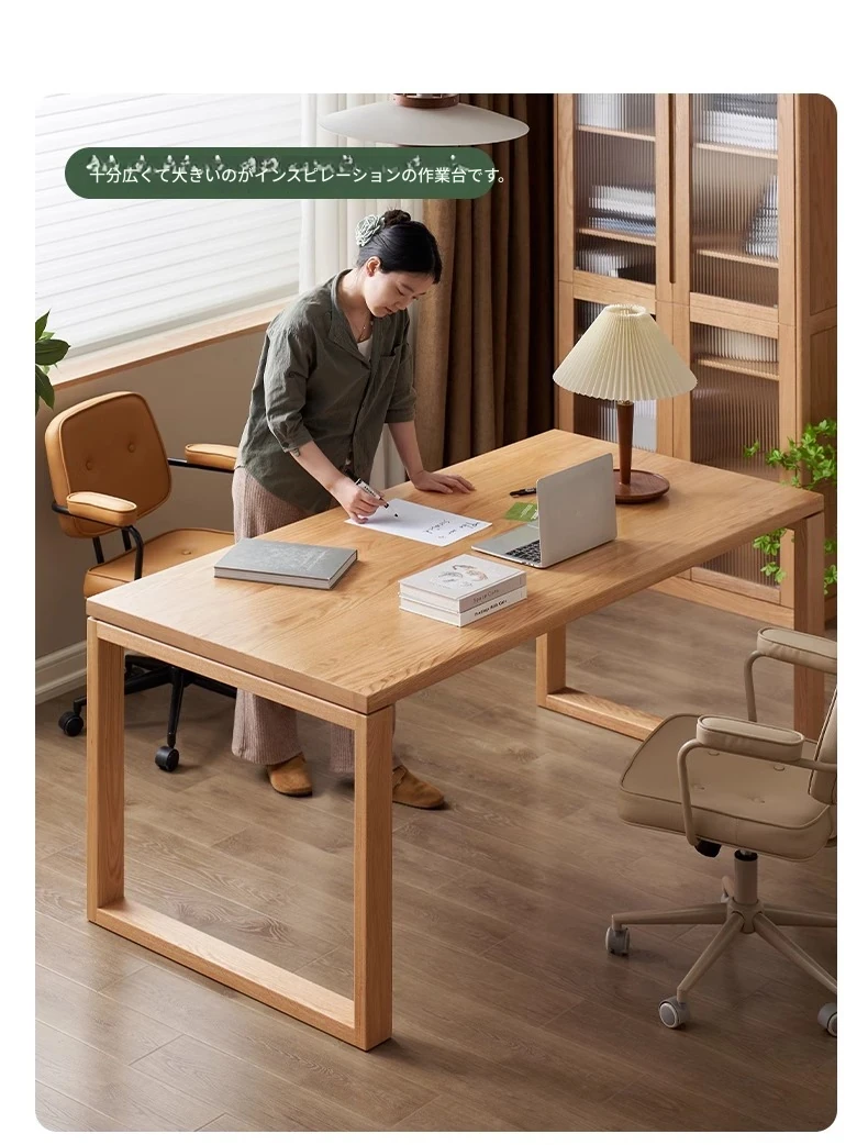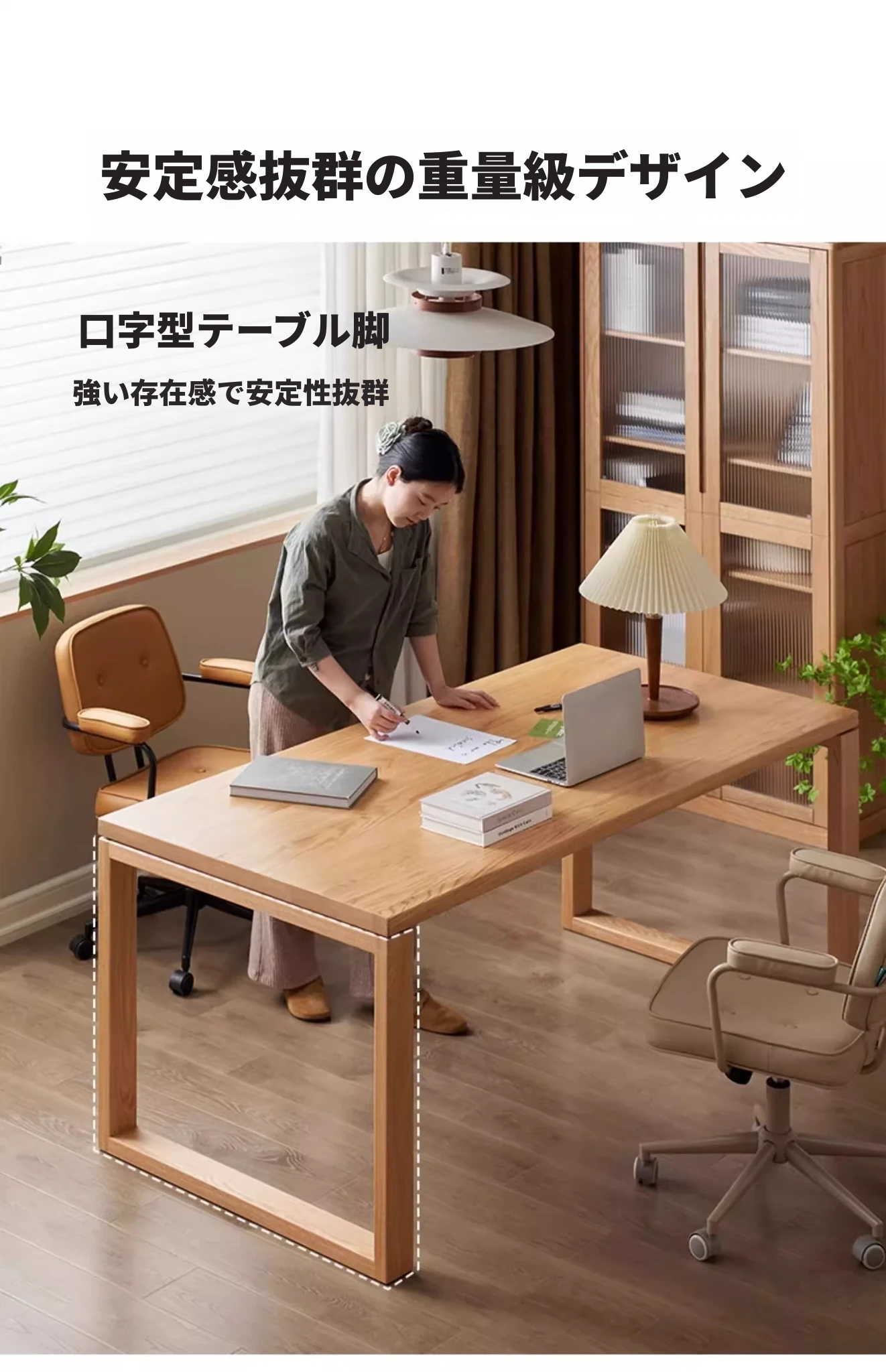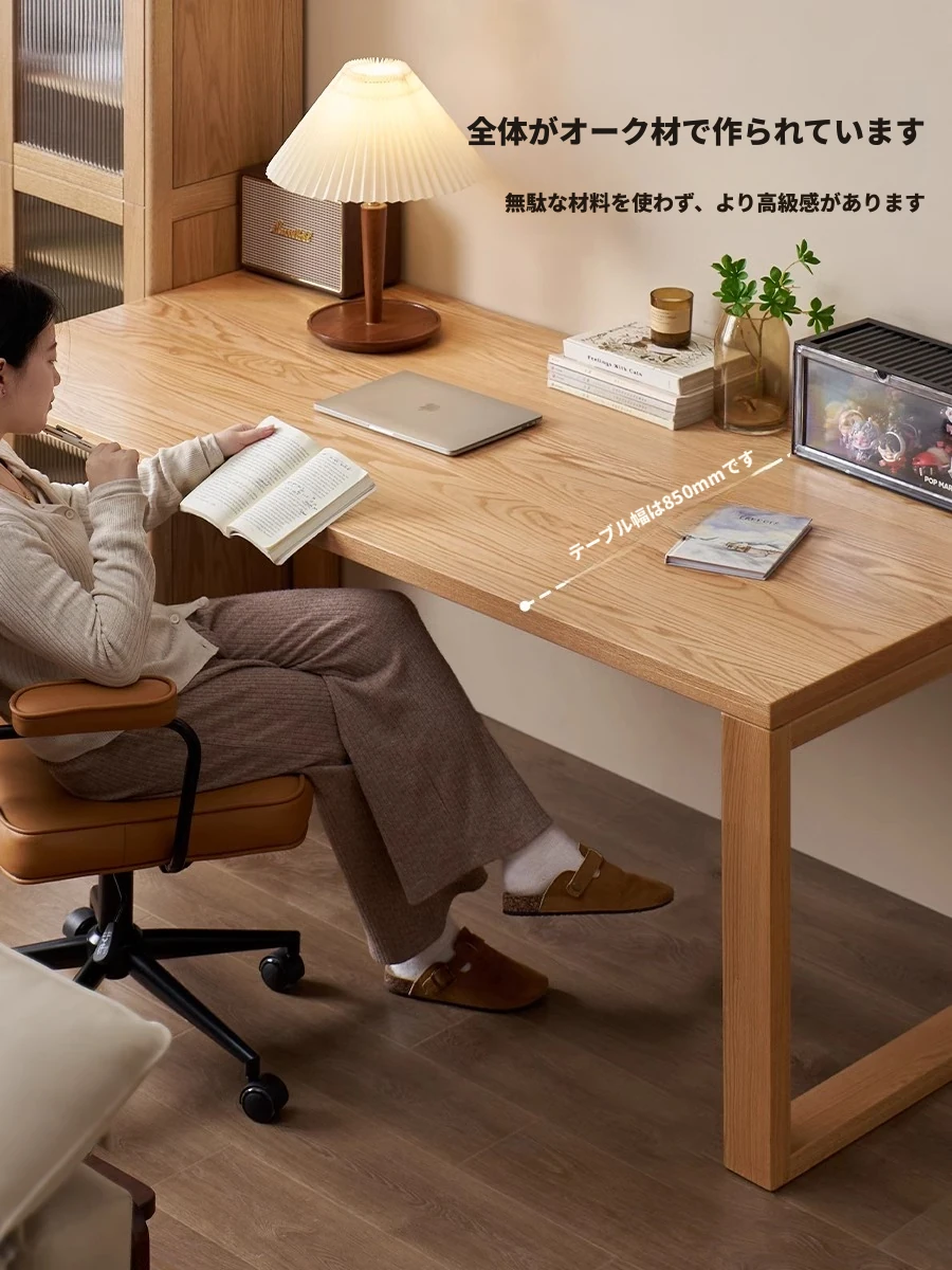 オーセンティックな無垢材製ダイニングテーブル - 壁にぴったりフィットする大型オーク製の長方形テーブル、食事やオフィスにも最適!高級感あふれるデザインで、心地よい食卓を演出します。