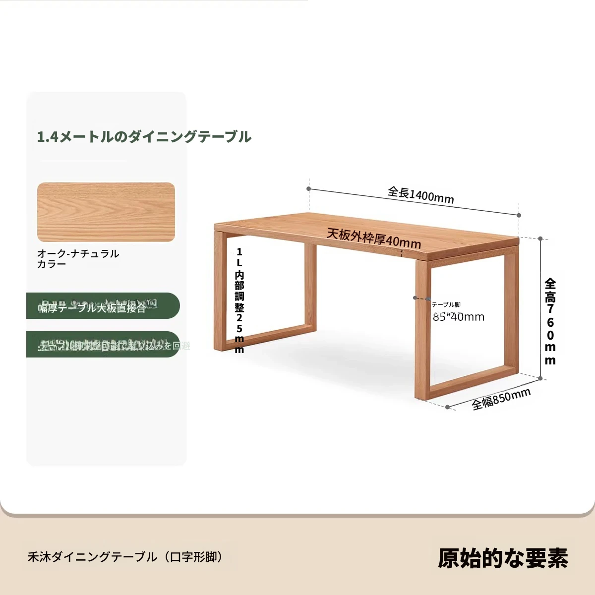 【オーク-ナチュラルカラー】1.4メートルダイニングテーブル(1400*850*760mm)