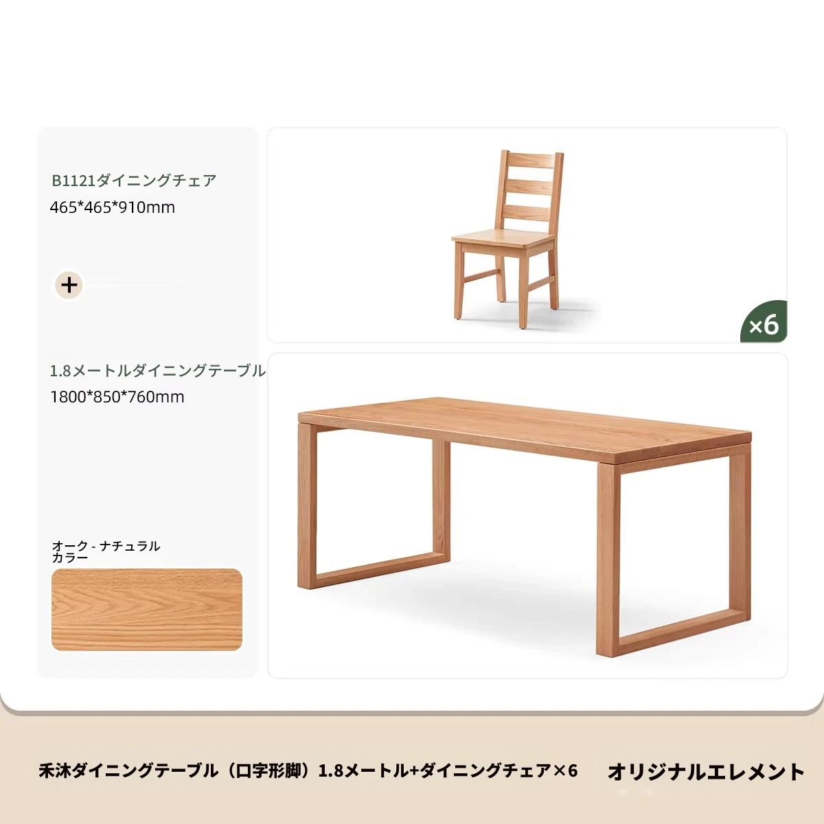 【オーク-ナチュラルカラー】1.8メートルテーブル6椅子(B1121)