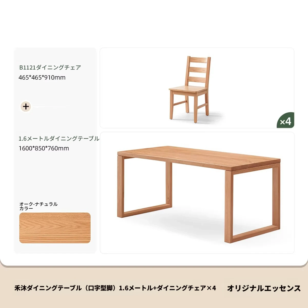 【オーク-ナチュラルカラー】1.6メートルテーブル4椅子(B1121)
