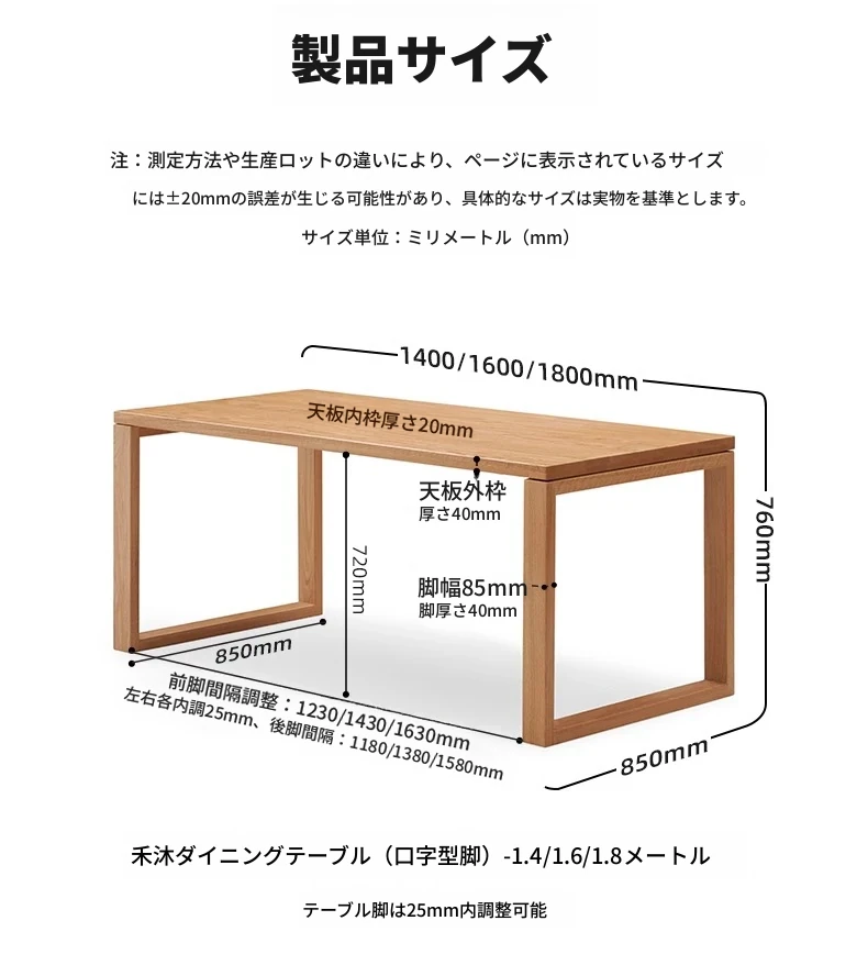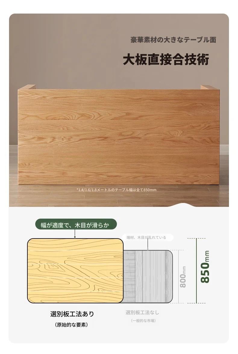 【オーク-ナチュラルカラー】1.8メートルダイニングテーブル(1800*850*760mm)