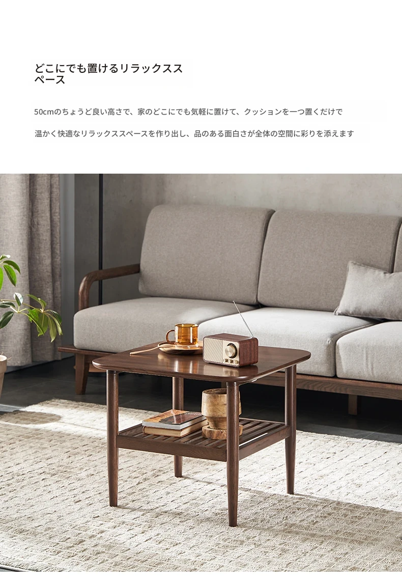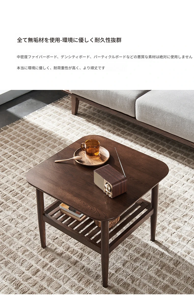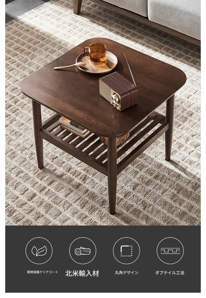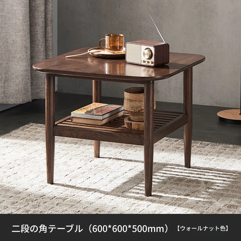 オリジナルエレメント全木製ダブルレイヤーサイドテーブル 小型リビング用モダンシンプルコーヒーテーブル ソファコーナーテーブル 家庭用角テーブル 洗練されたデザインでおしゃれな空間を演出!