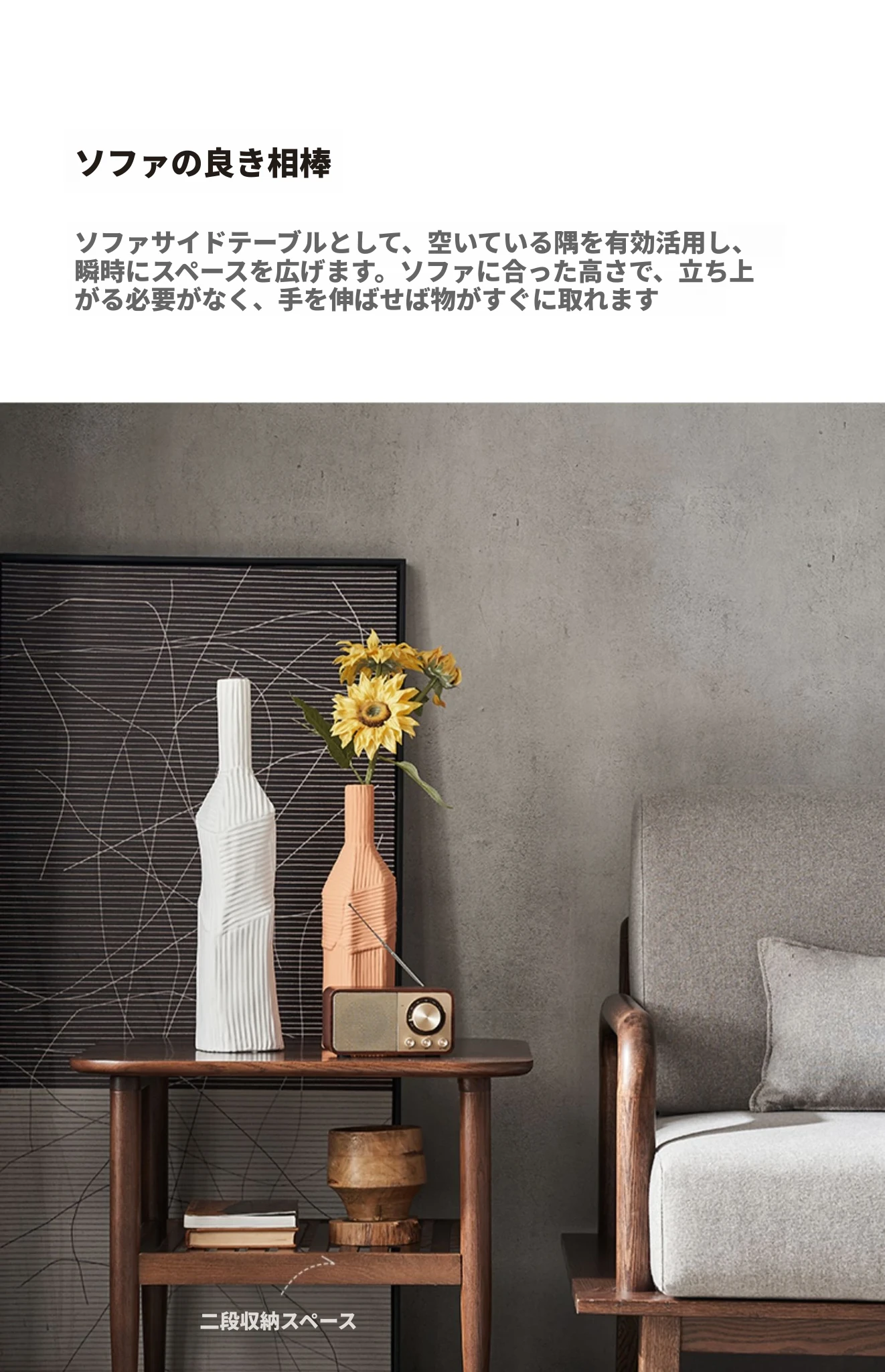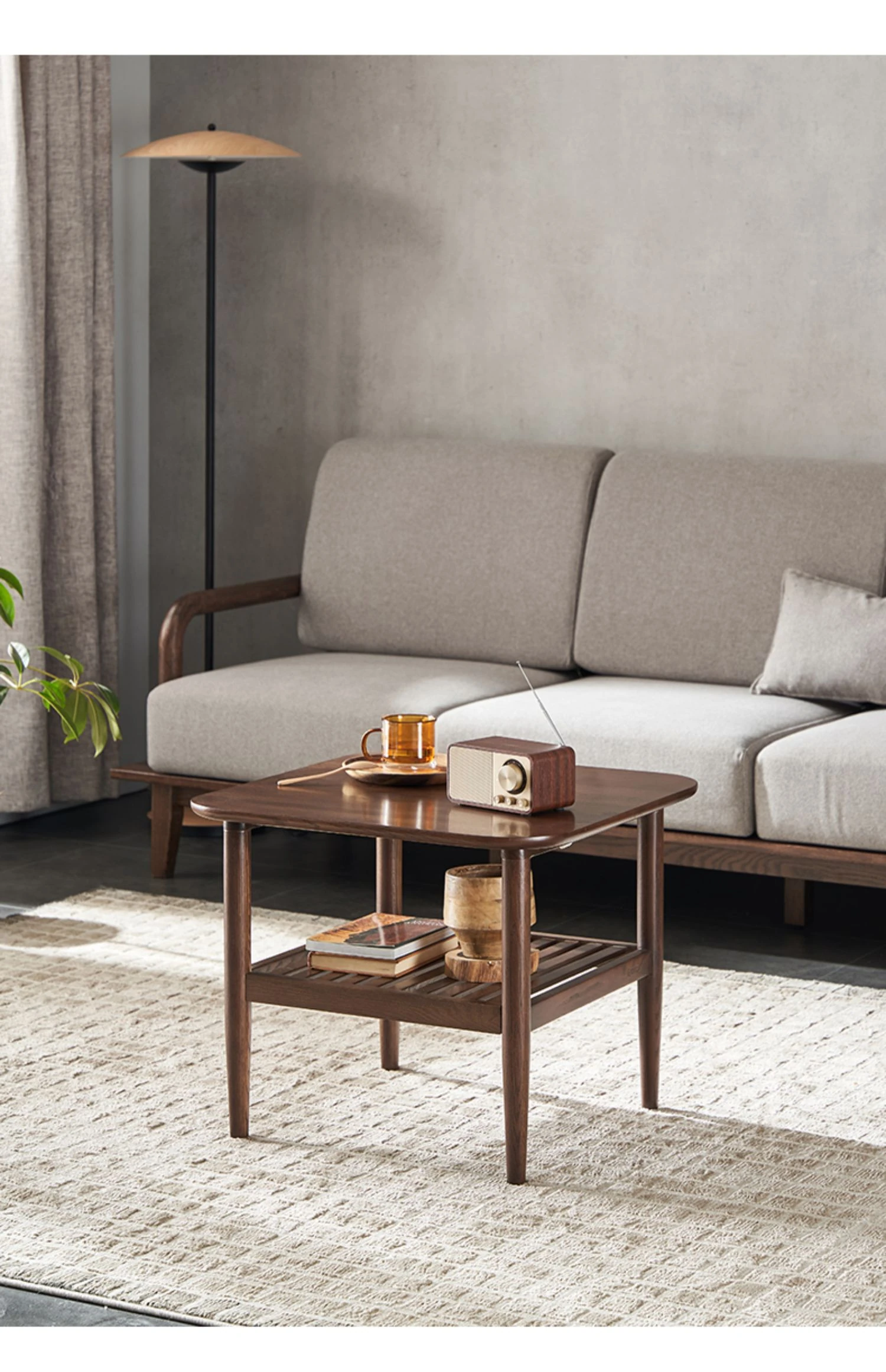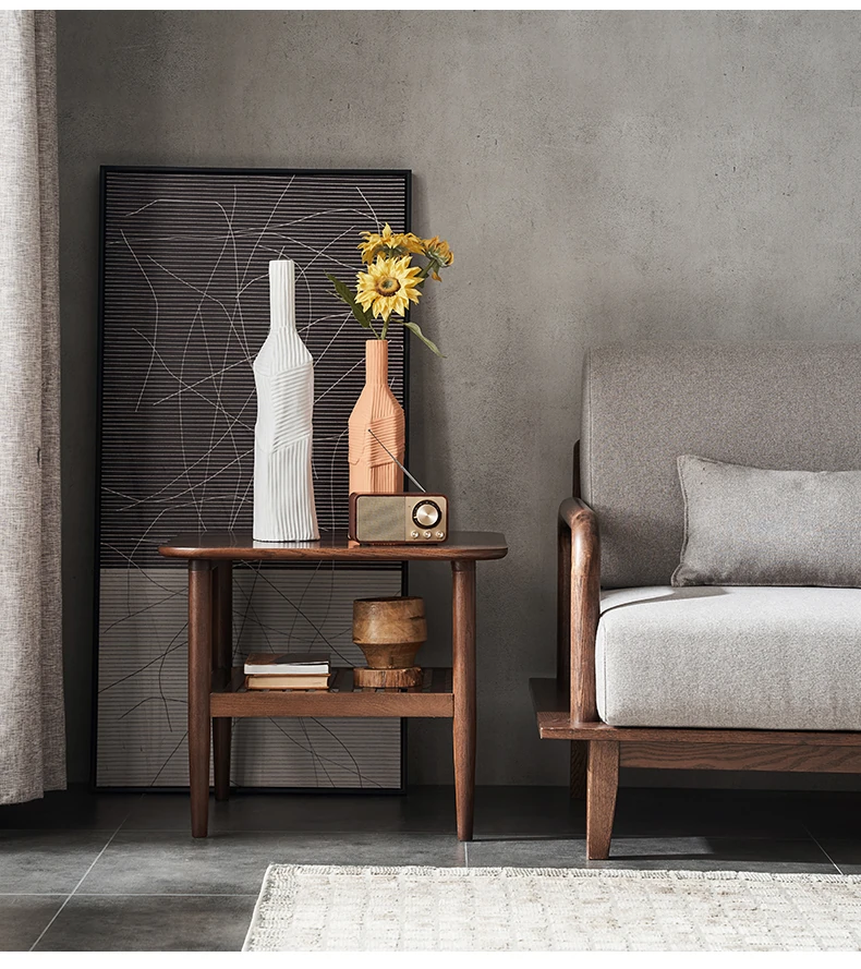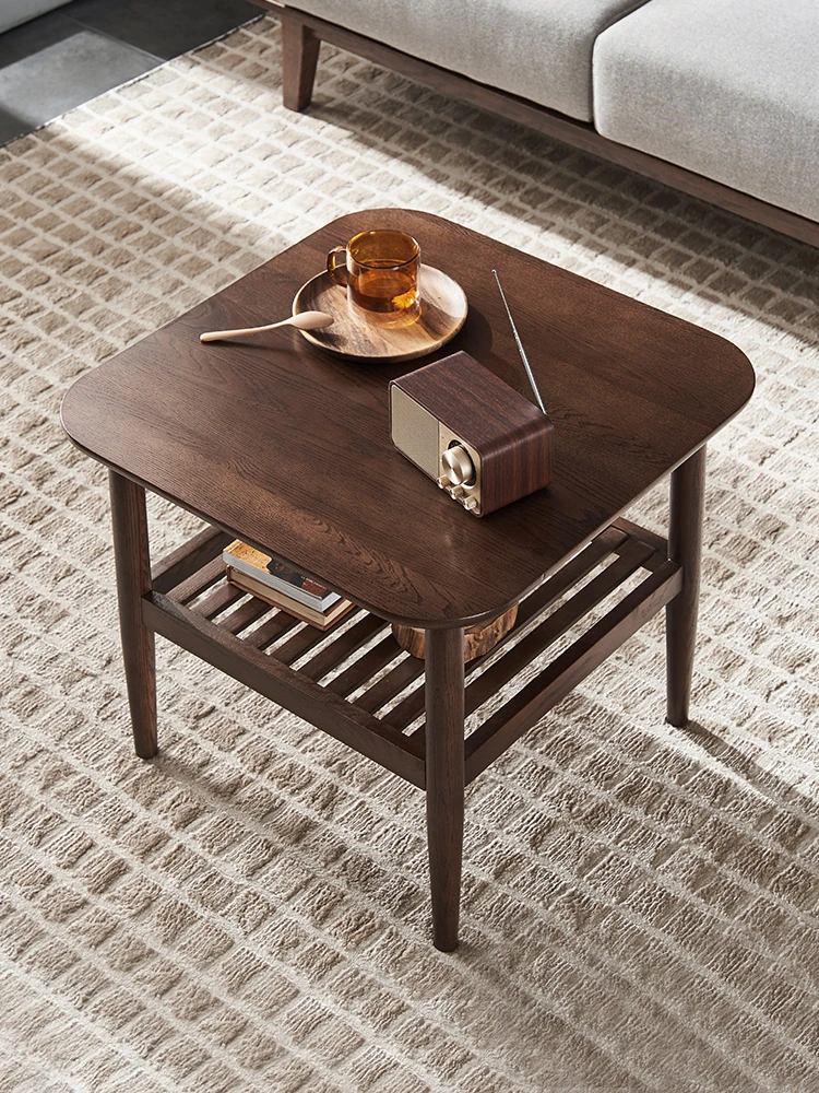 オリジナルエレメント全木製ダブルレイヤーサイドテーブル 小型リビング用モダンシンプルコーヒーテーブル ソファコーナーテーブル 家庭用角テーブル 洗練されたデザインでおしゃれな空間を演出!