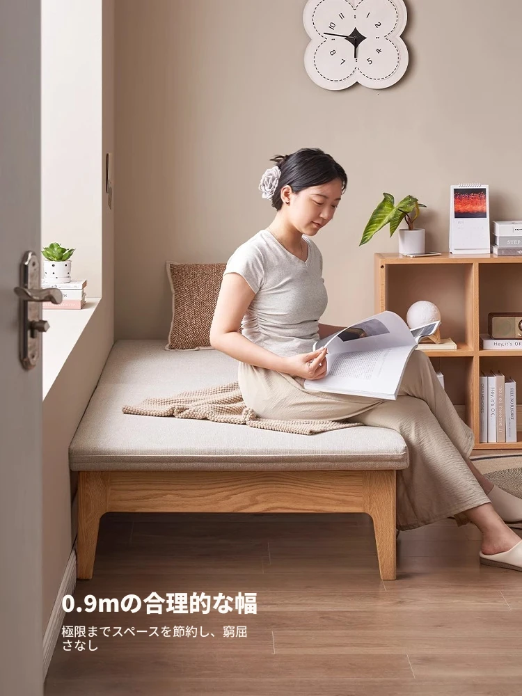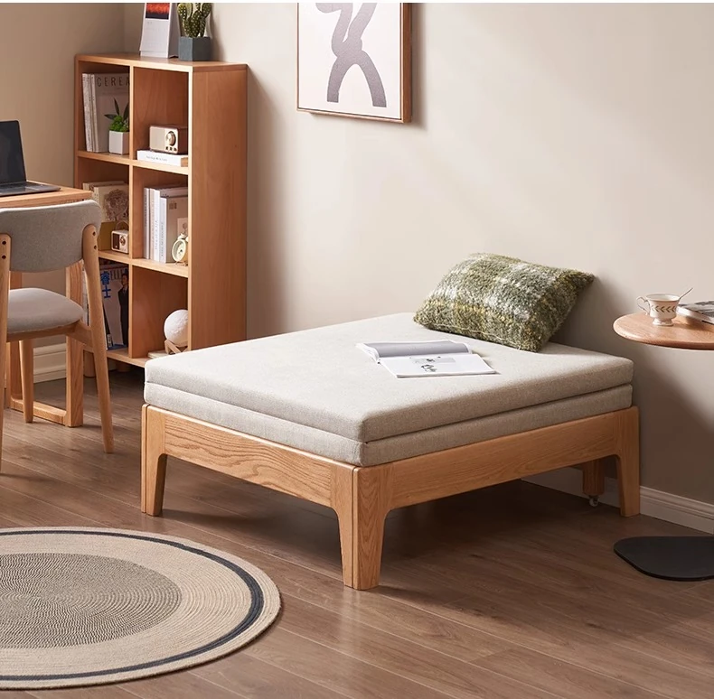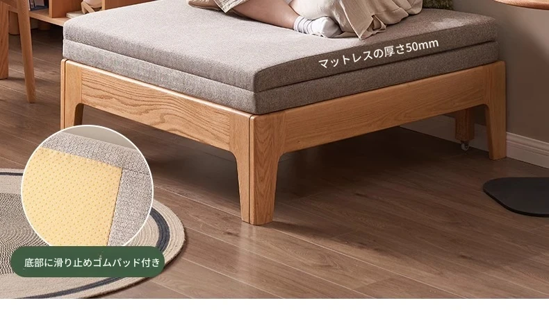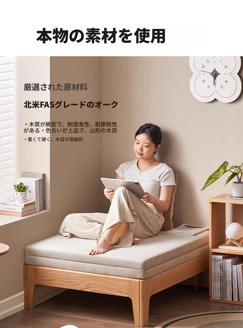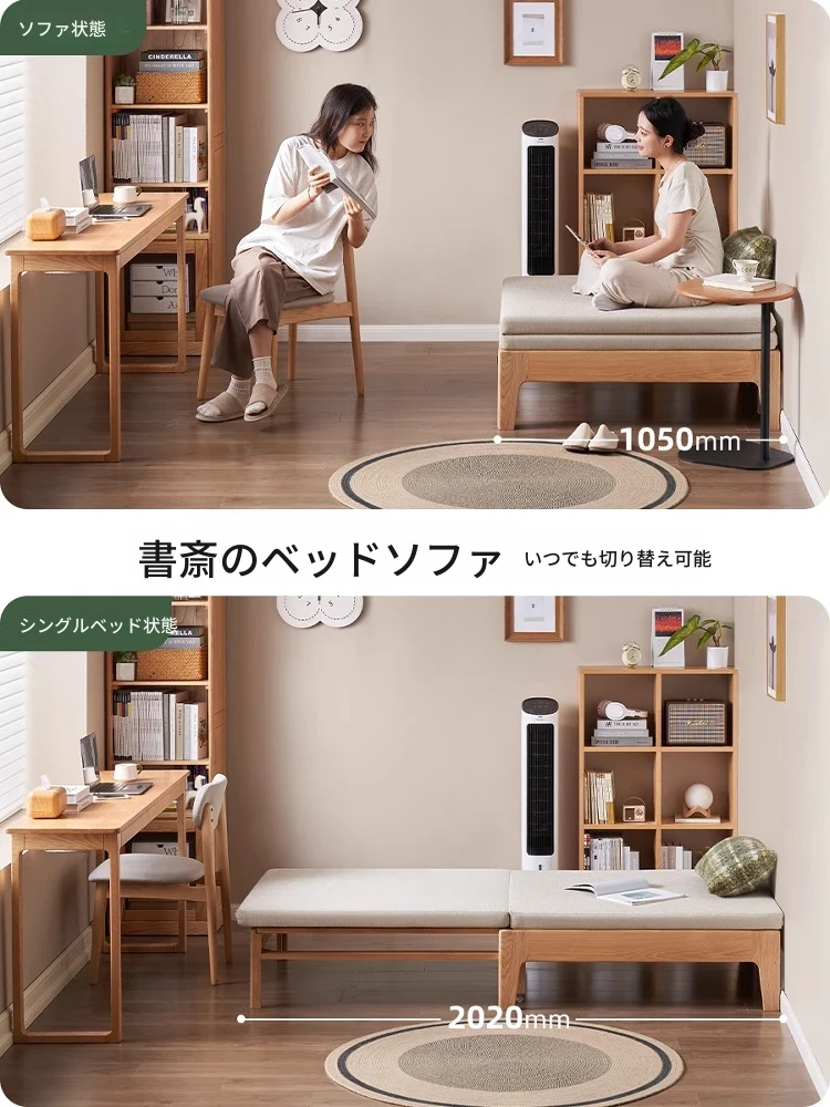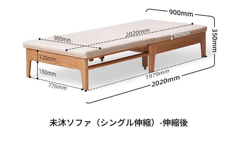 オリジナル素材の全木製折りたたみソファベッド|伸縮可能なオーク材の一人用ベッド|小型住宅に最適なソファ一体型デザイン!快適な睡眠とリラックス空間を実現!