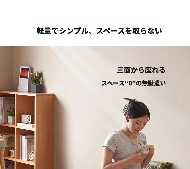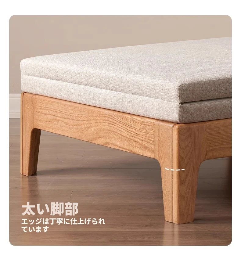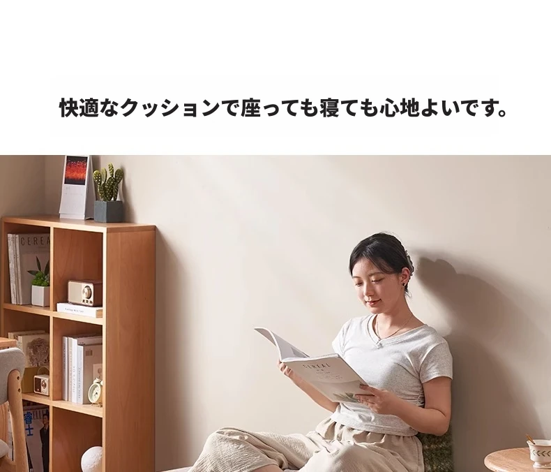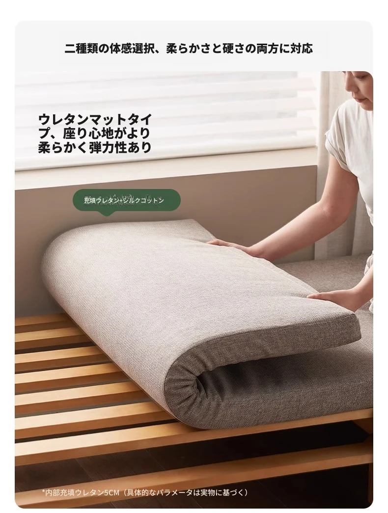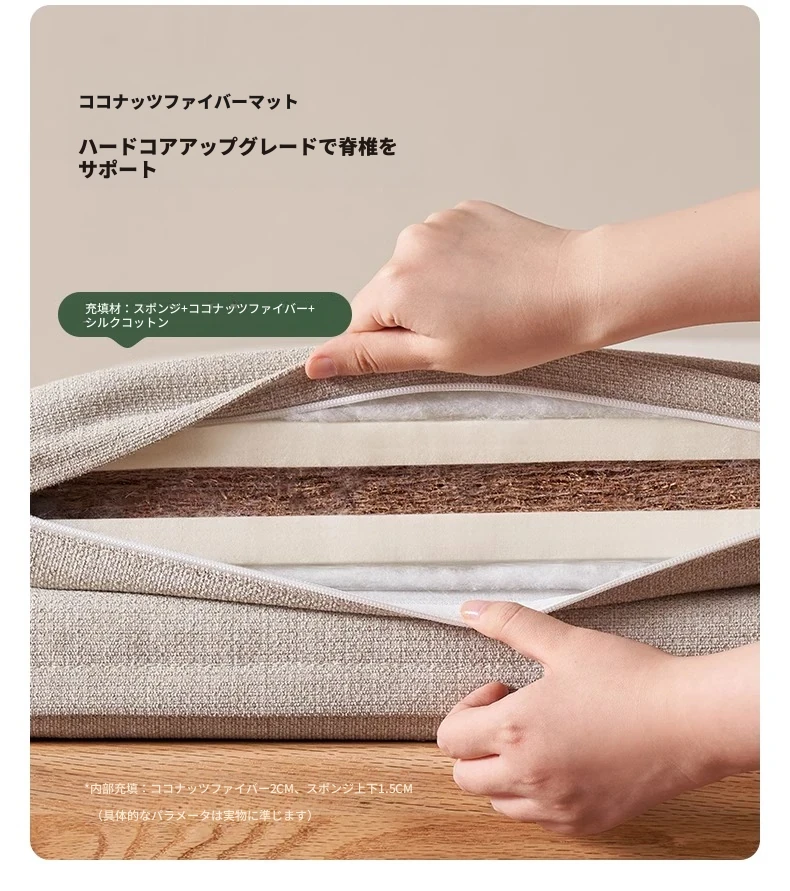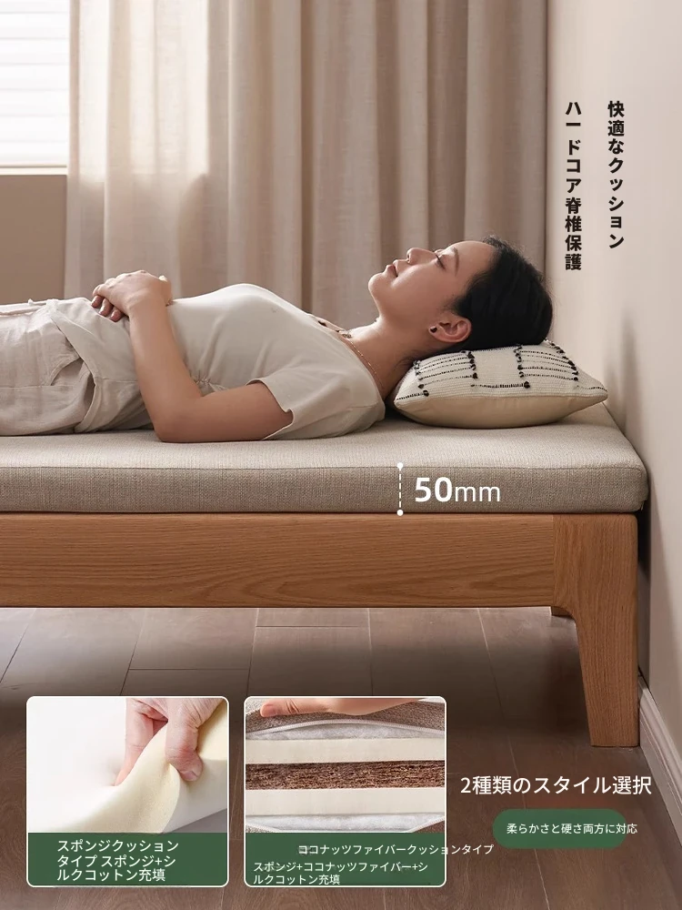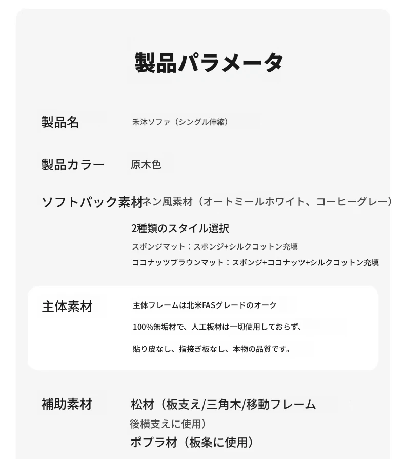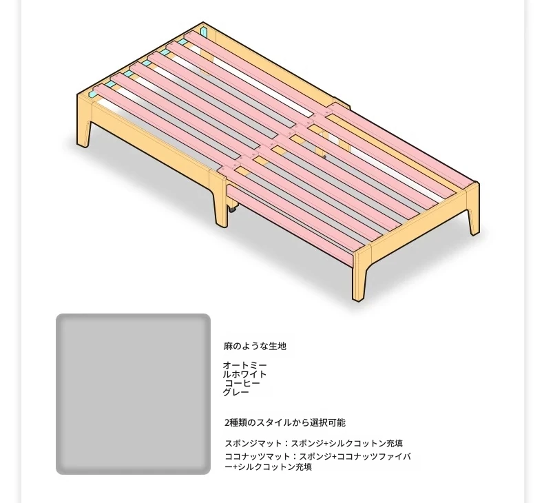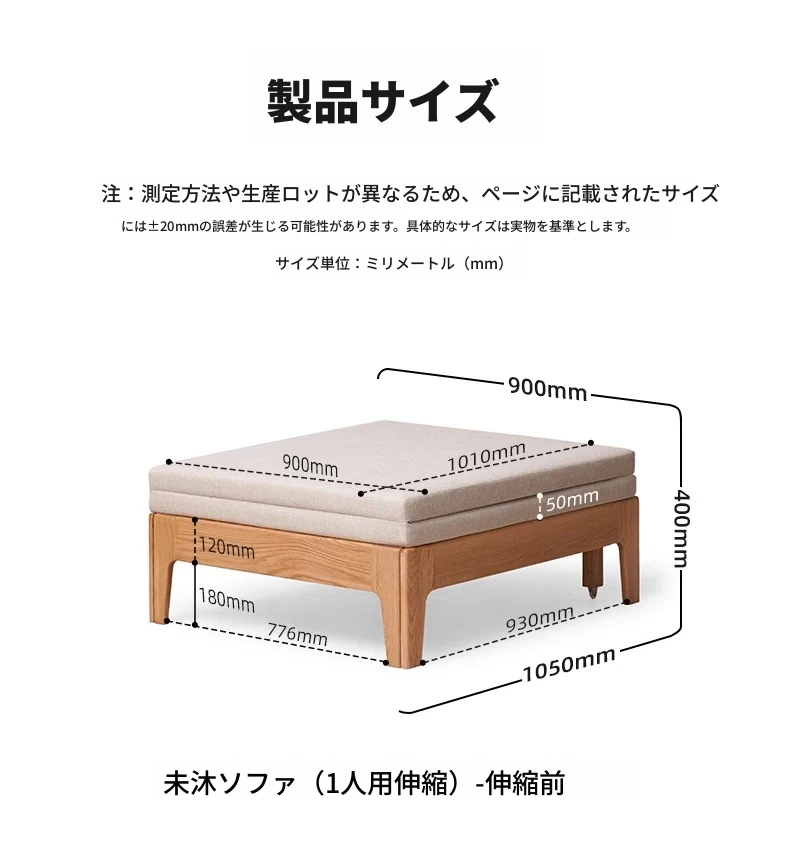 【ナチュラルウッド-オートミールホワイト】シングル伸縮ソファ(ココナッツファイバークッション付き)900*1050*300mm
