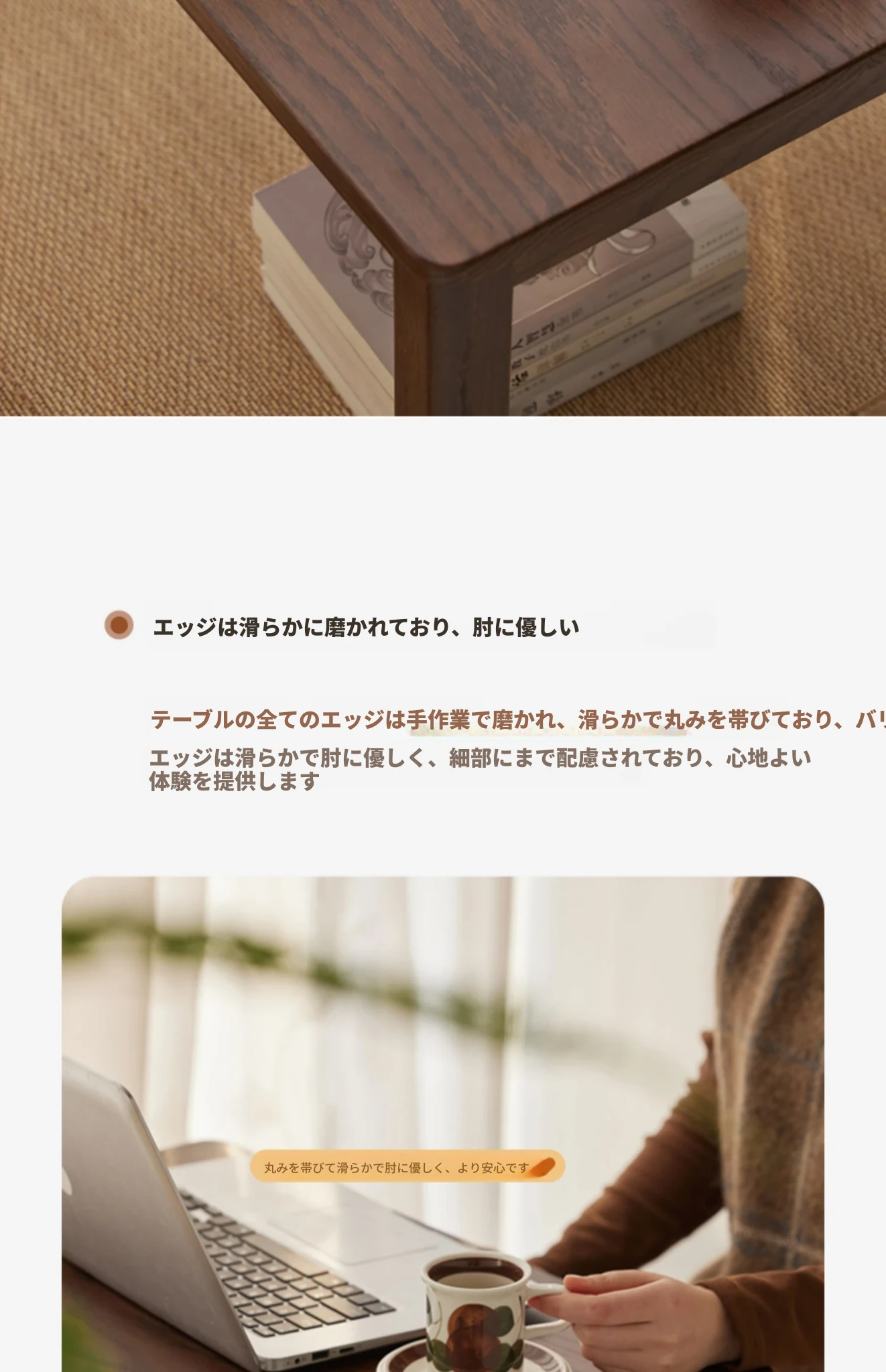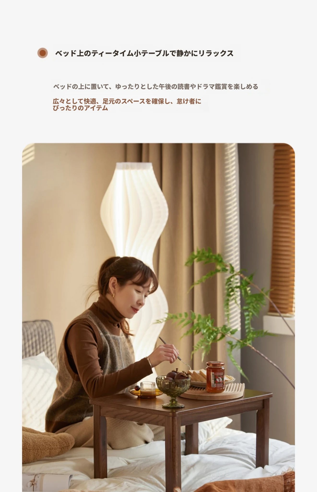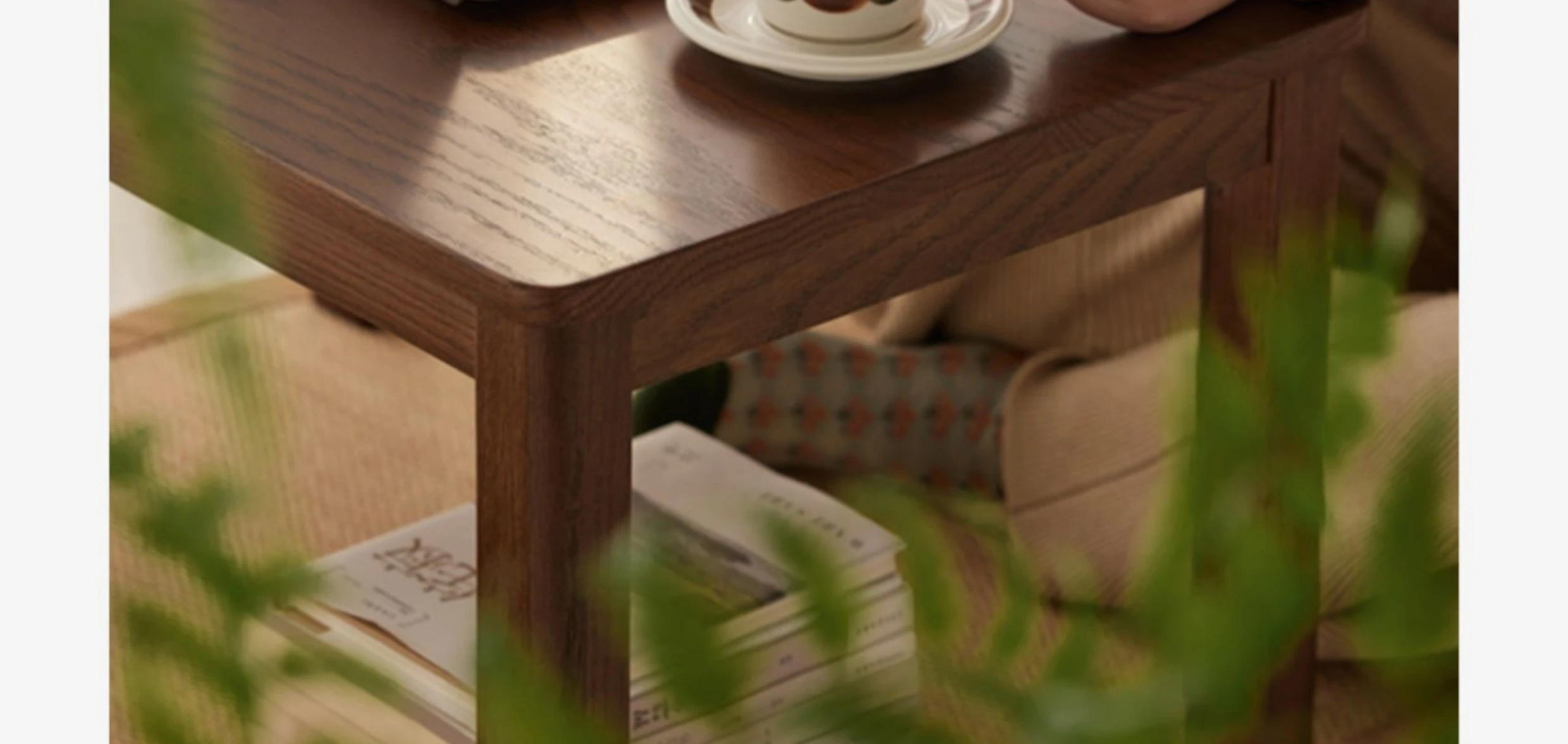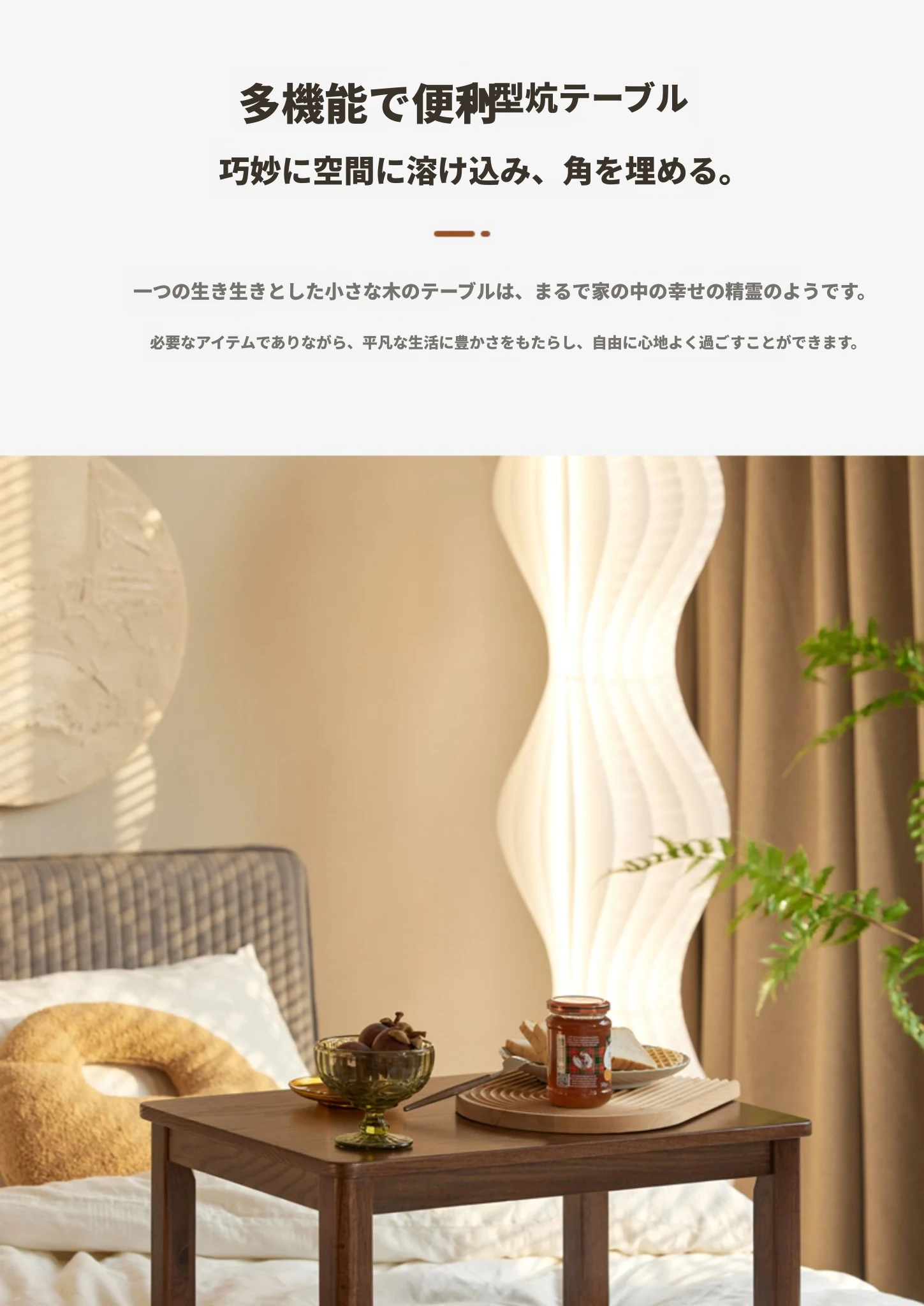 原木の魅力を活かした全実木のロースタイルテーブル!モダンでシンプルなデザイン、狭い部屋にもぴったり。榻榻米やフロアに最適なオーク材の低い茶卓、窓際に置いても美しい!