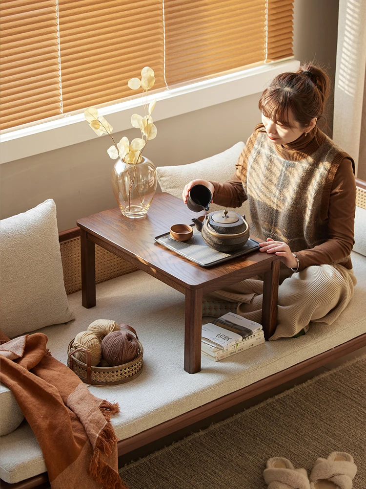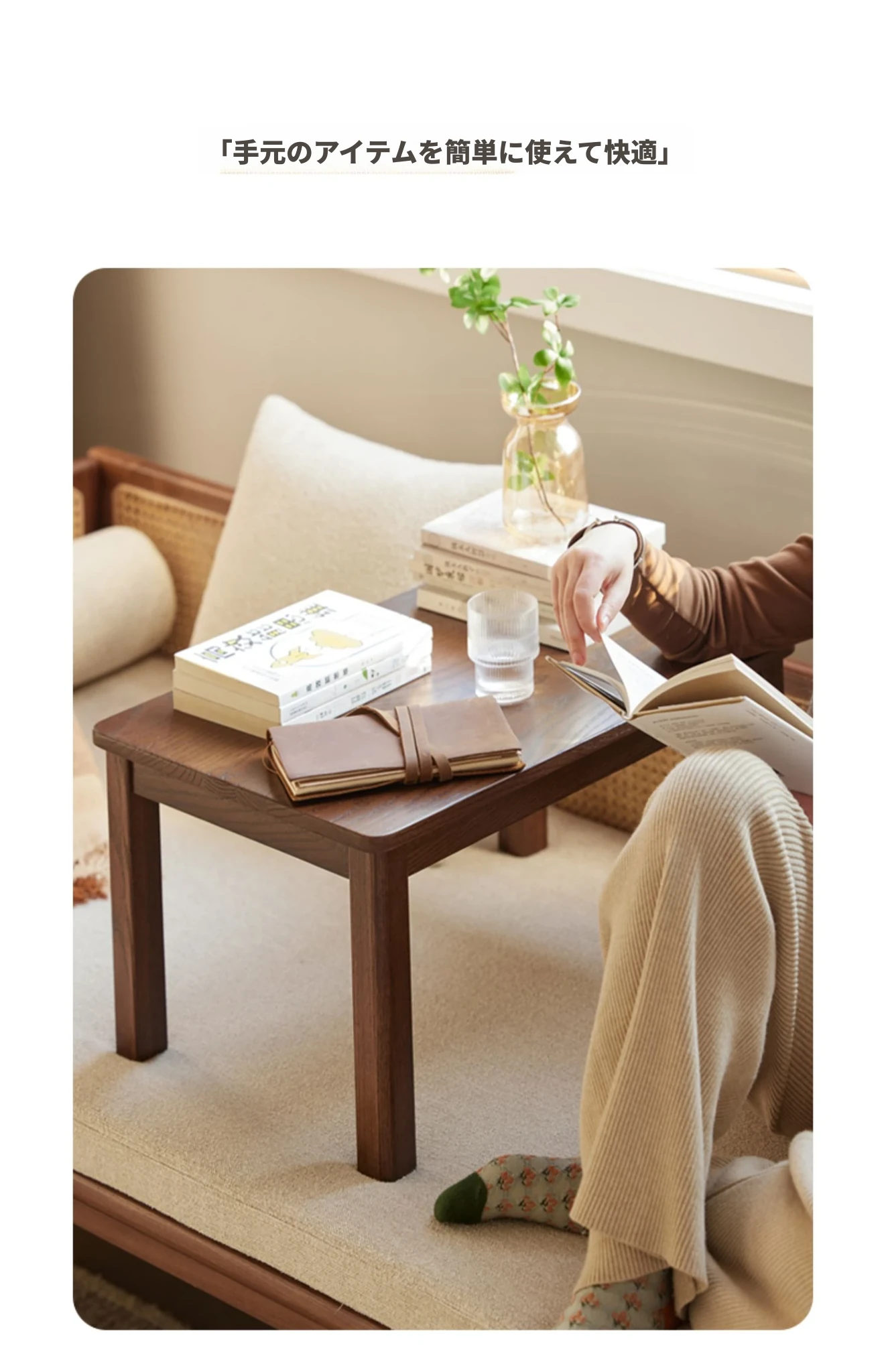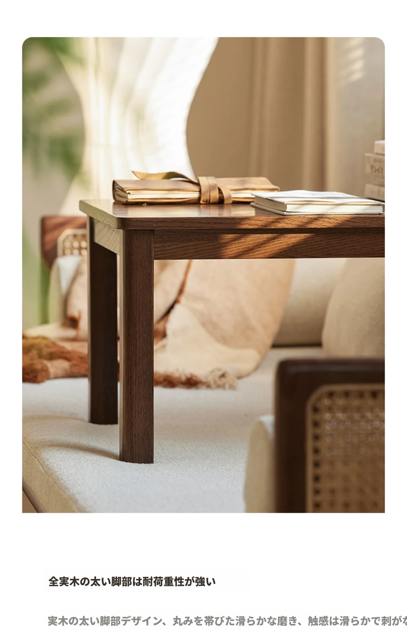 原始の自然を感じる全無垢材のローテーブル - シンプルで小型、和室や窓辺にぴったりのリラックス空間を演出します。おしゃれで機能的なこのテーブルで、心地よいひとときをお楽しみください。