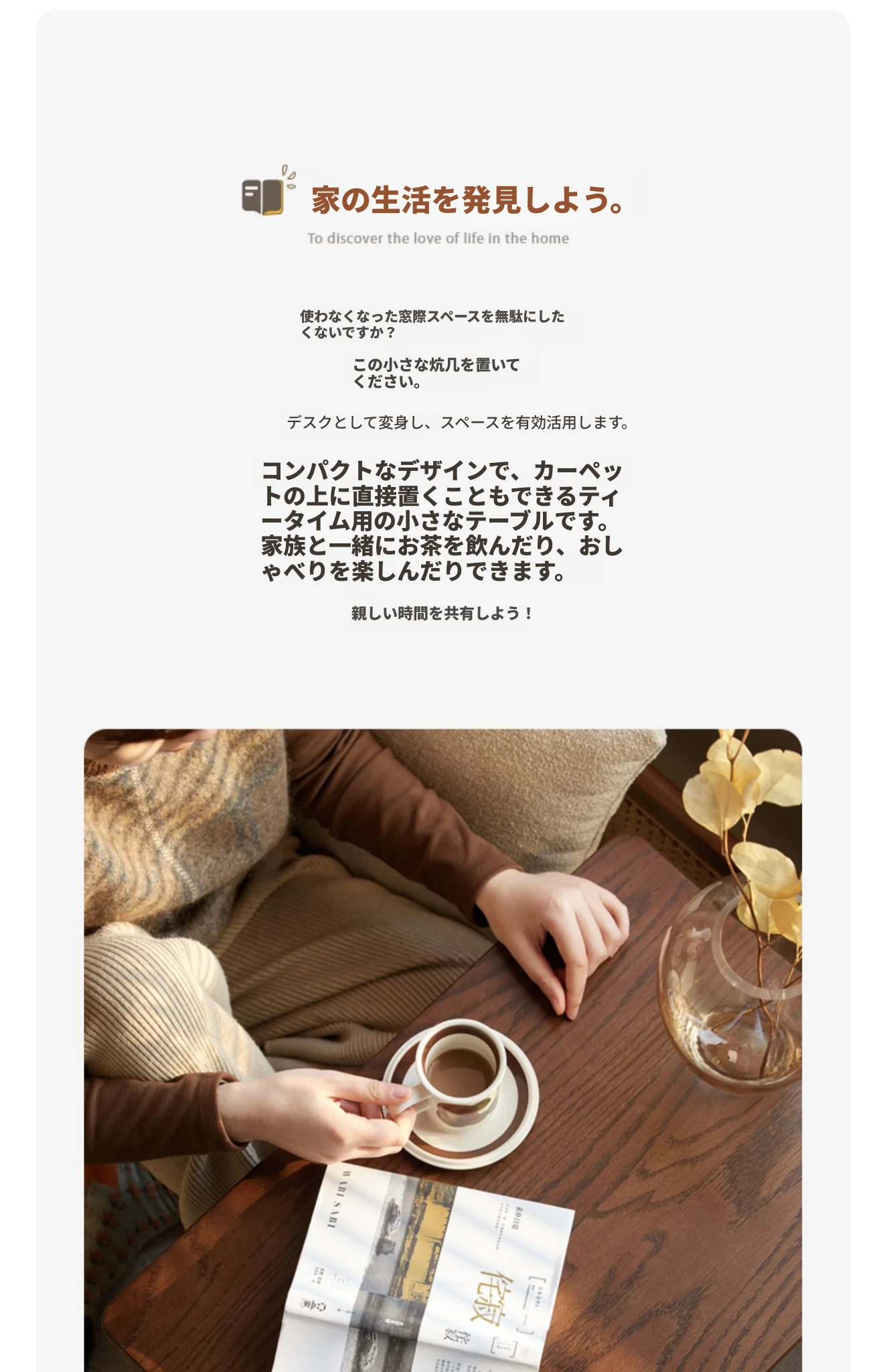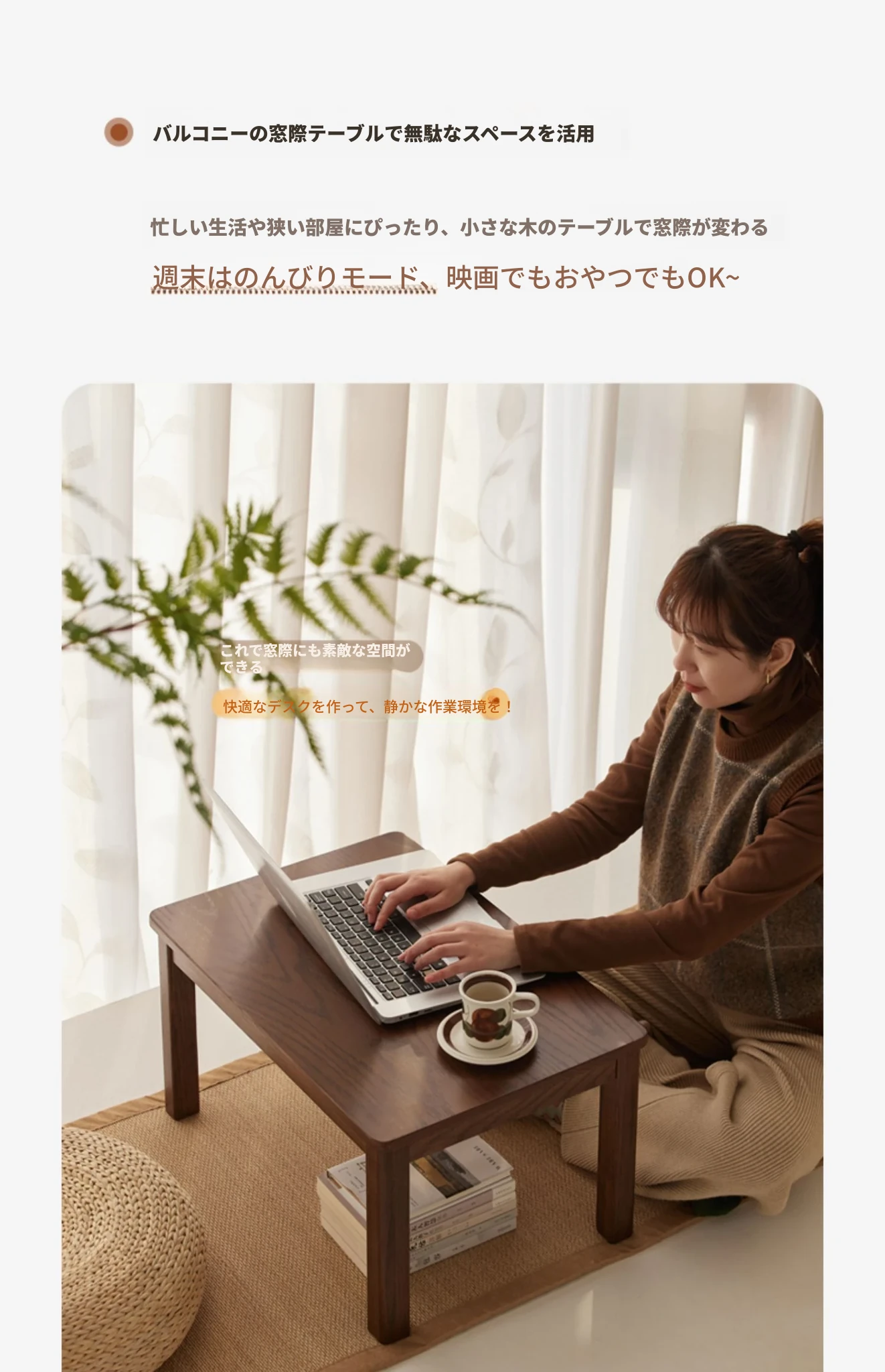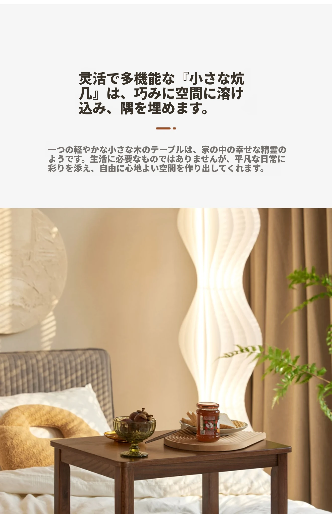 原始の自然を感じる全無垢材のローテーブル - シンプルで小型、和室や窓辺にぴったりのリラックス空間を演出します。おしゃれで機能的なこのテーブルで、心地よいひとときをお楽しみください。