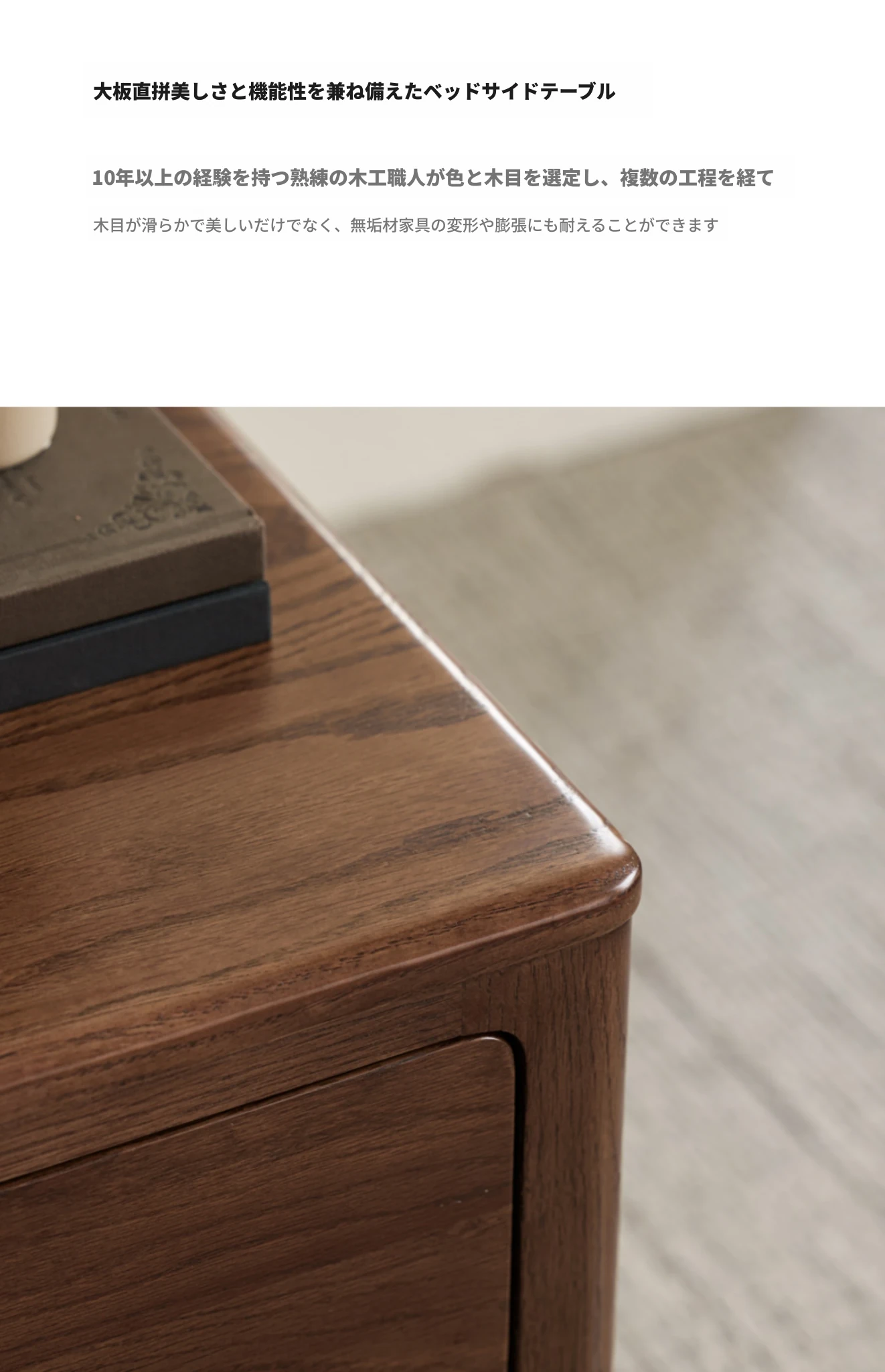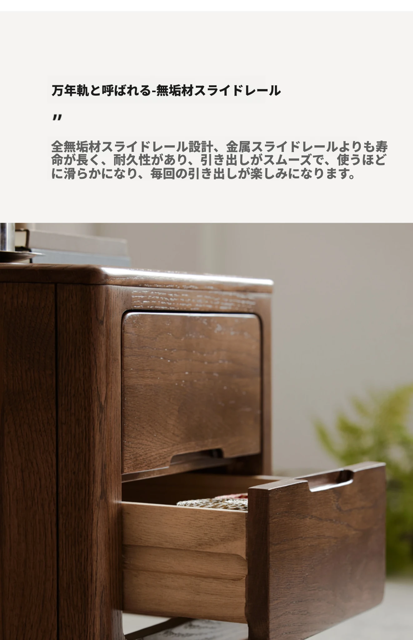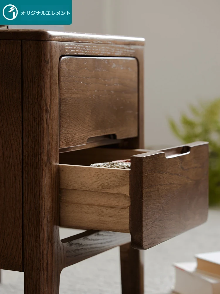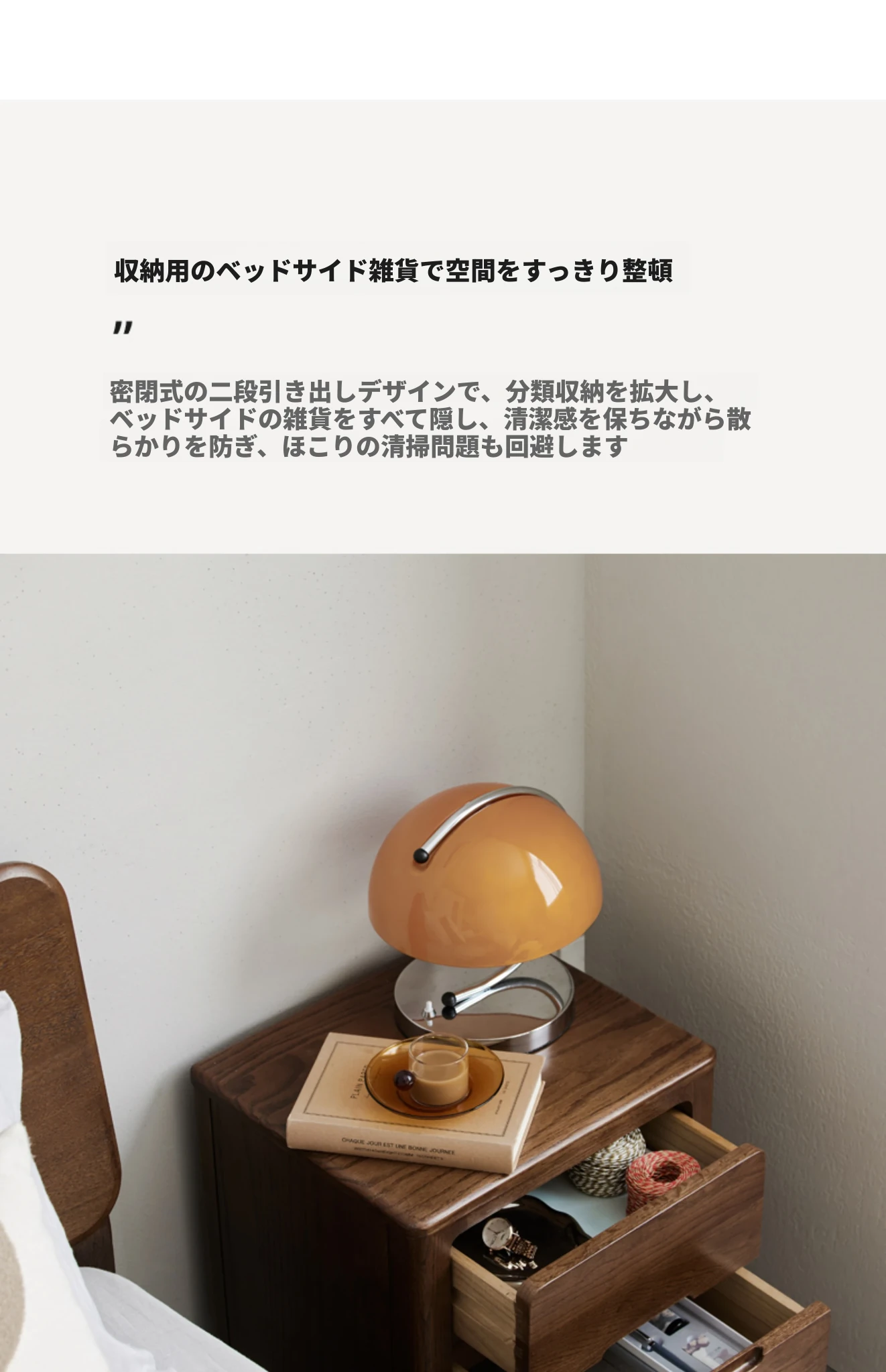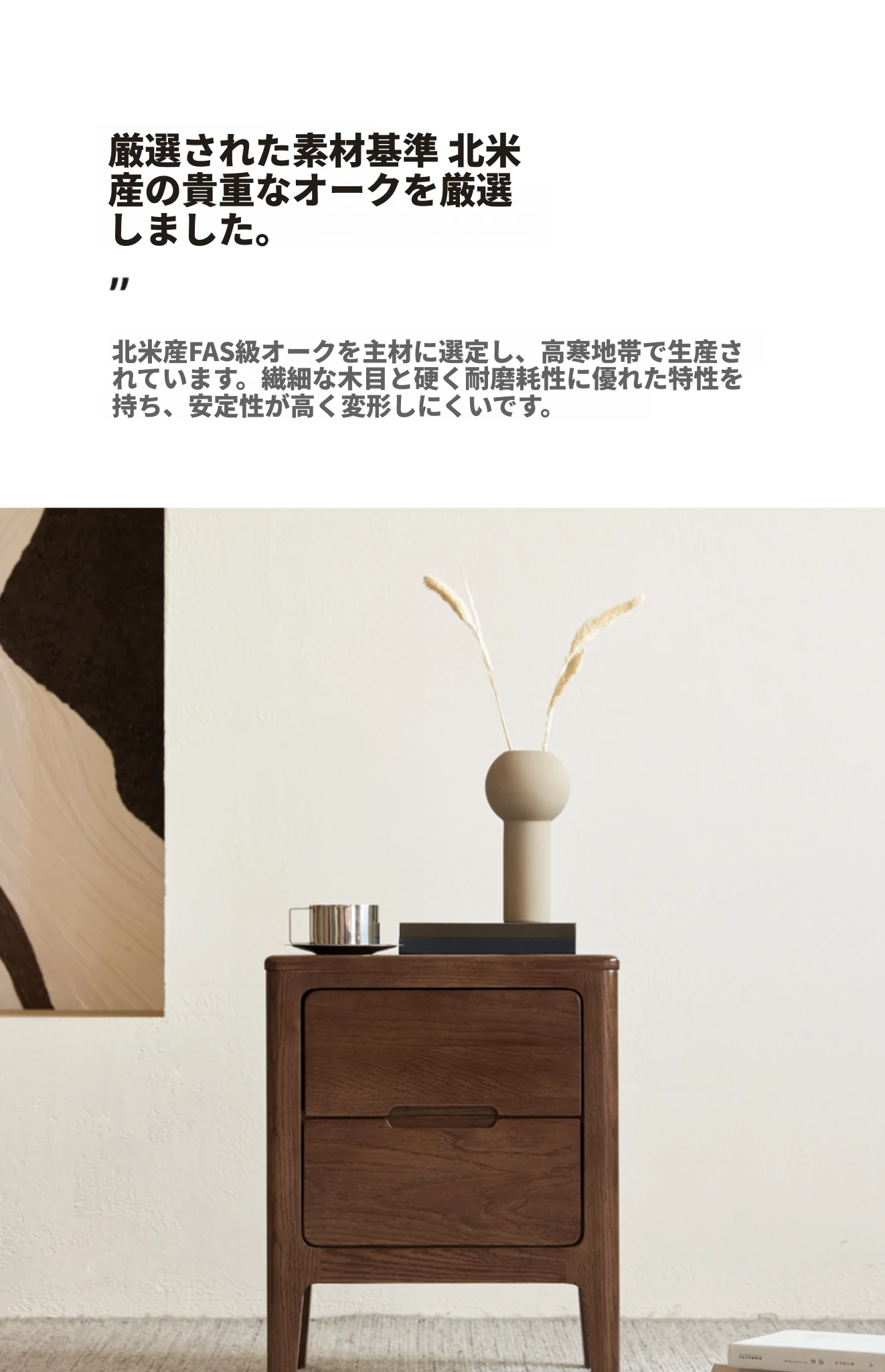 オーガニック全木製ナイトテーブル 北欧スタイル 寝室用サイドキャビネット 小型収納 橡木製 ダブル引き出し付き収納キャビネットでスッキリ整理!
