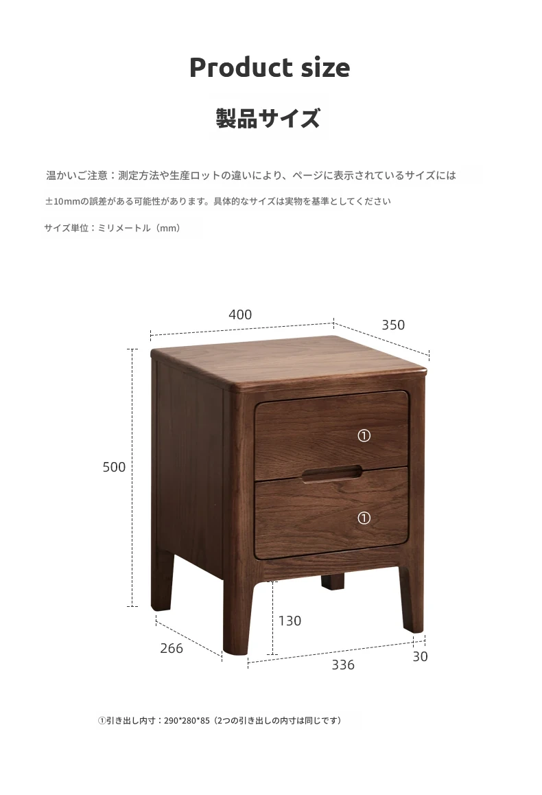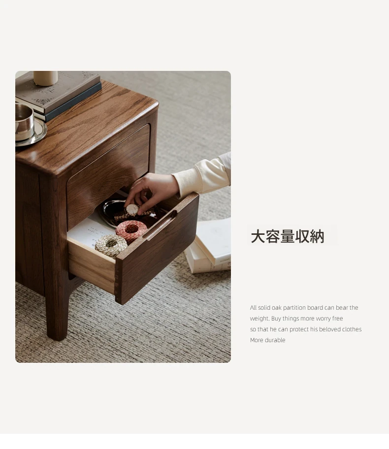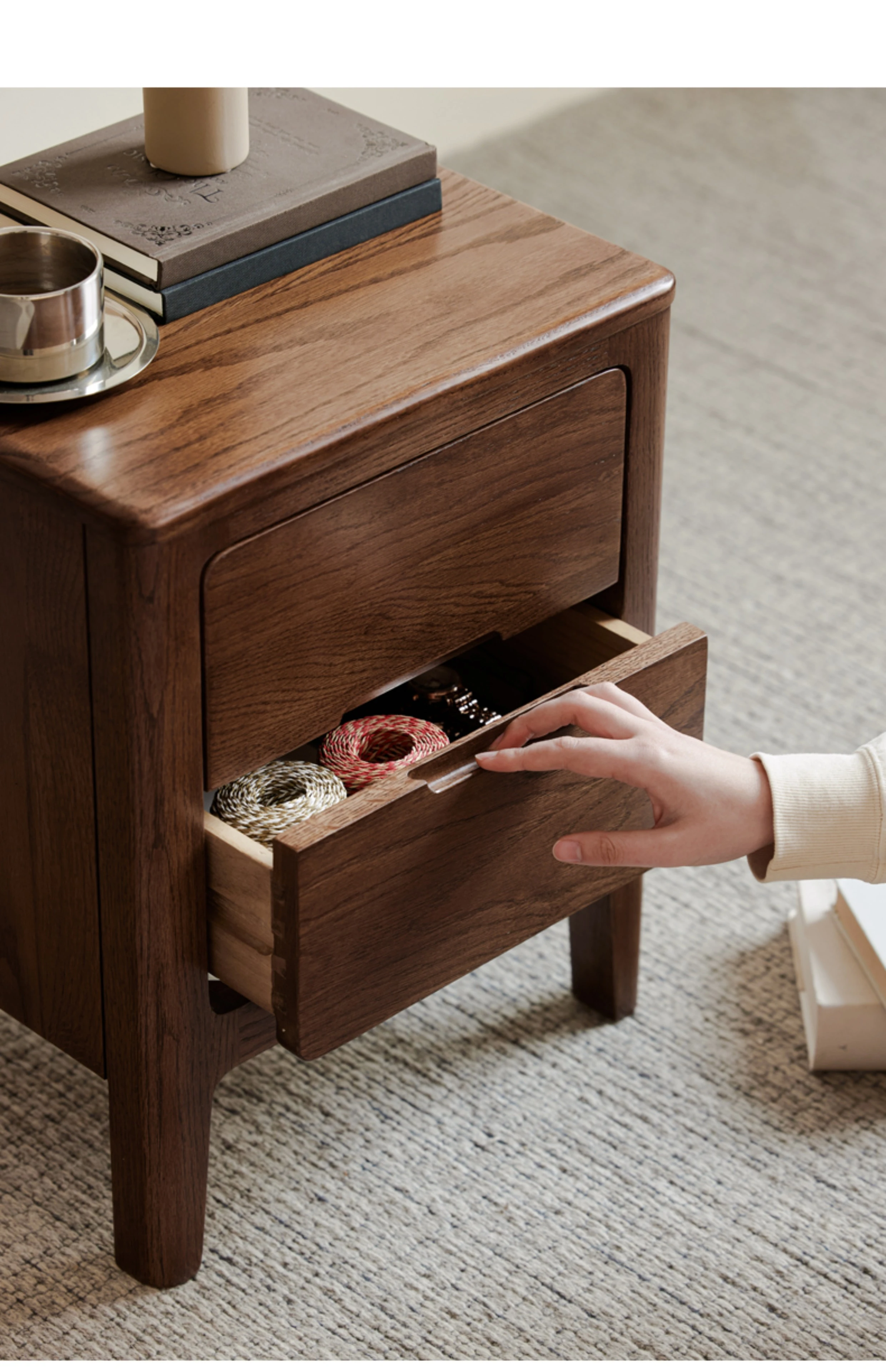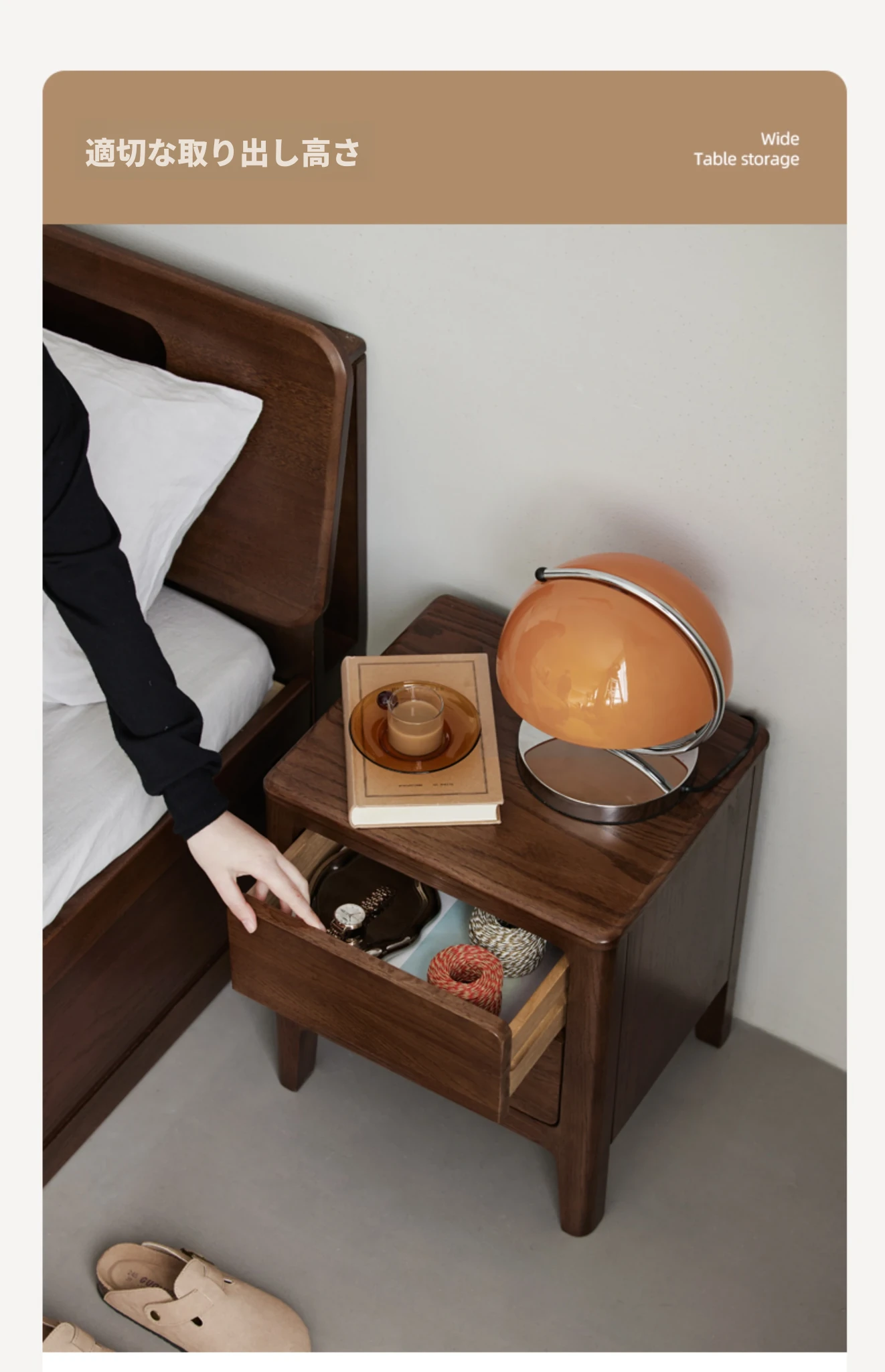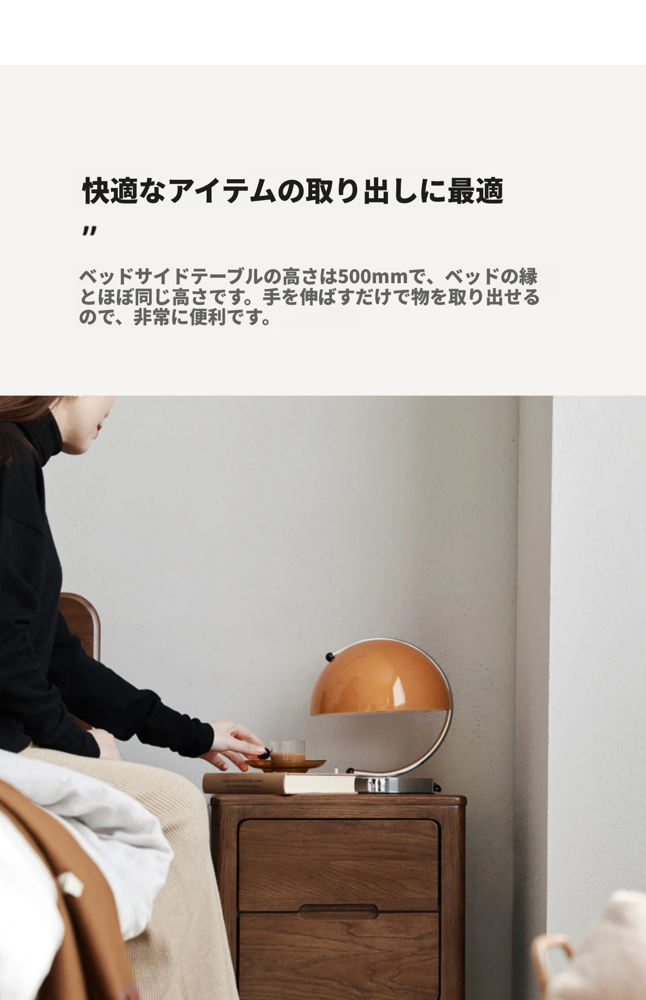 オーガニック全木製ナイトテーブル 北欧スタイル 寝室用サイドキャビネット 小型収納 橡木製 ダブル引き出し付き収納キャビネットでスッキリ整理!
