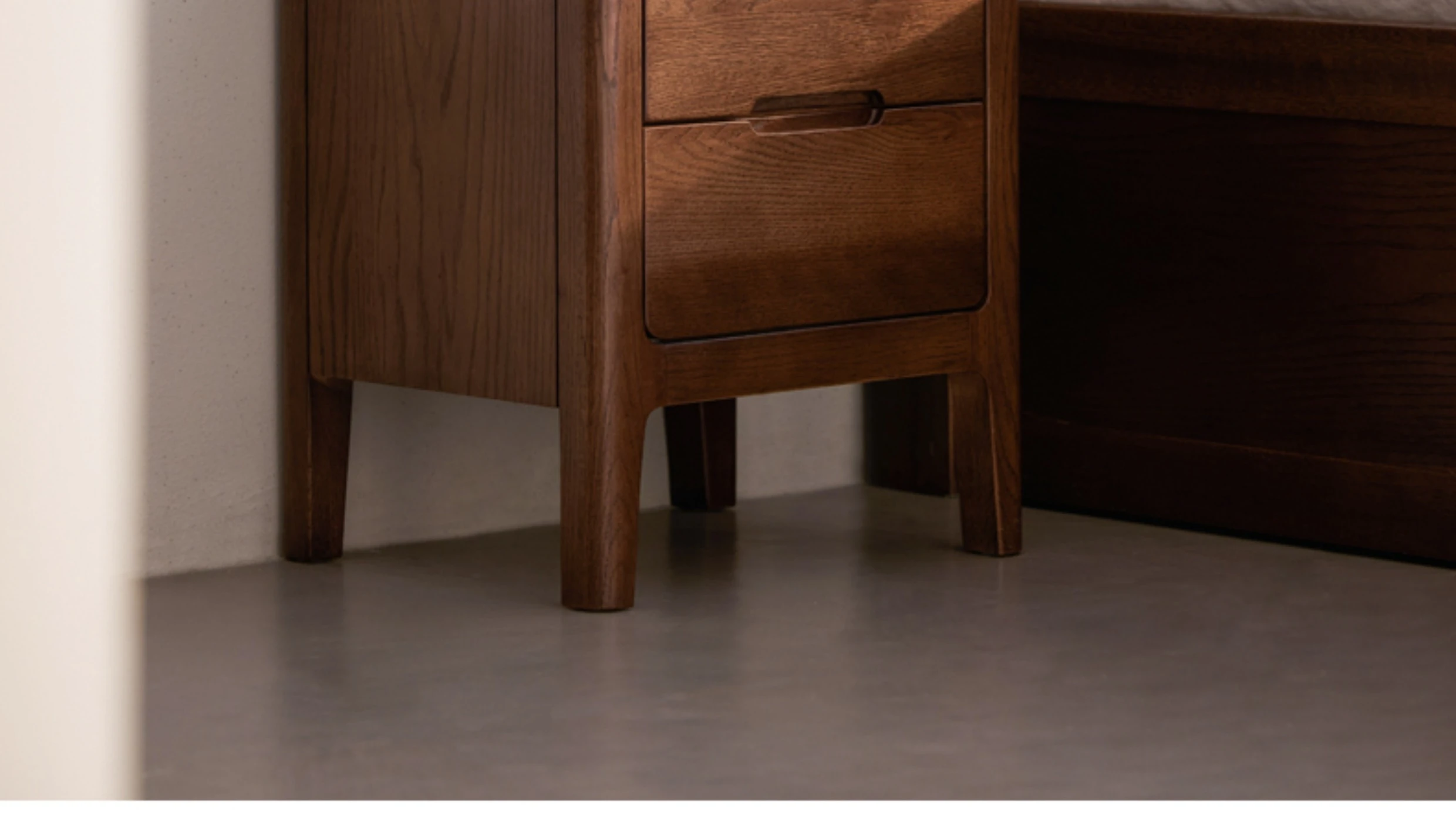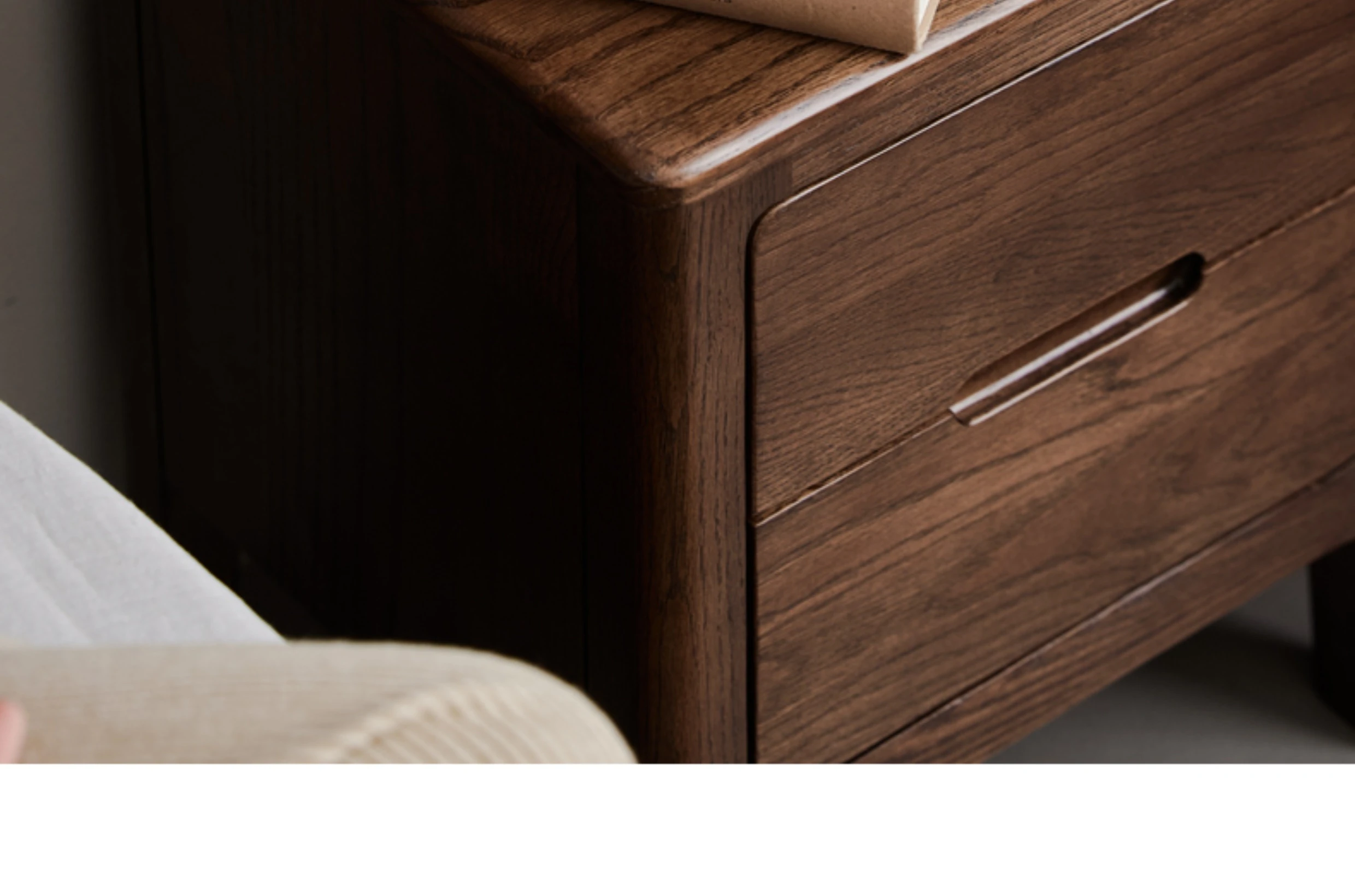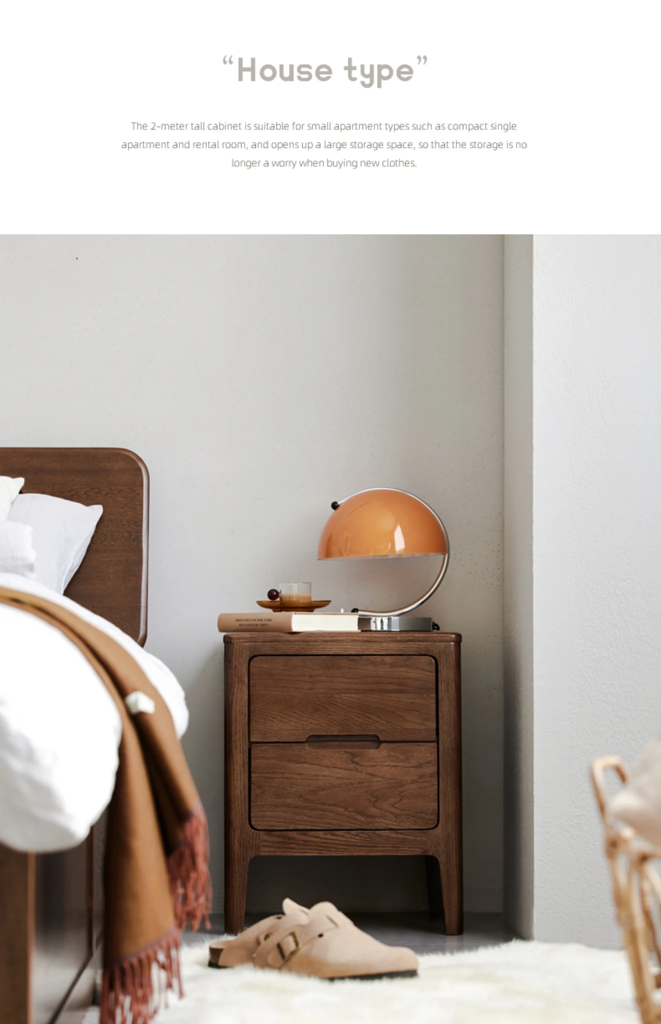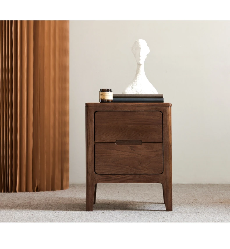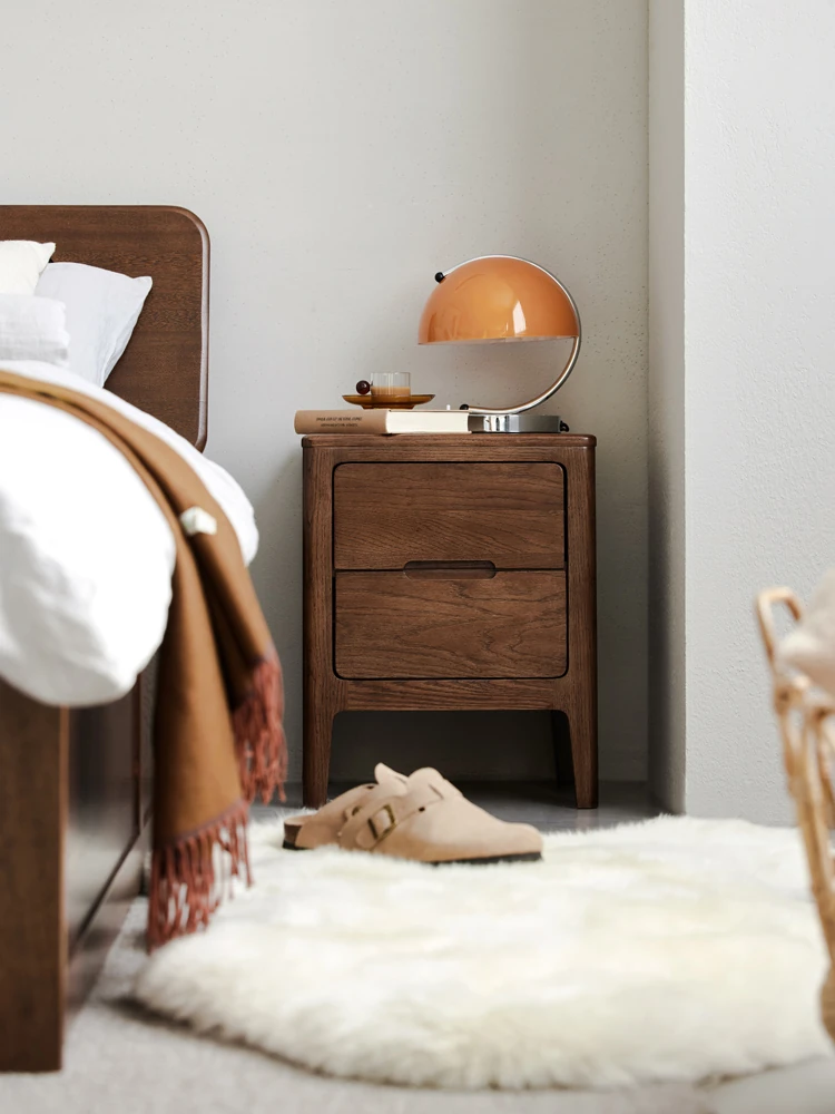 オーガニック全木製ナイトテーブル 北欧スタイル 寝室用サイドキャビネット 小型収納 橡木製 ダブル引き出し付き収納キャビネットでスッキリ整理!