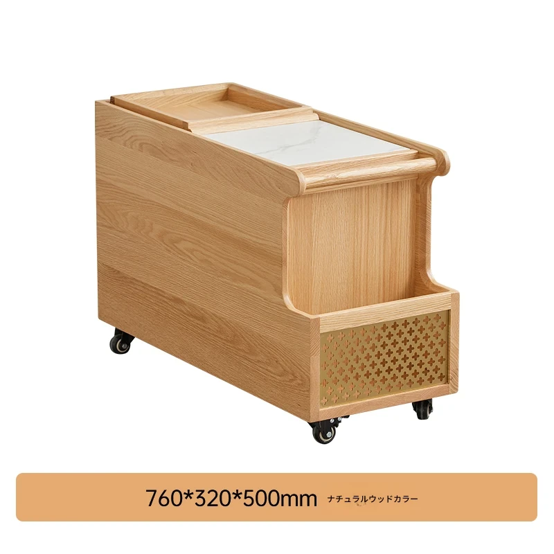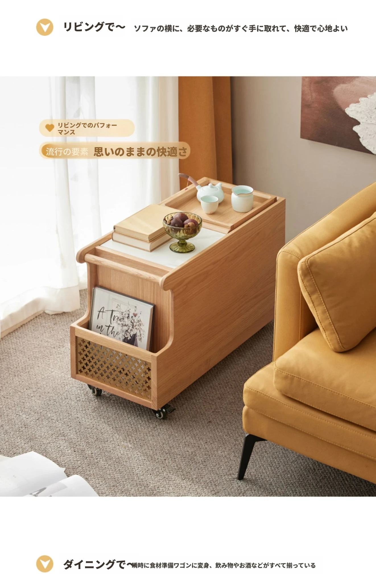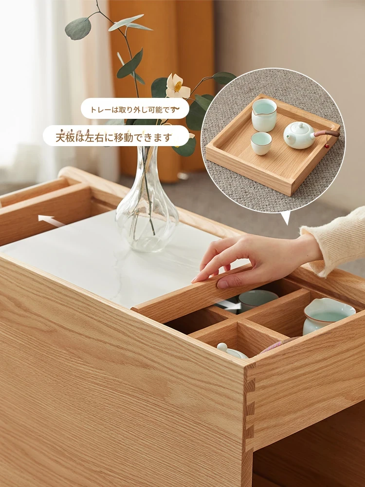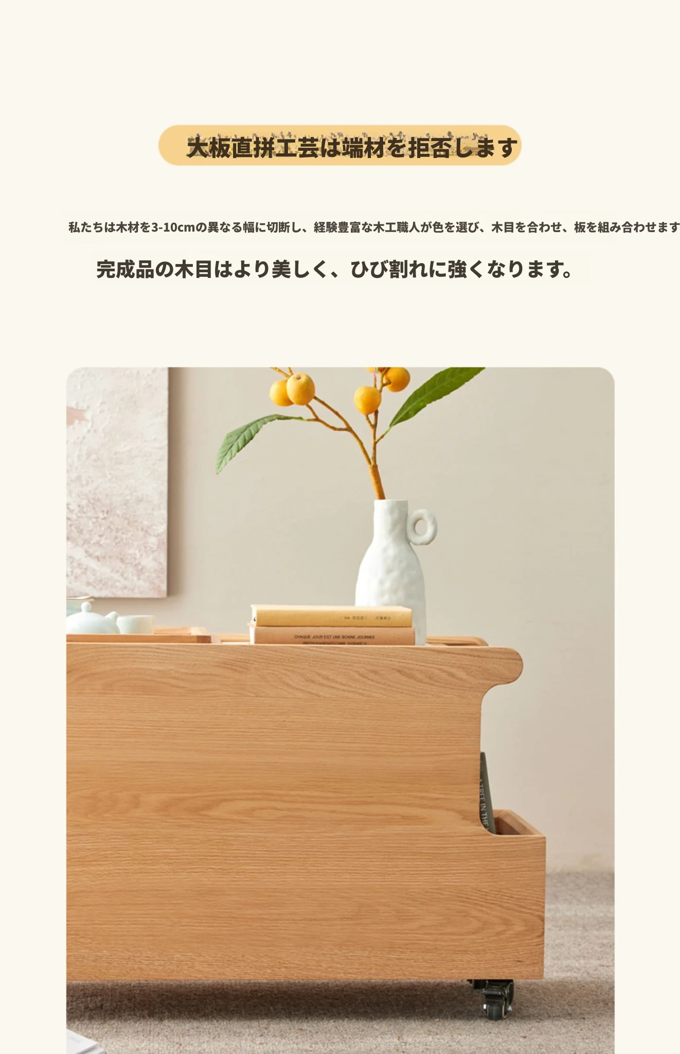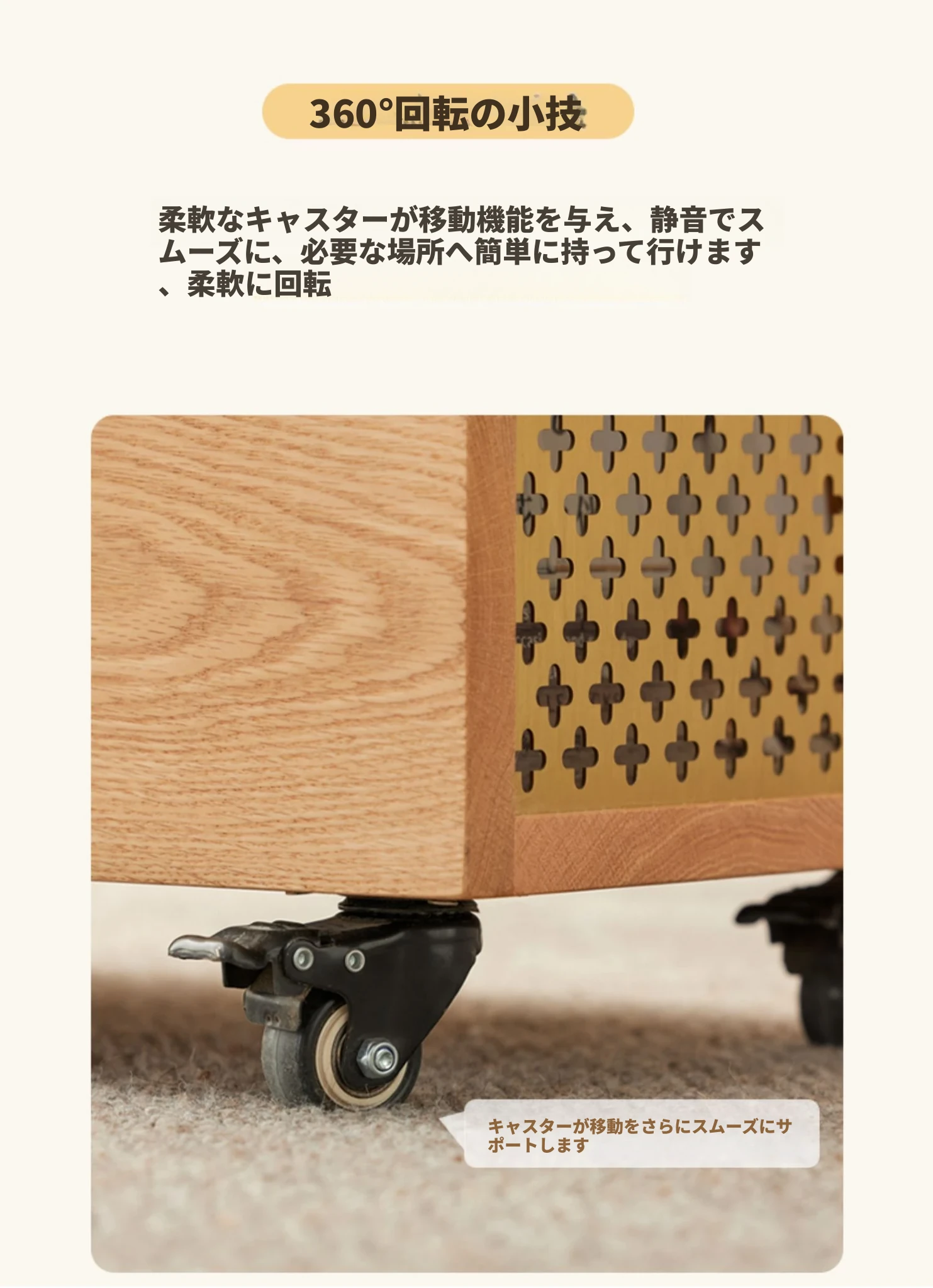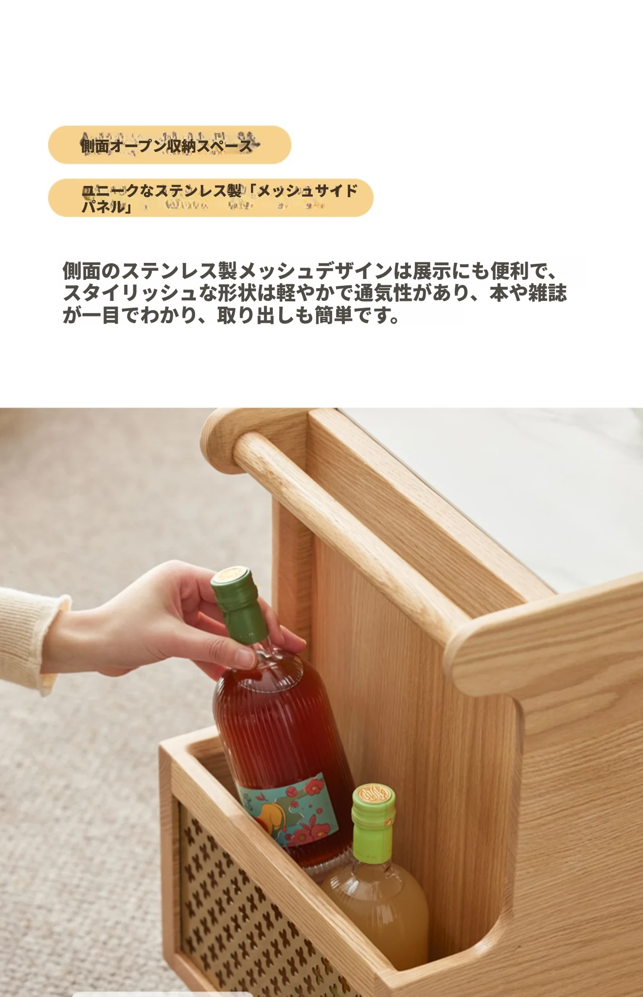 オリジナルエレメント無垢材サイドテーブル モダンミニマリスト 多機能ストレージキャビネット オーク製 キャスター付き 移動可能なソファサイドキャビネット - スタイリッシュな収納を実現!