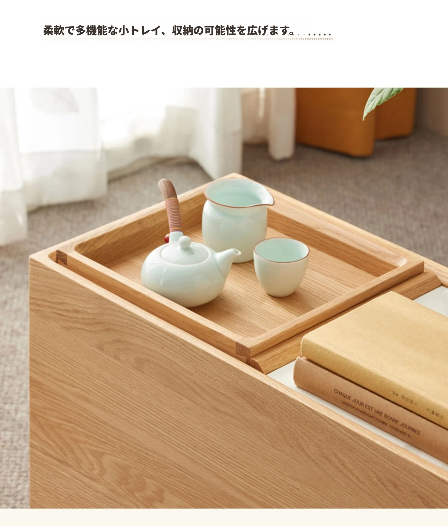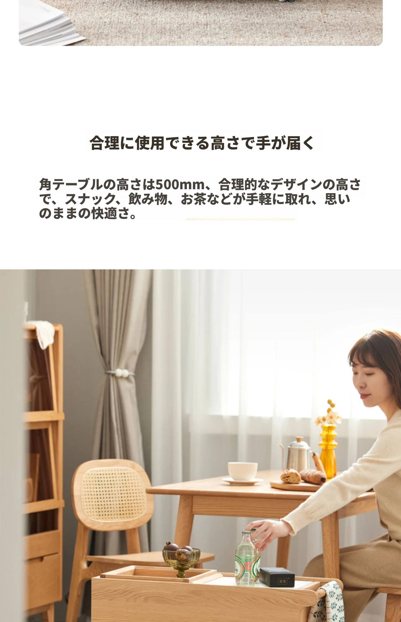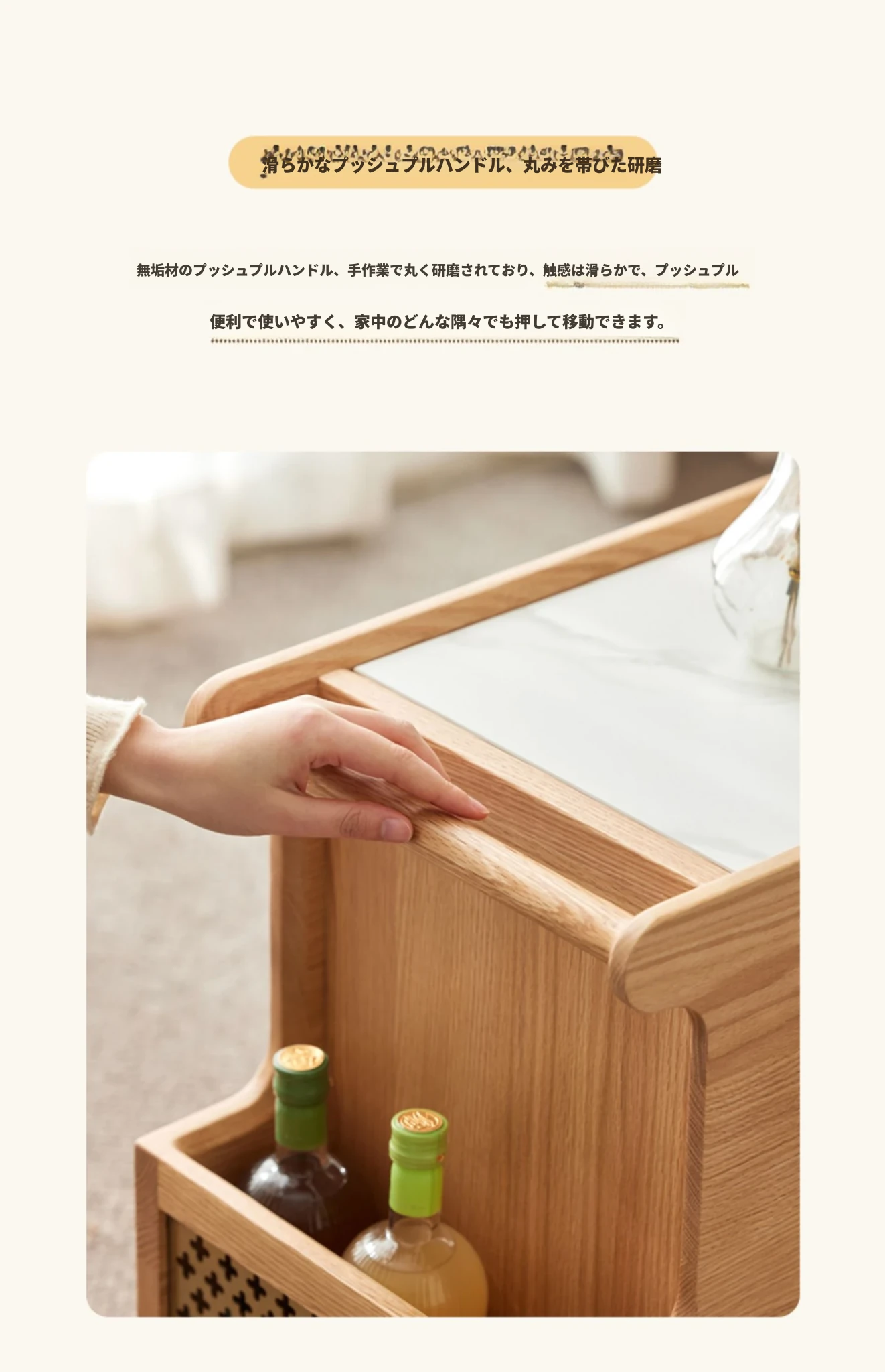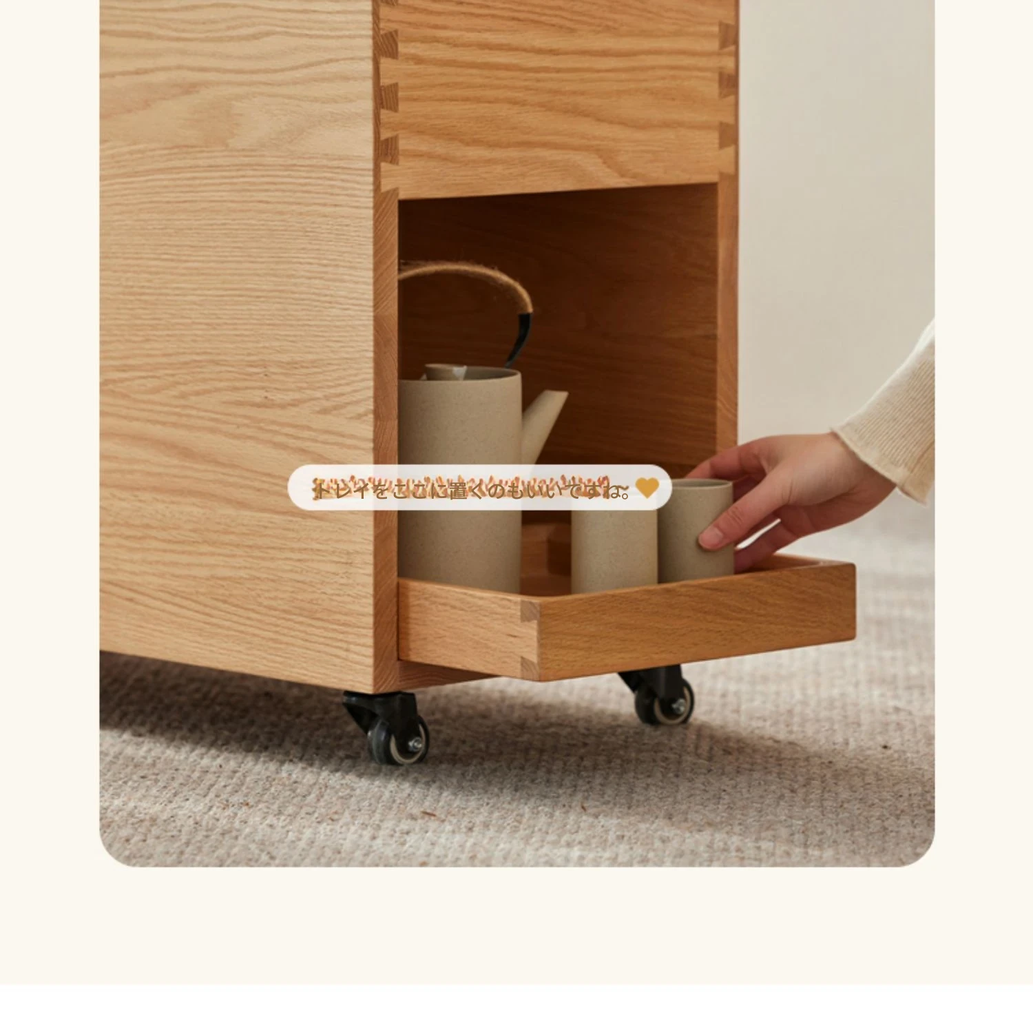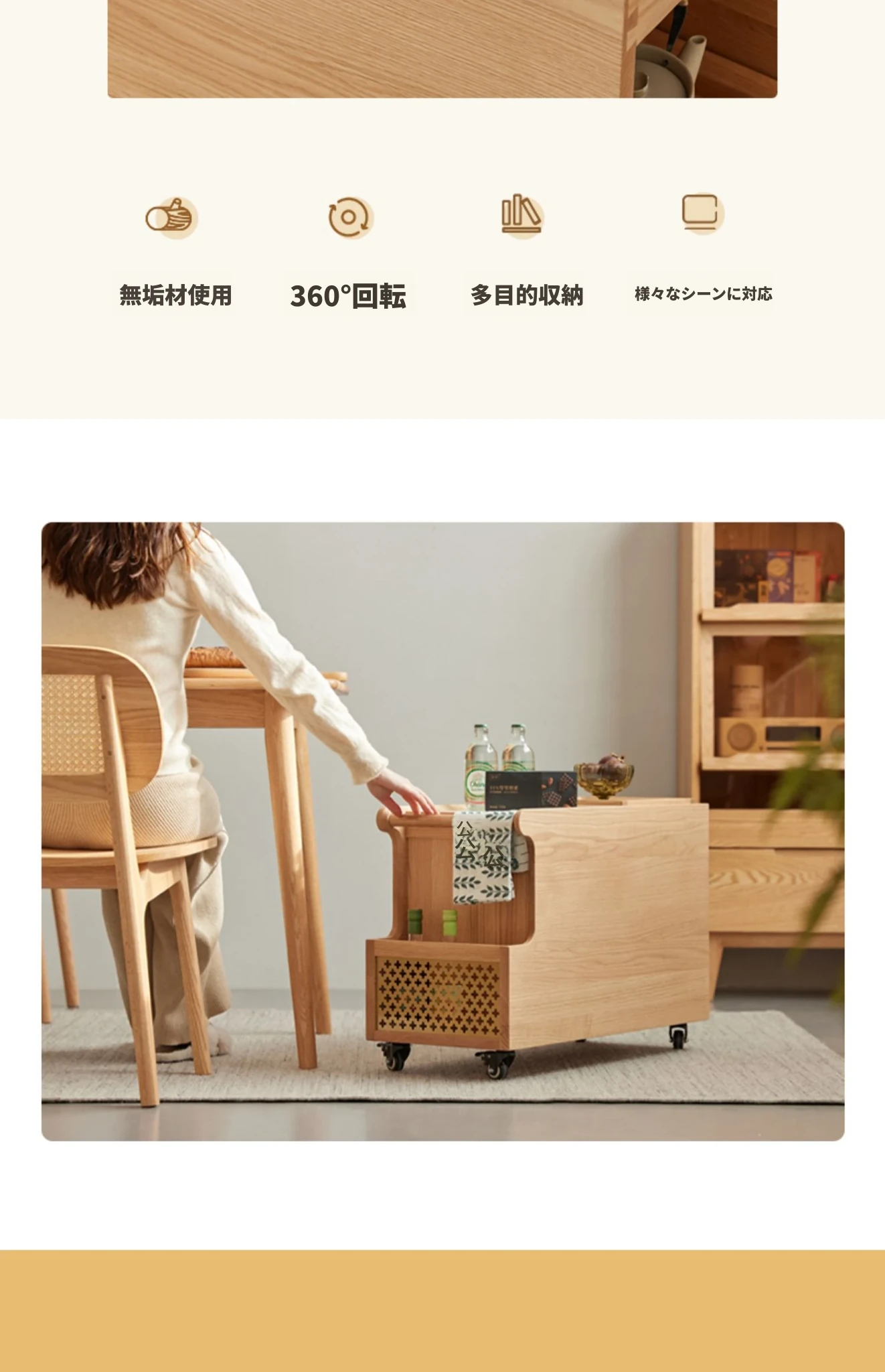 オリジナルエレメント無垢材サイドテーブル モダンミニマリスト 多機能ストレージキャビネット オーク製 キャスター付き 移動可能なソファサイドキャビネット - スタイリッシュな収納を実現!