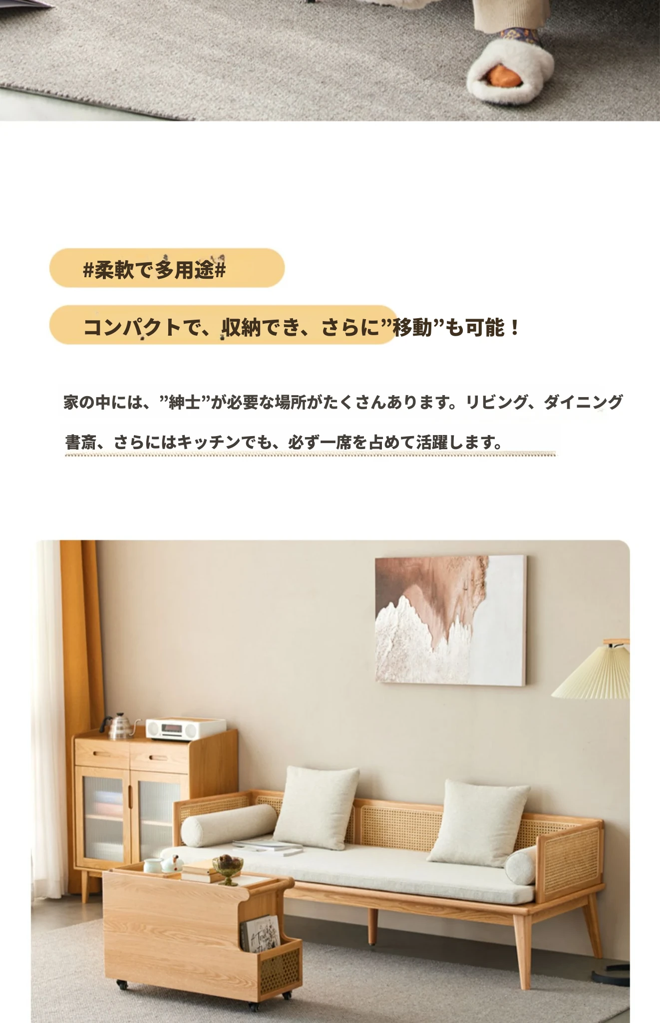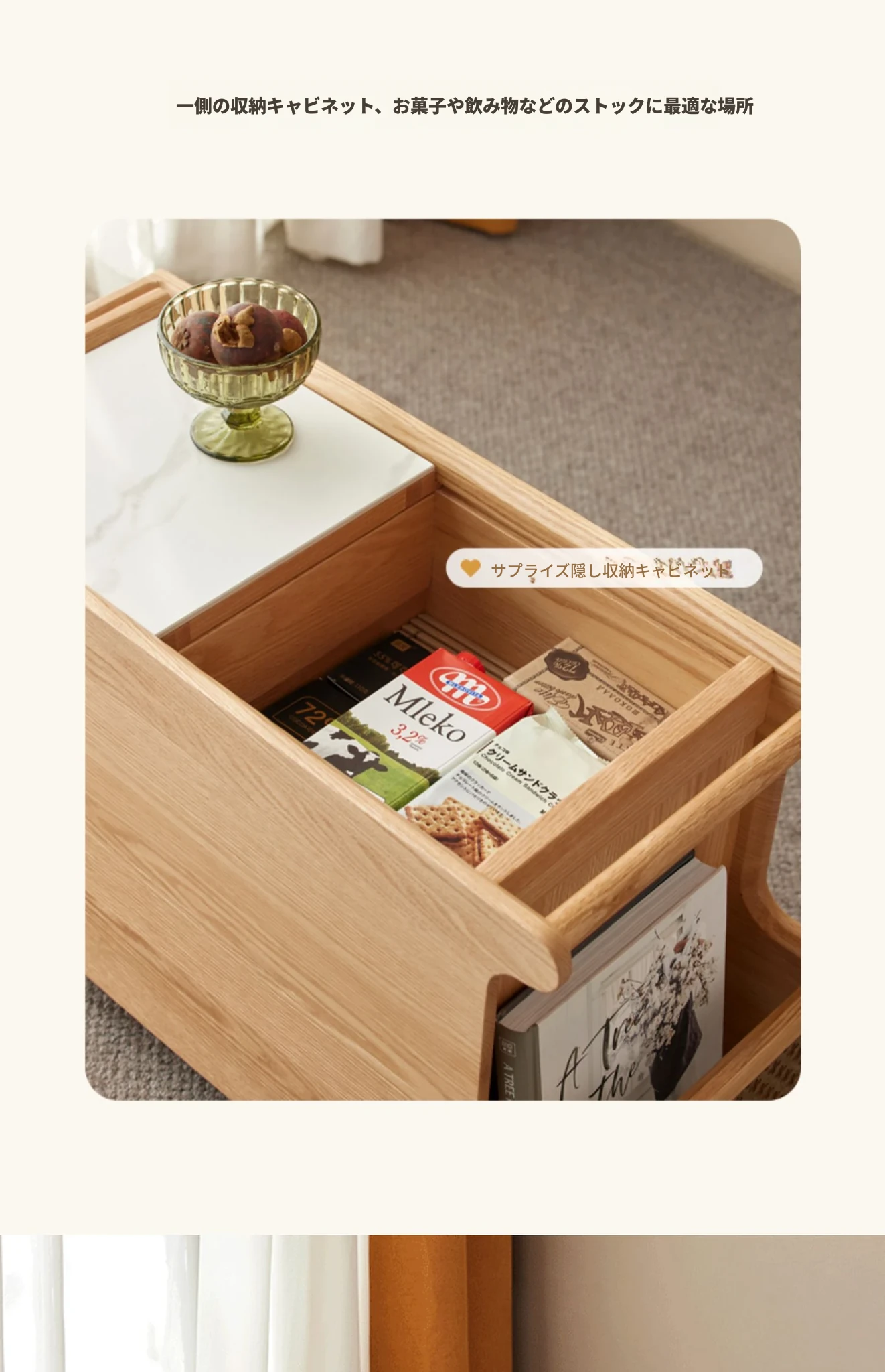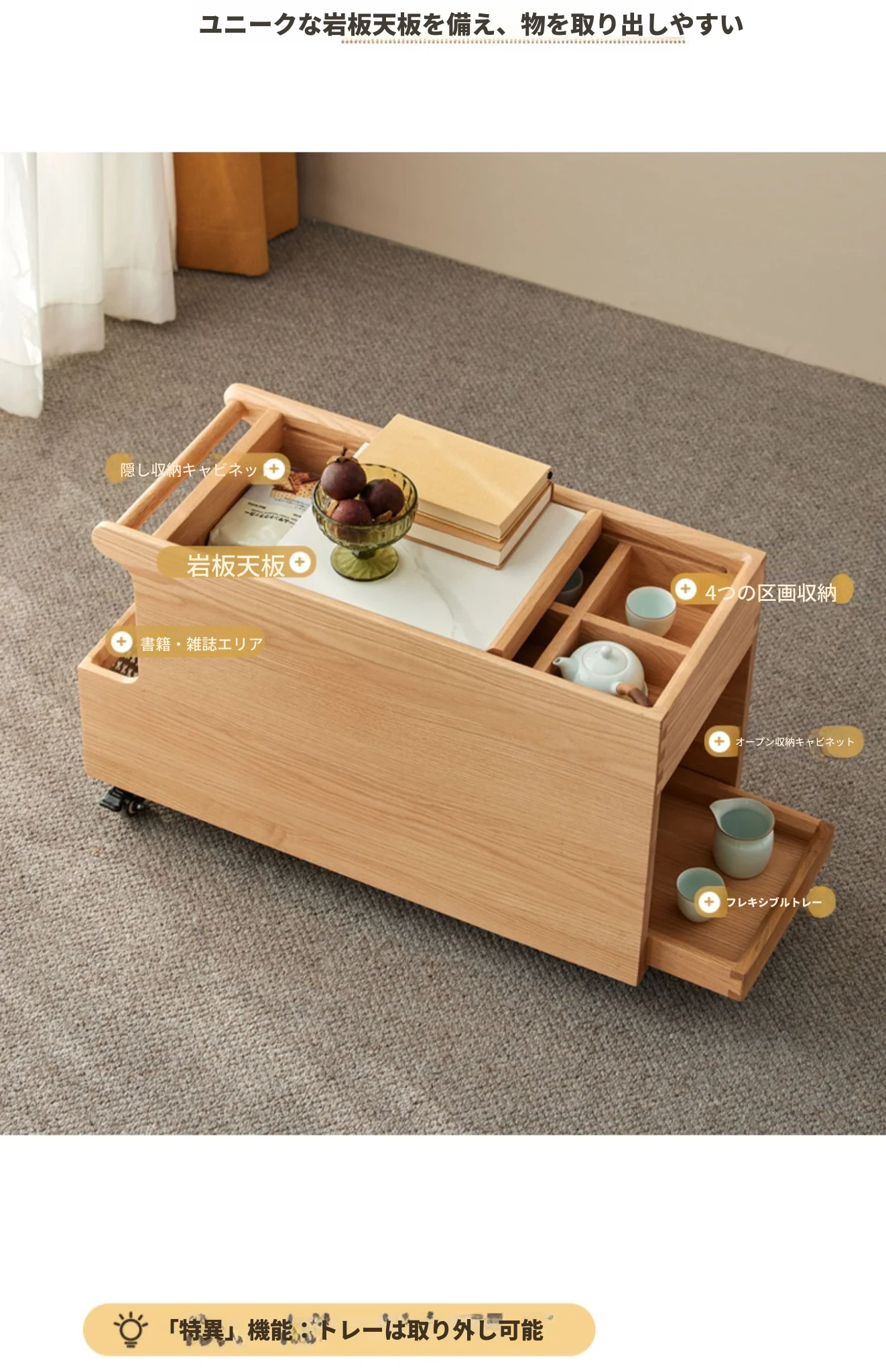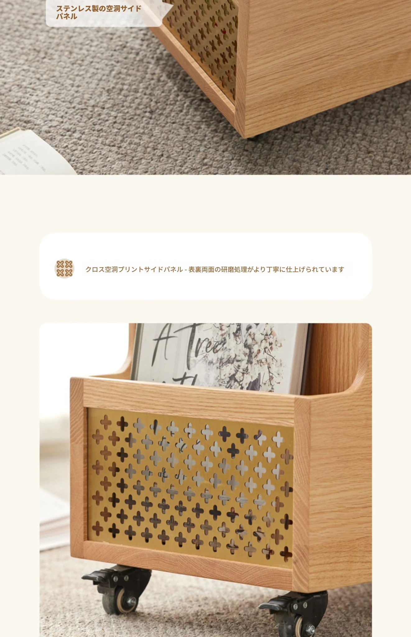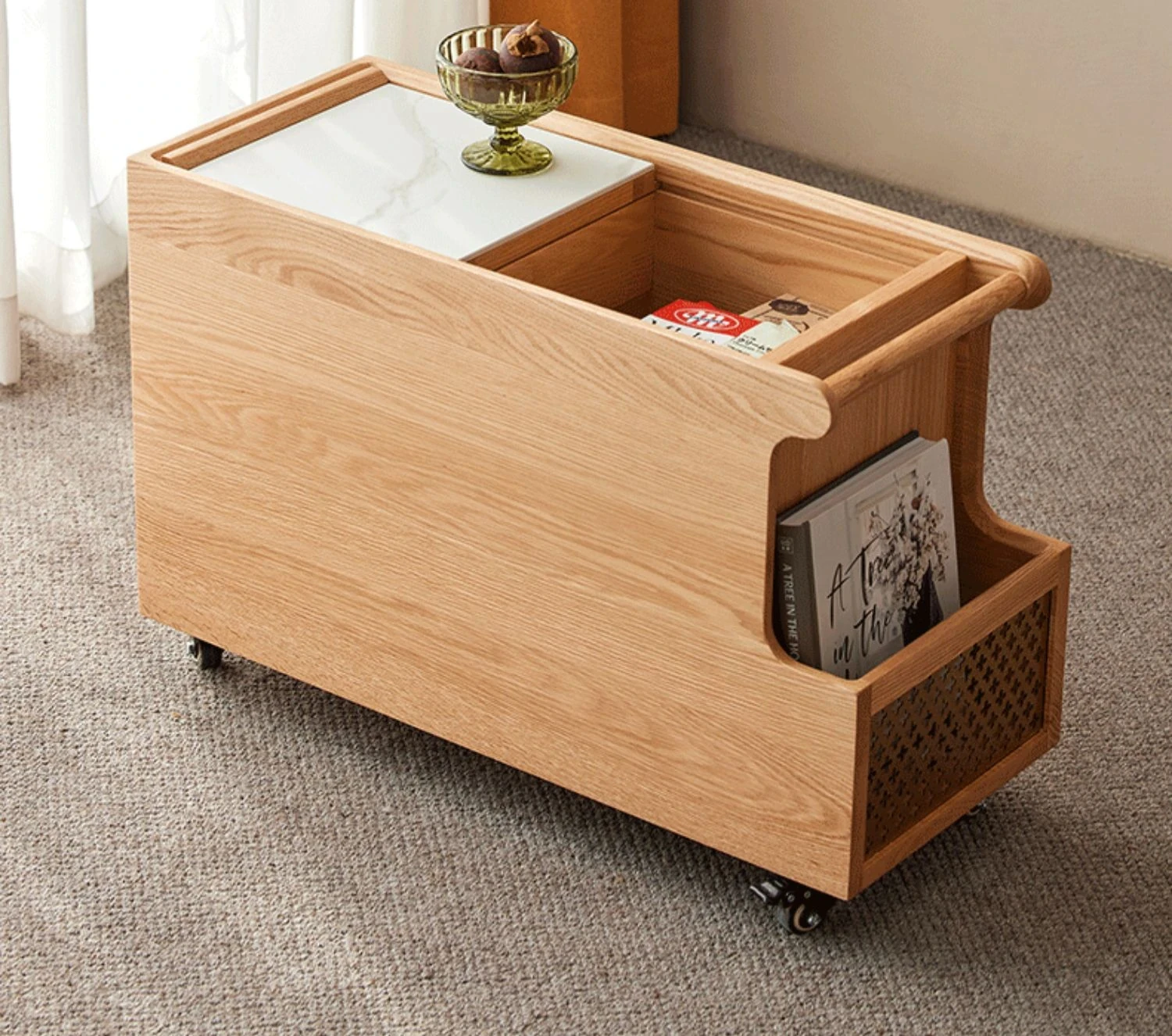 オリジナルエレメント無垢材サイドテーブル モダンミニマリスト 多機能ストレージキャビネット オーク製 キャスター付き 移動可能なソファサイドキャビネット - スタイリッシュな収納を実現!