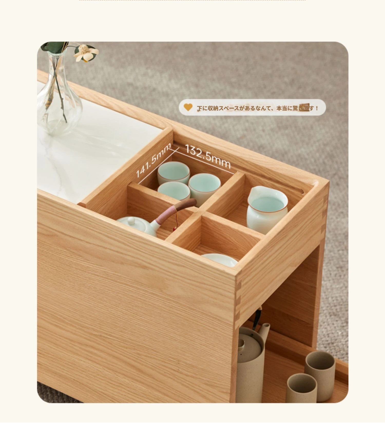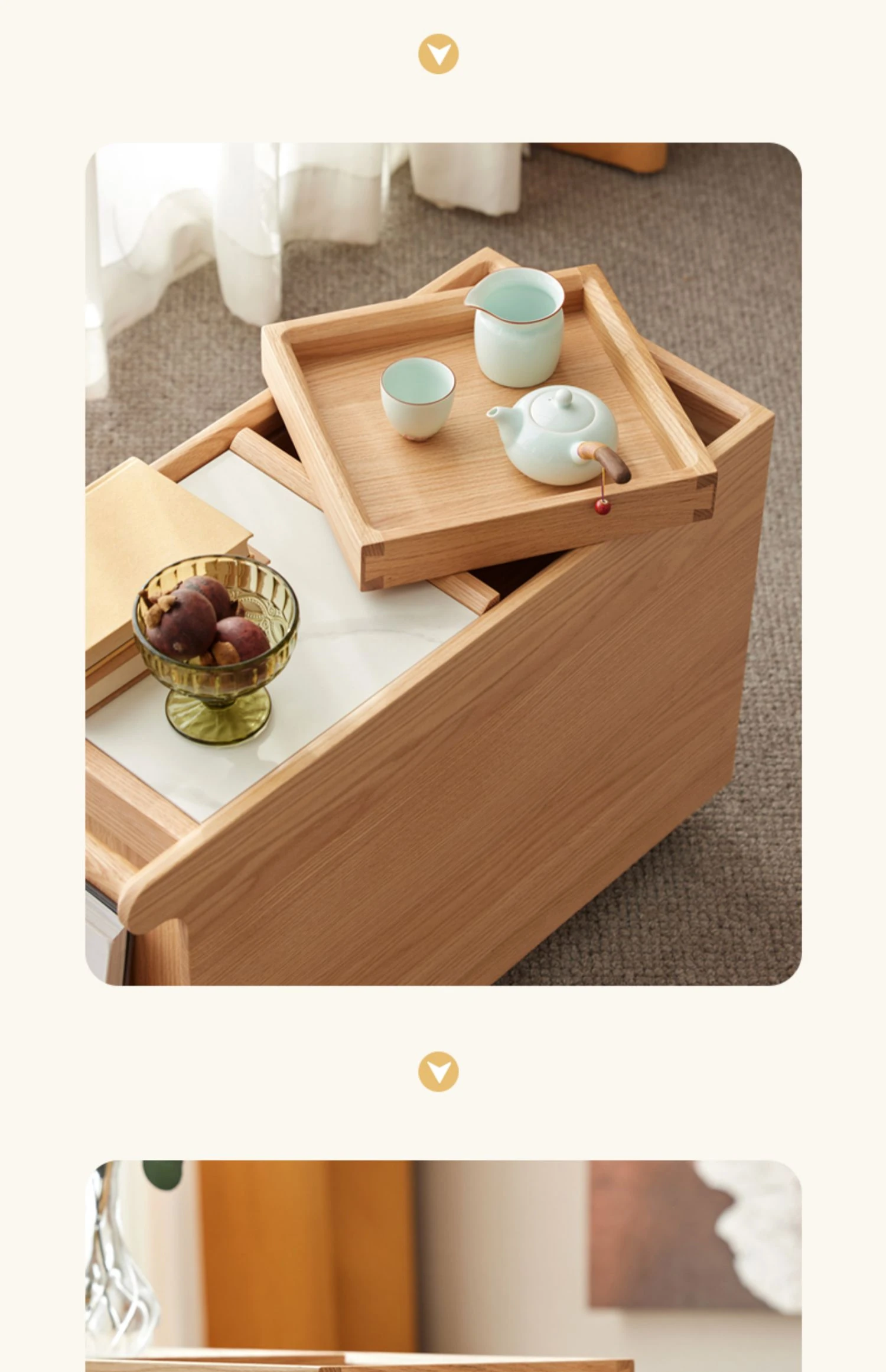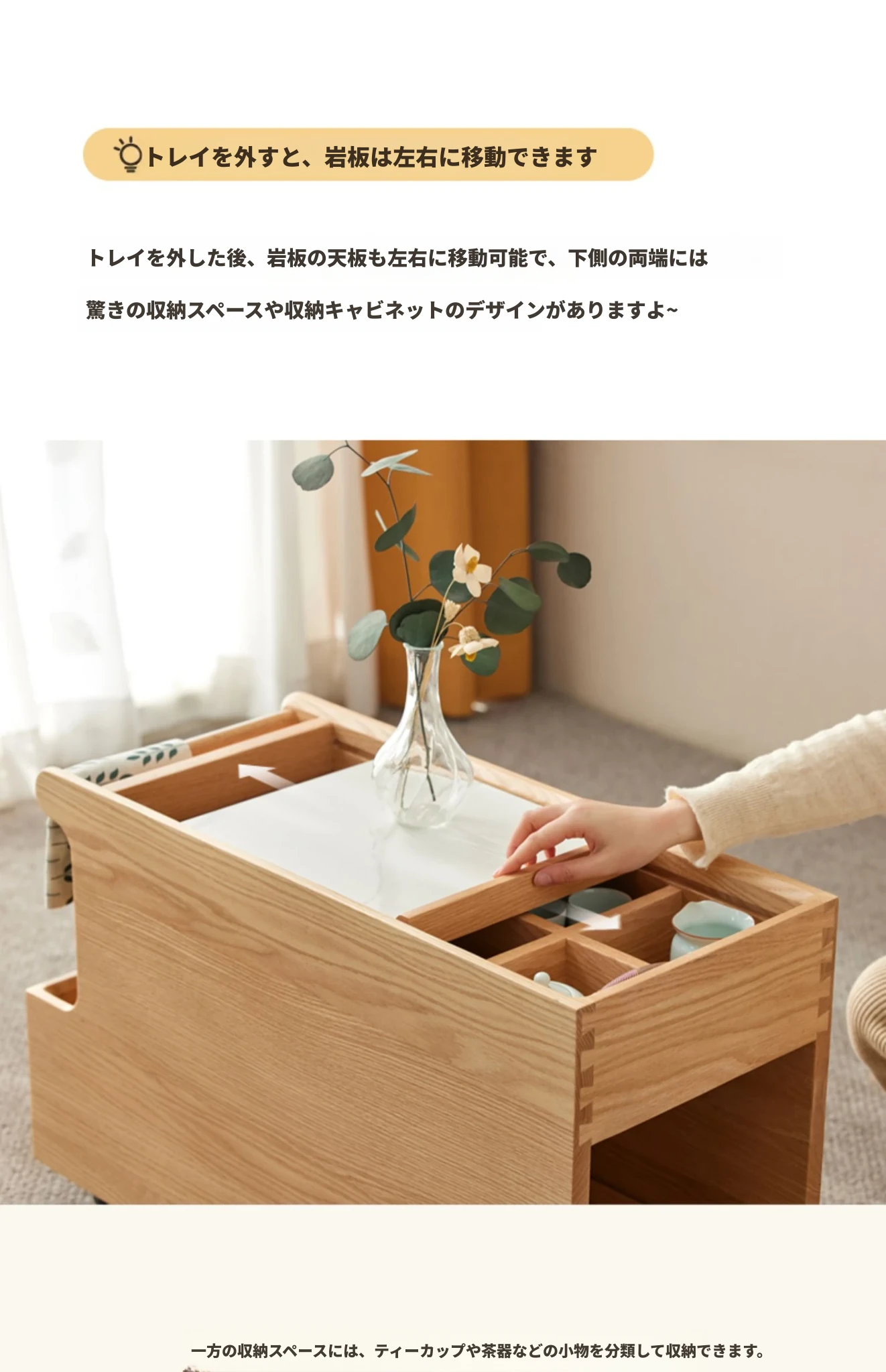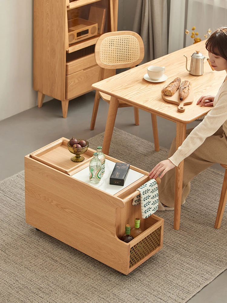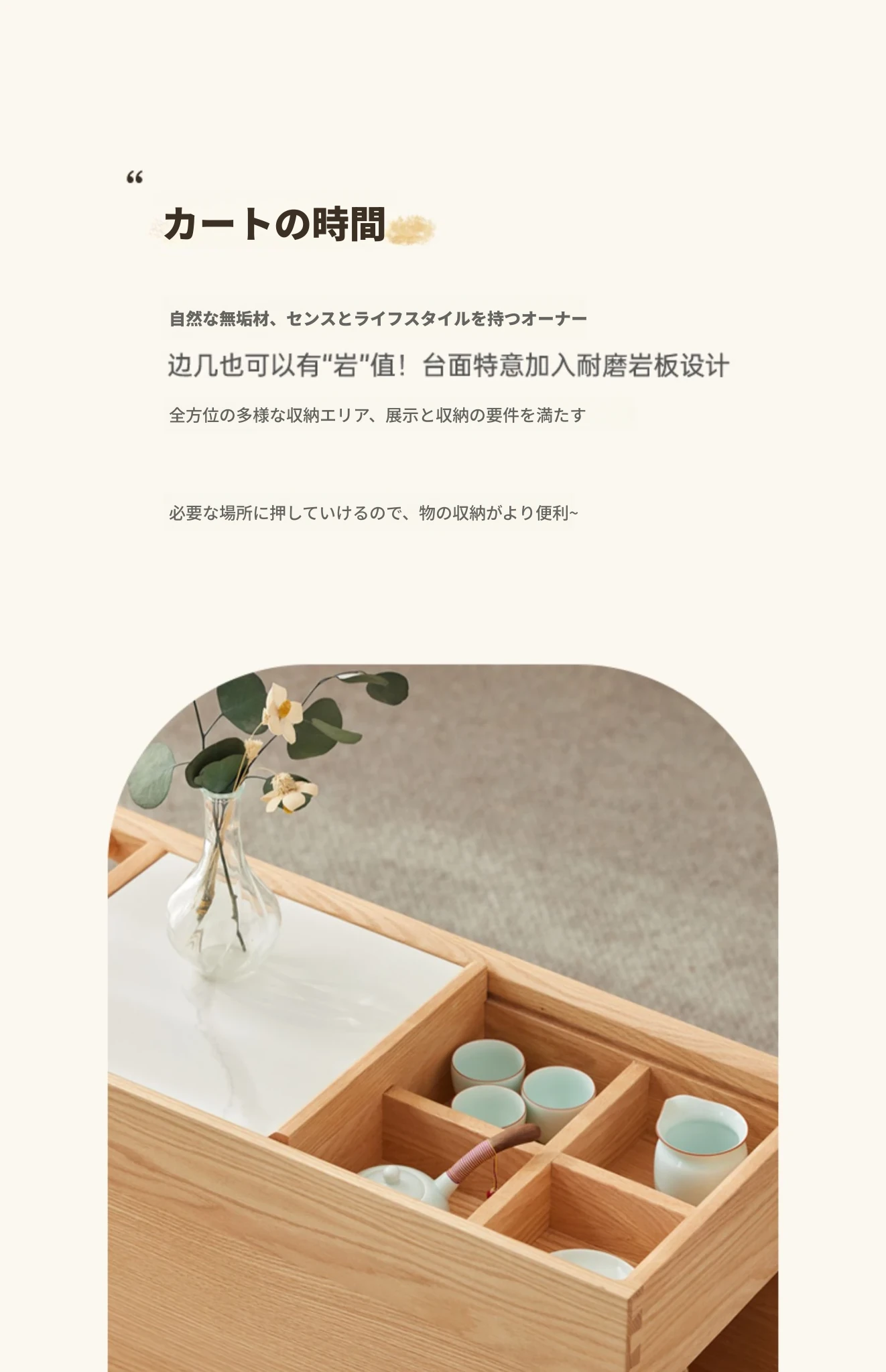 オリジナルエレメント無垢材サイドテーブル モダンミニマリスト 多機能ストレージキャビネット オーク製 キャスター付き 移動可能なソファサイドキャビネット - スタイリッシュな収納を実現!