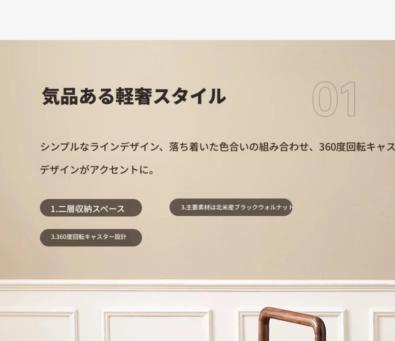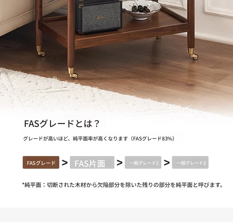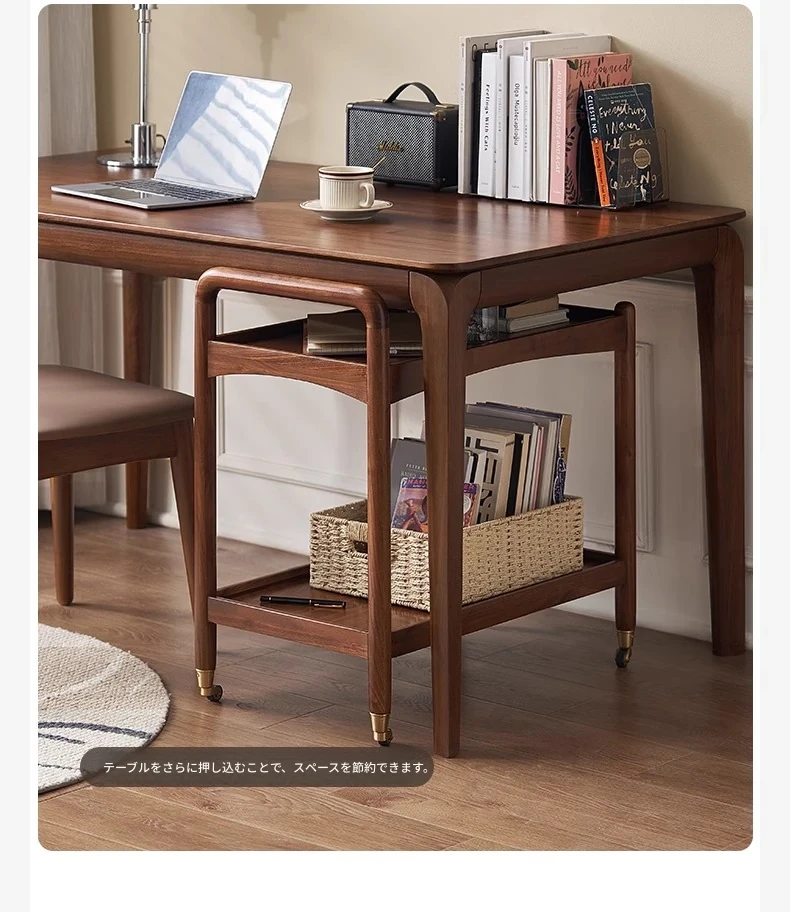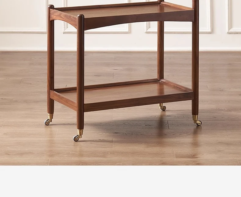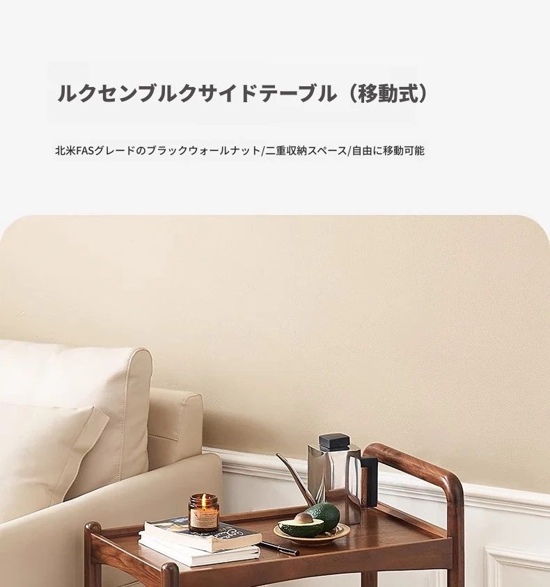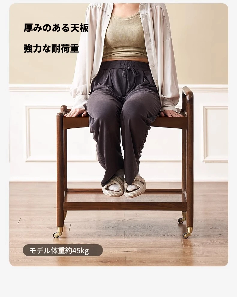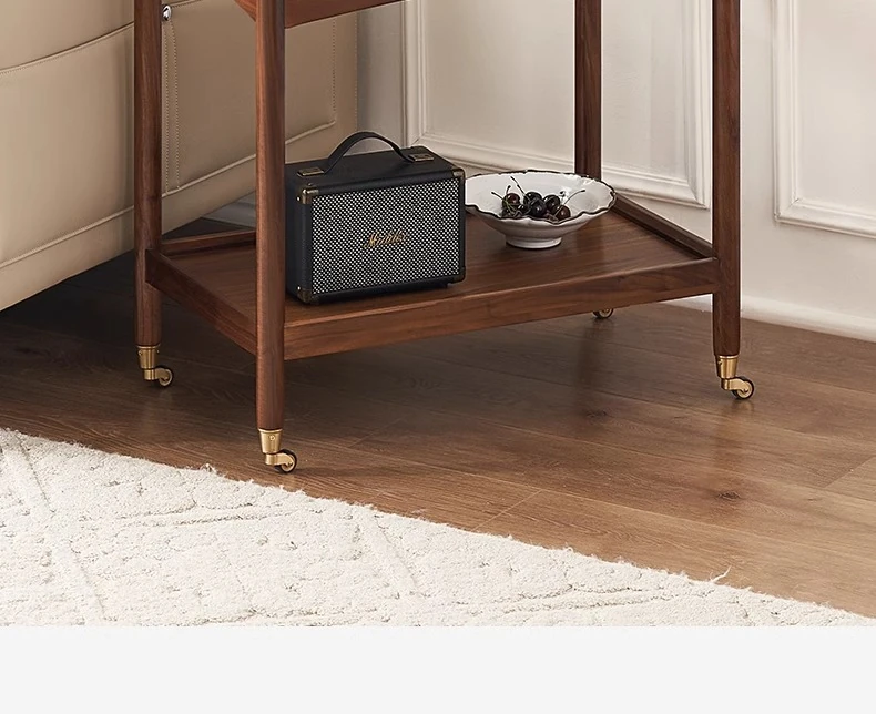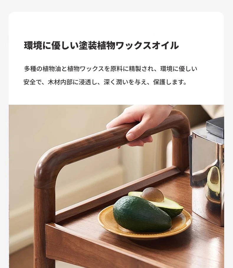 原木の北欧スタイル、ブラックウォルナット製の収納サイドテーブル。キャスター付きで移動も簡単!二段式デザインで、ソファの横にぴったりの実用的な小型ワゴン。おしゃれな空間を演出します!