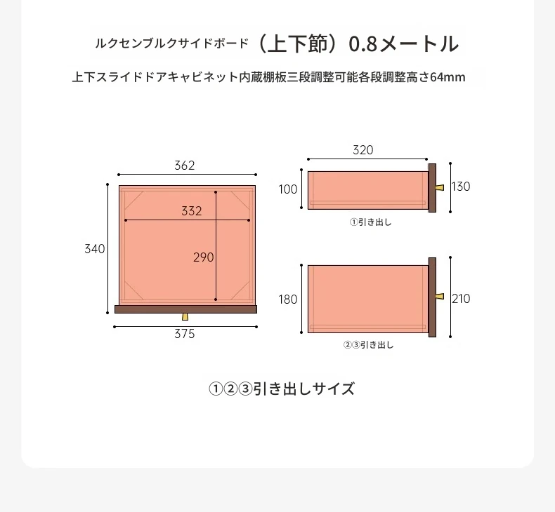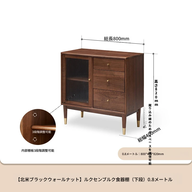 【北米ブラックウォールナット-下段】0.8メートルサイドボード(800*400*820mm)
