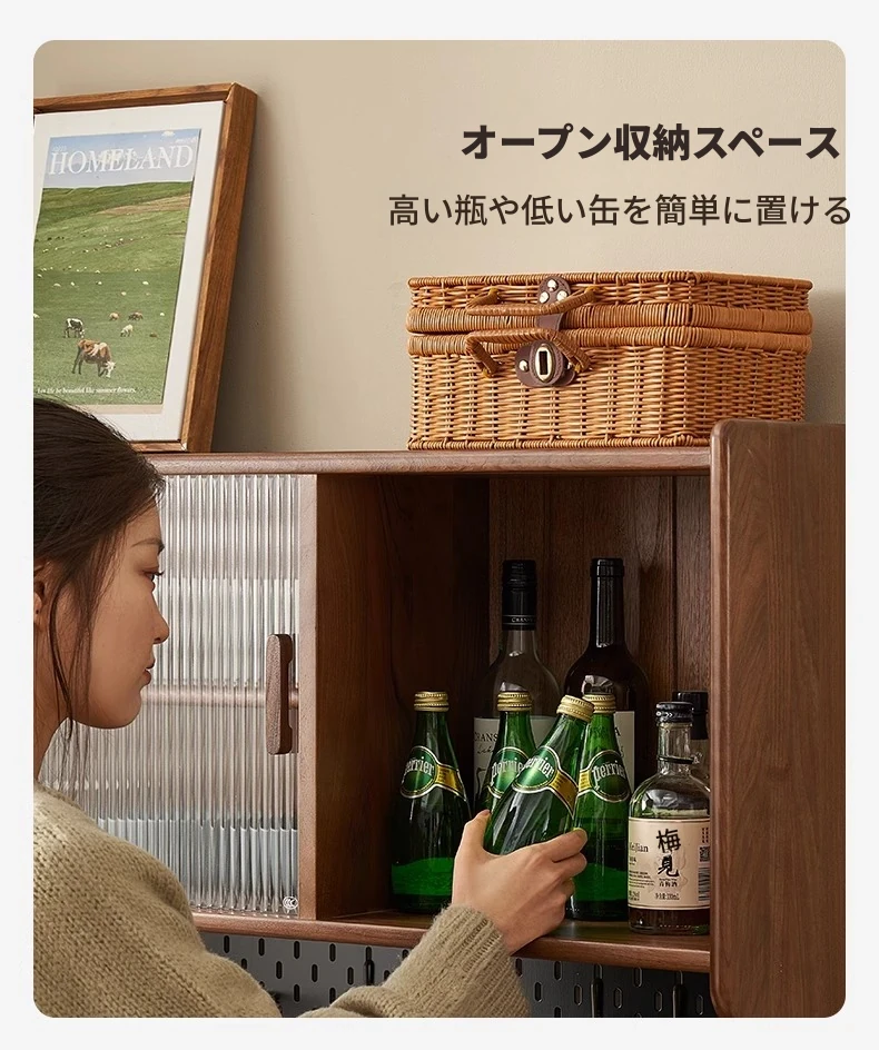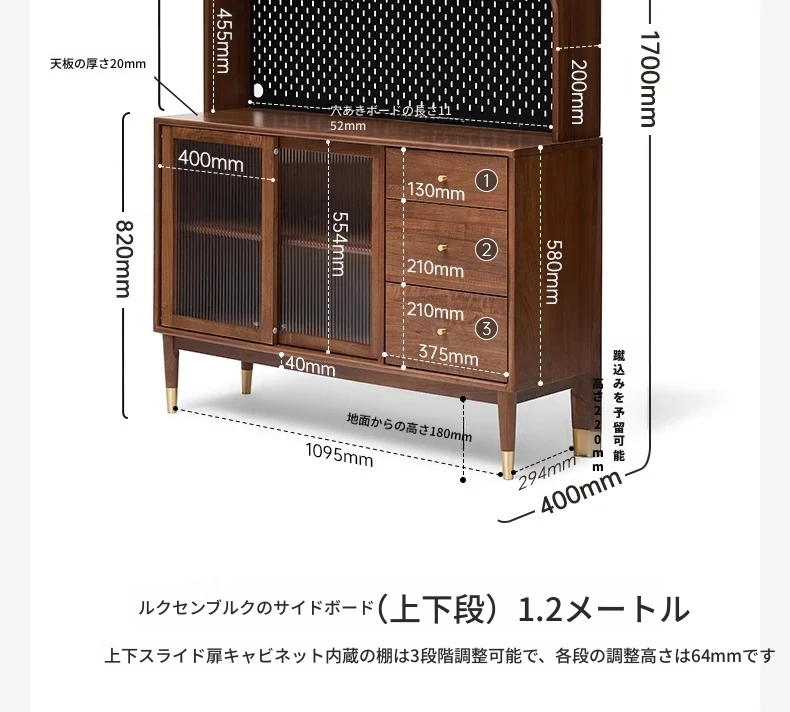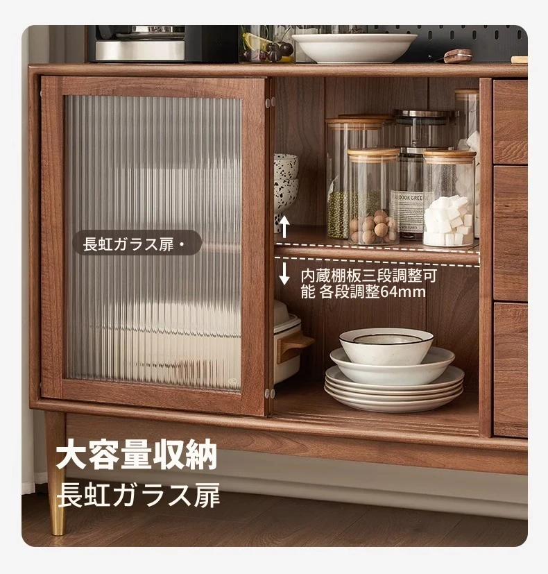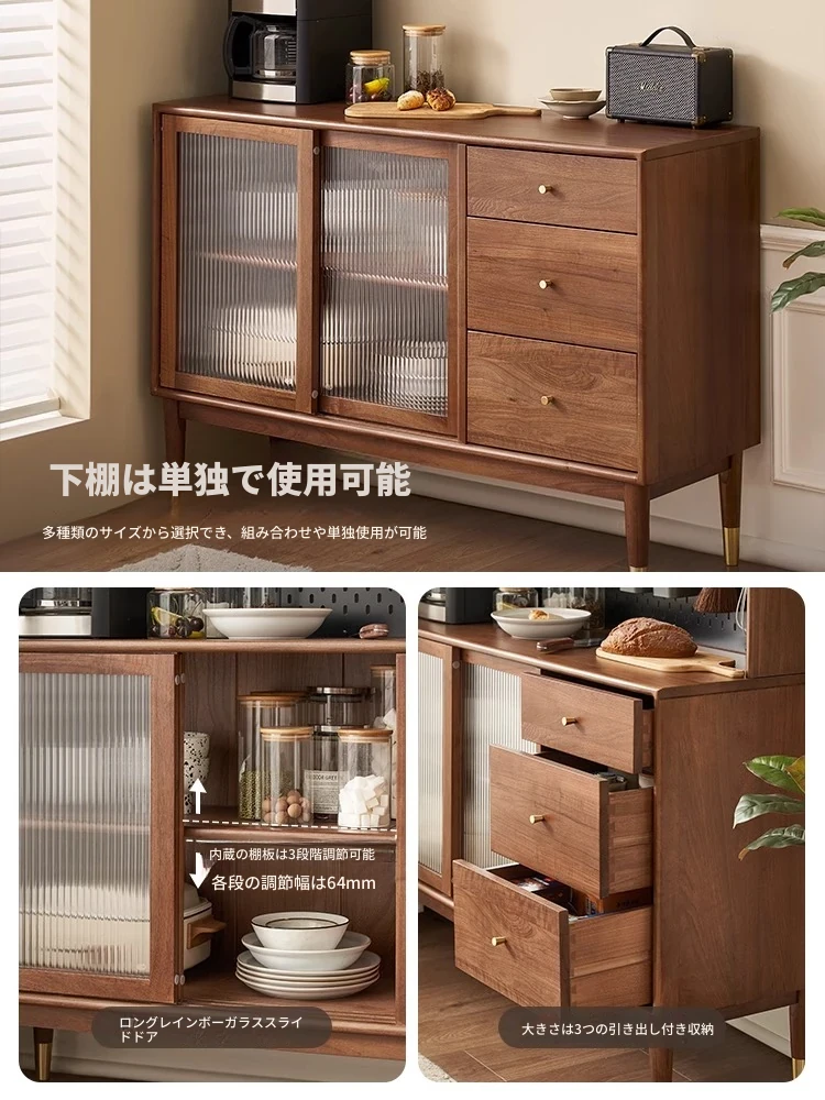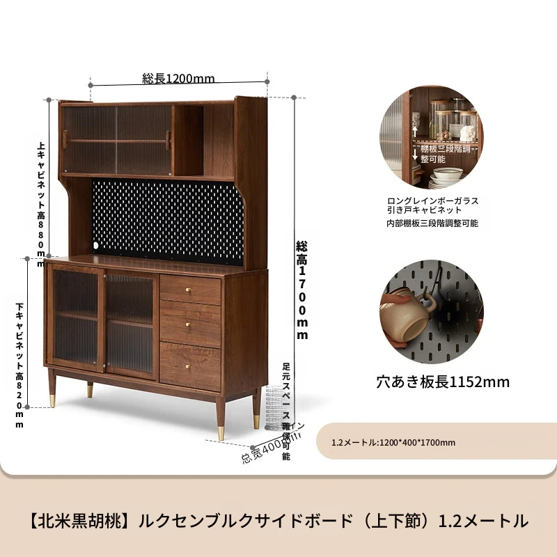 【北米ブラックウォールナット-上下段】1.2メートルサイドボード(1200*400*1700mm)
