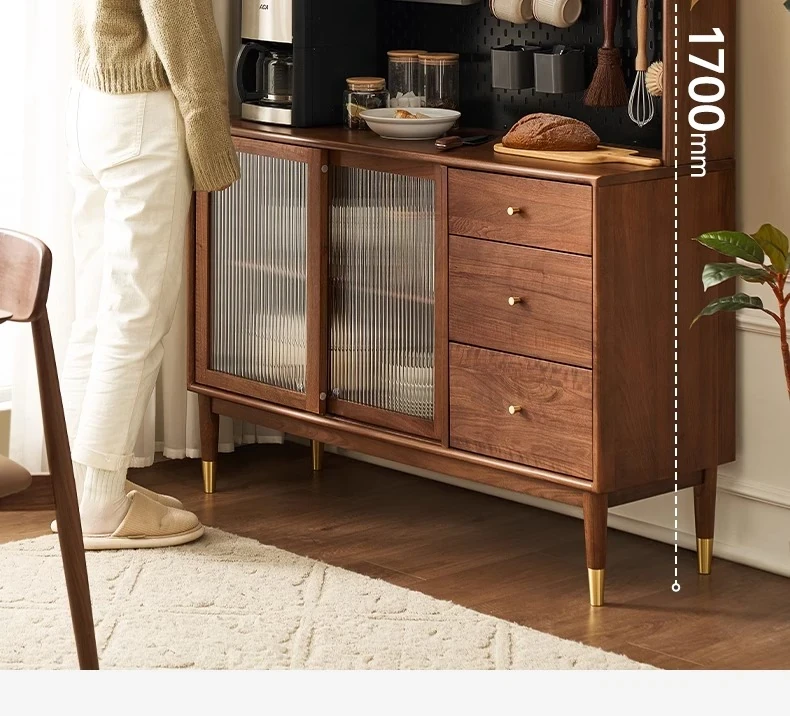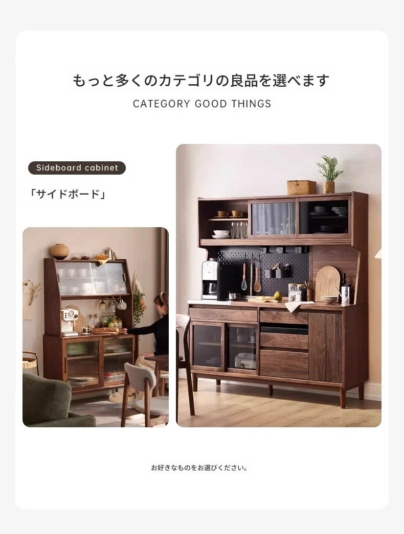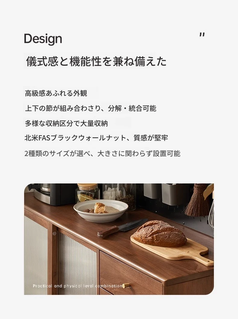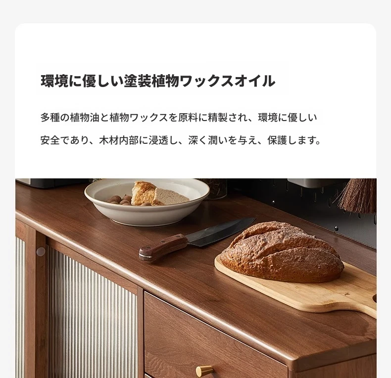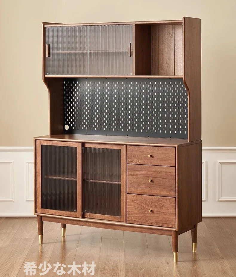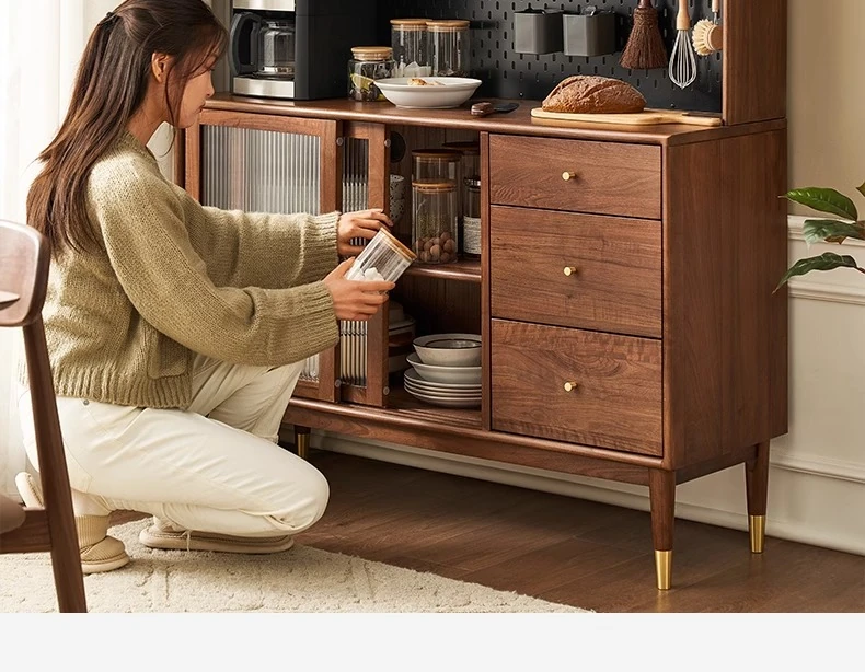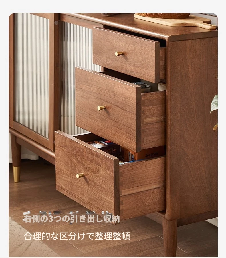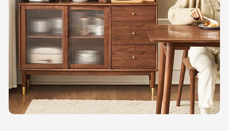 オリジナルエッセンス全無垢材ダイニングサイドボード - シンプルで洗練された北米産ブラックウォルナット製、小型住宅に最適な収納キャビネット。あなたの空間をスタイリッシュに彩ります!