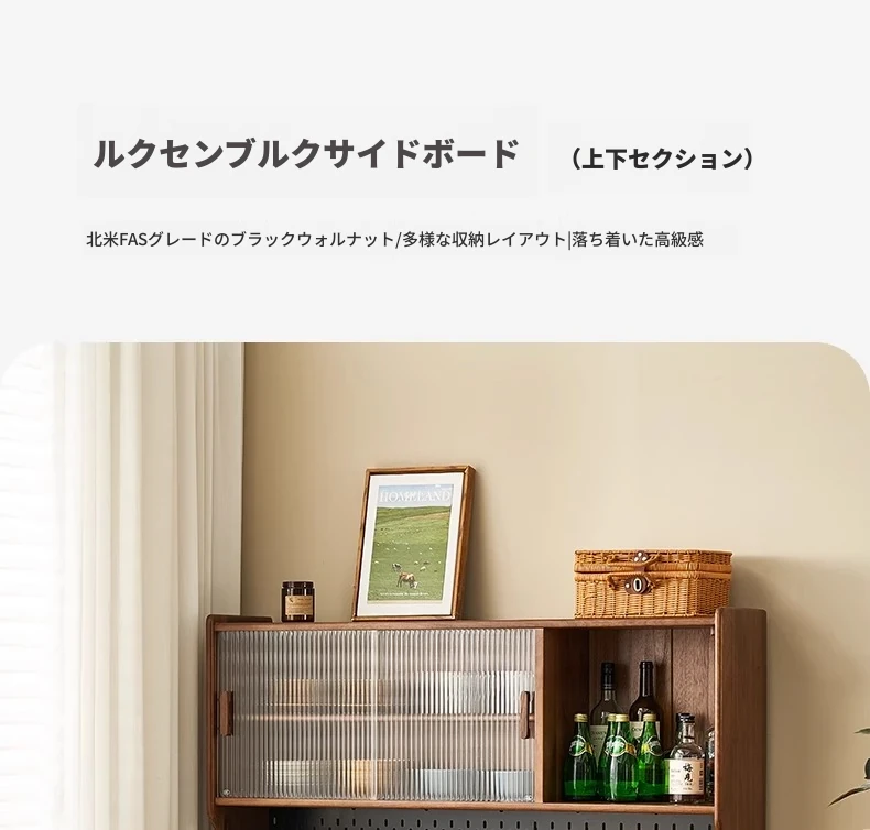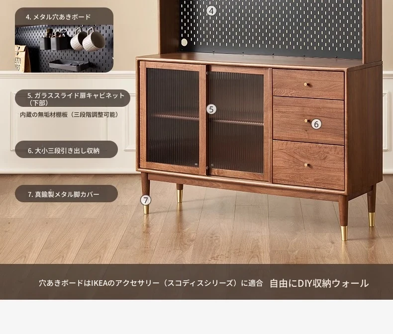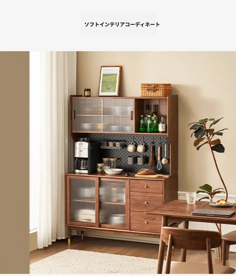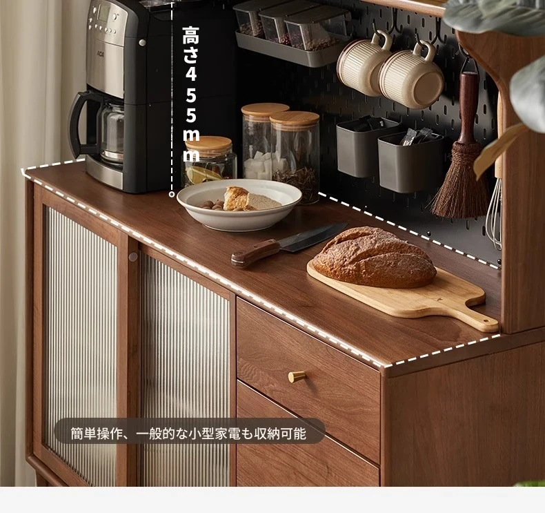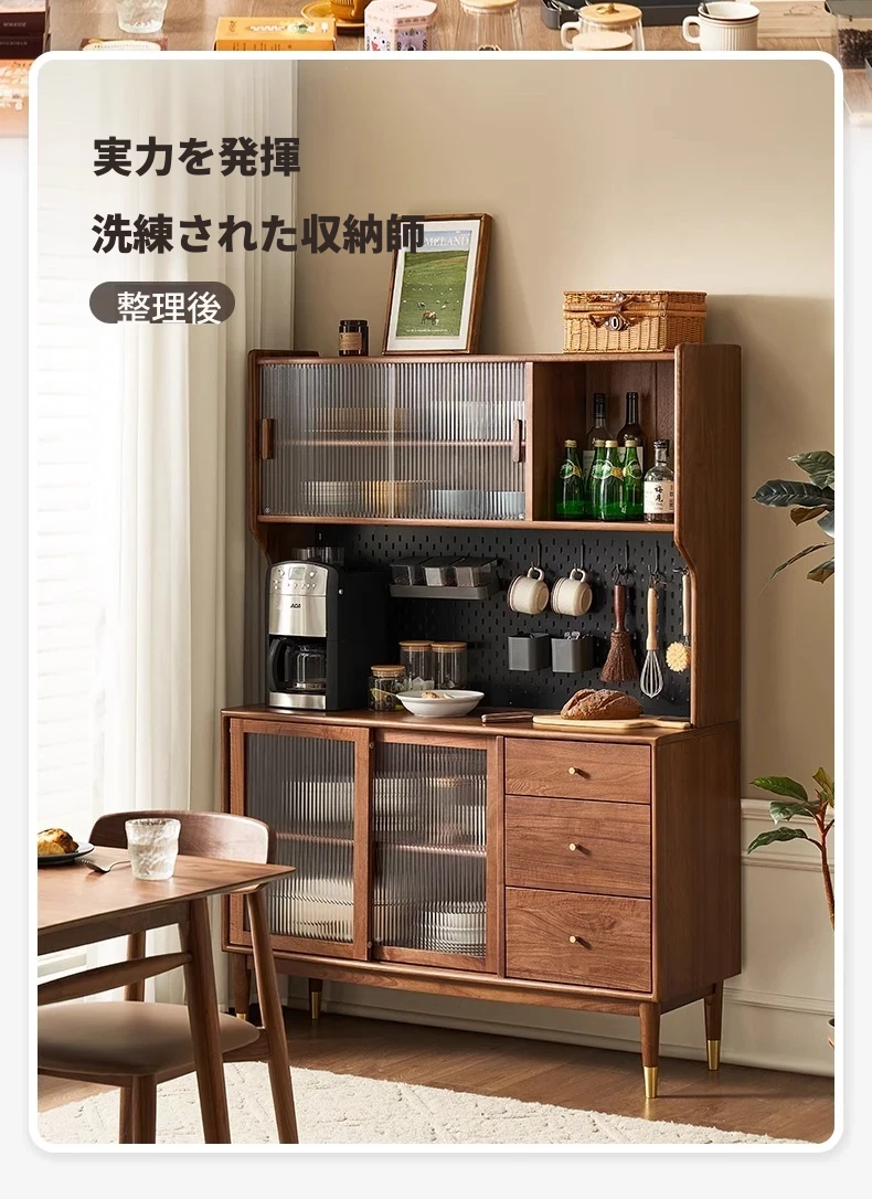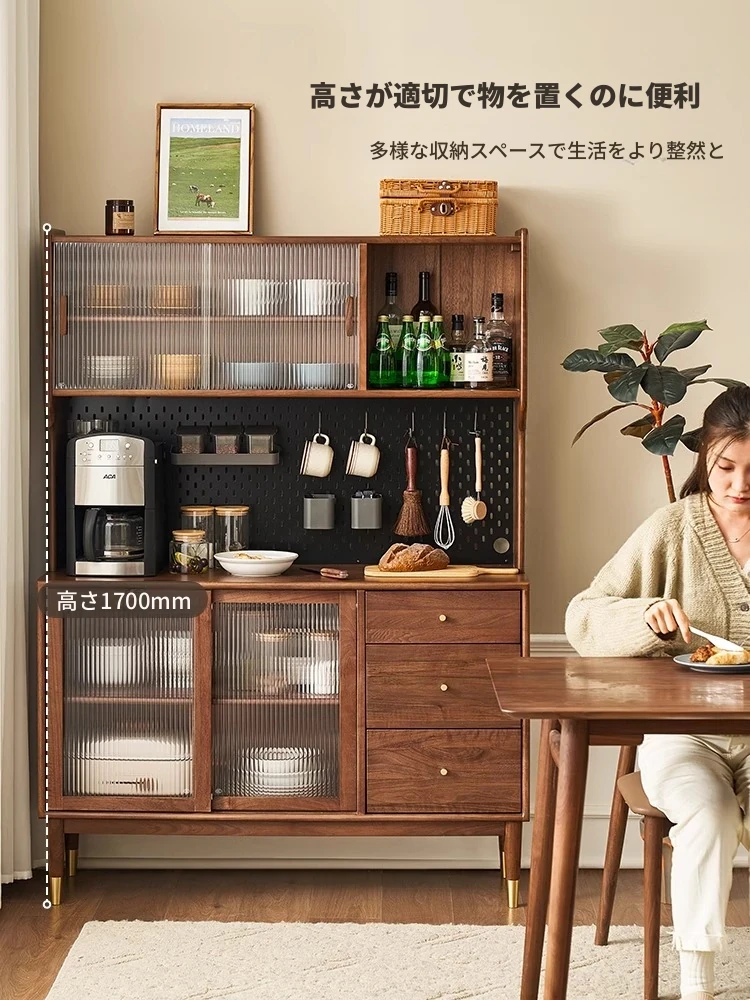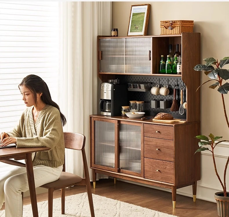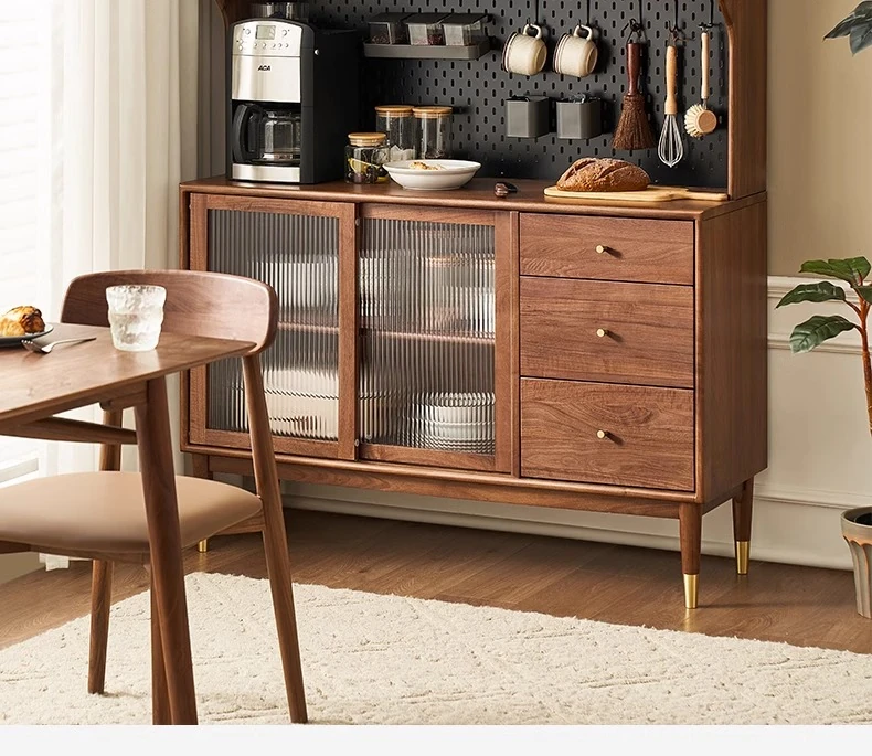 オリジナルエッセンス全無垢材ダイニングサイドボード - シンプルで洗練された北米産ブラックウォルナット製、小型住宅に最適な収納キャビネット。あなたの空間をスタイリッシュに彩ります!