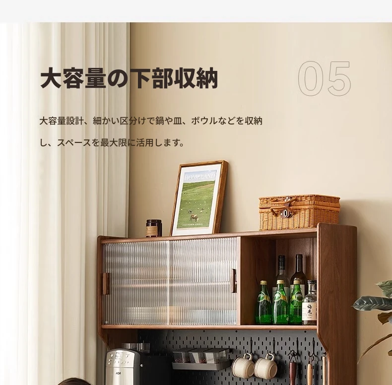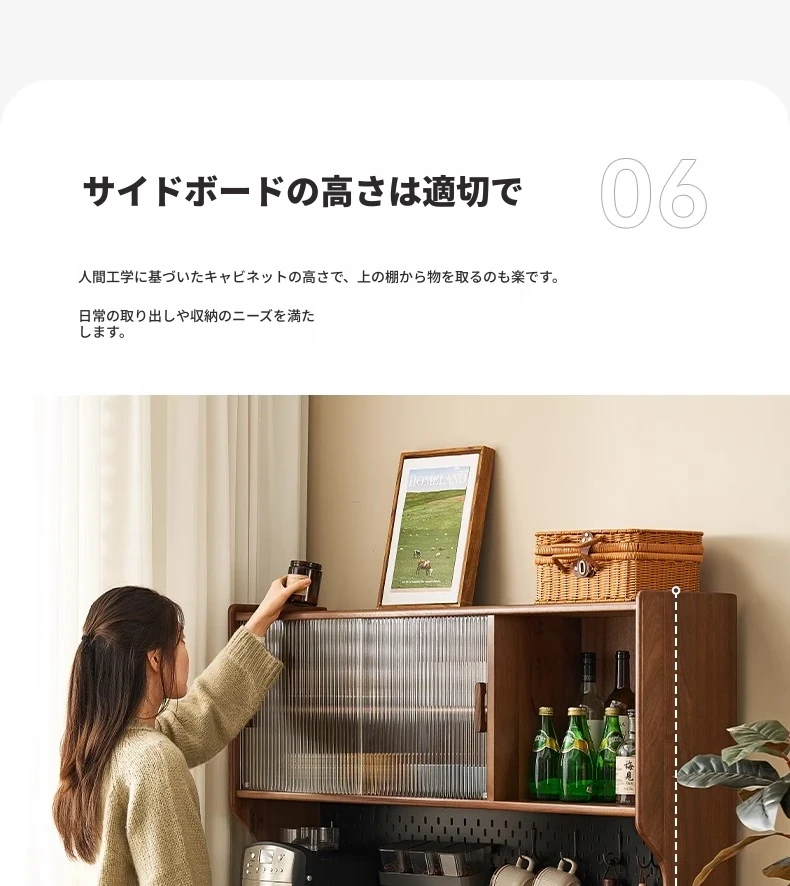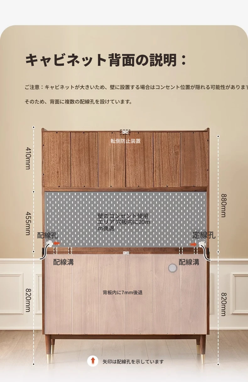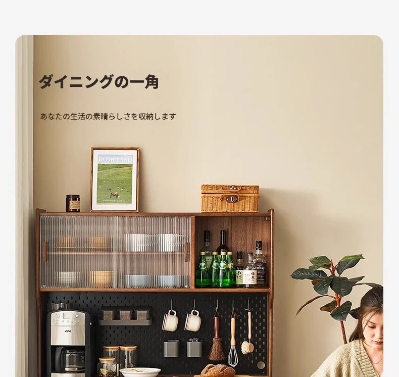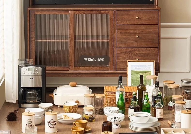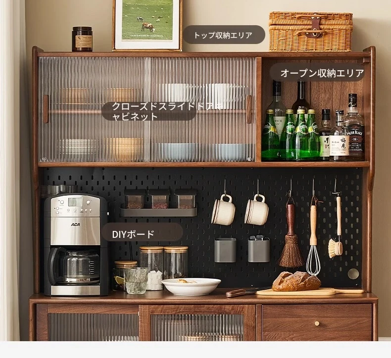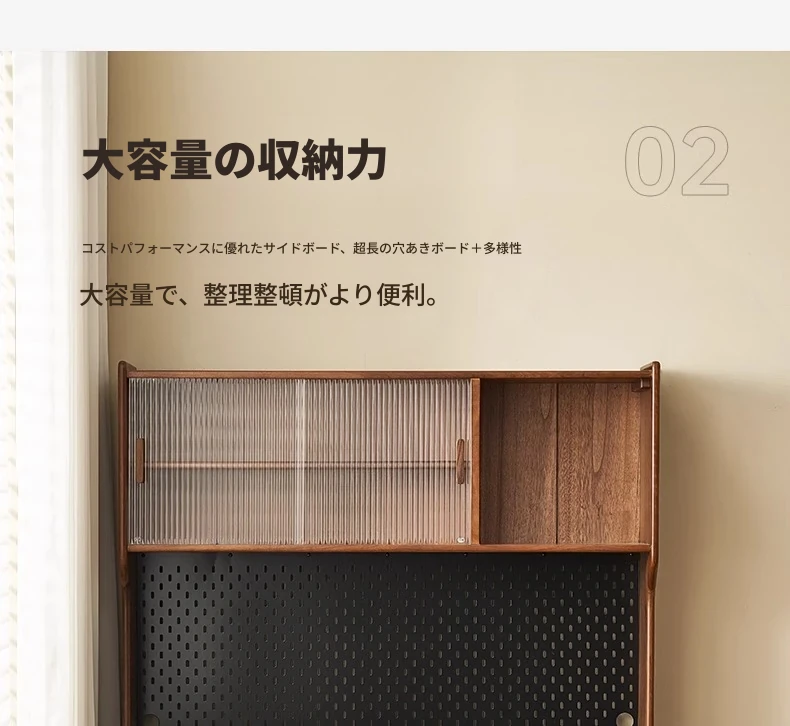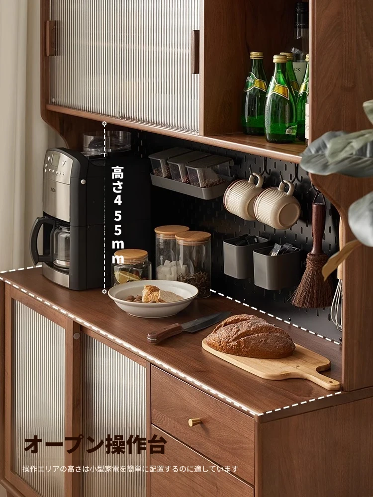 オリジナルエッセンス全無垢材ダイニングサイドボード - シンプルで洗練された北米産ブラックウォルナット製、小型住宅に最適な収納キャビネット。あなたの空間をスタイリッシュに彩ります!