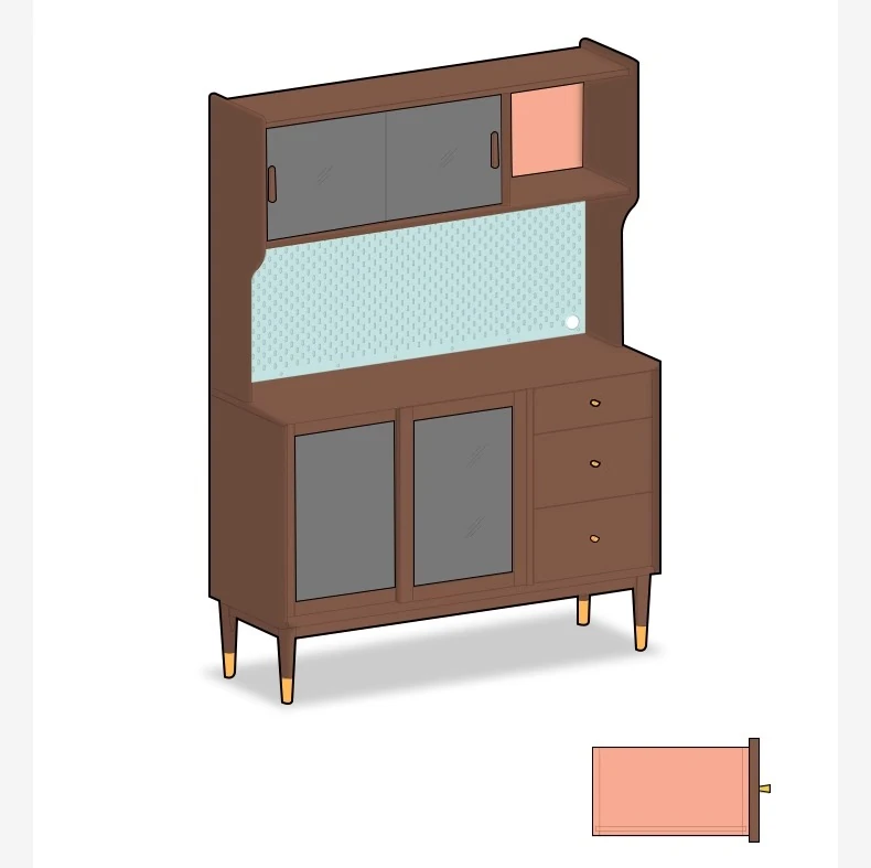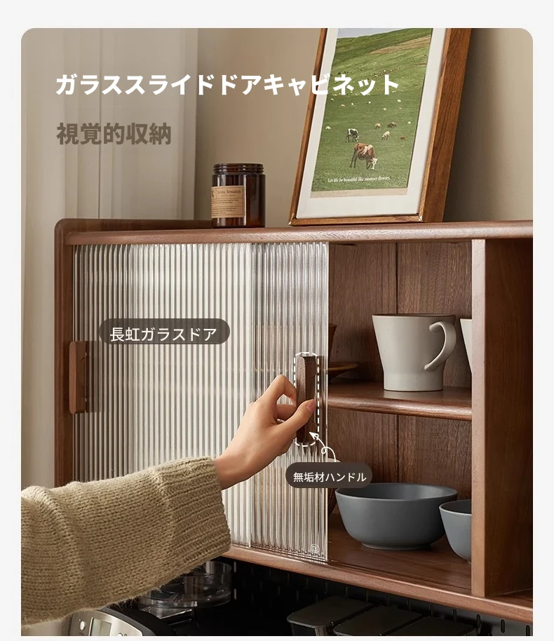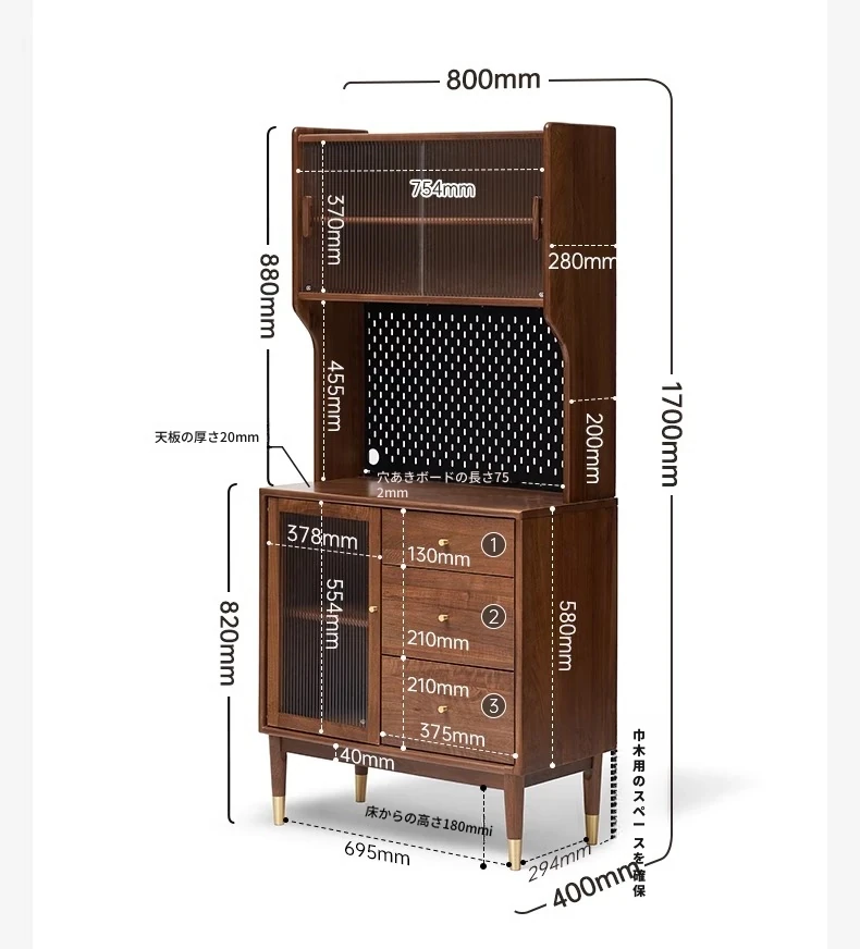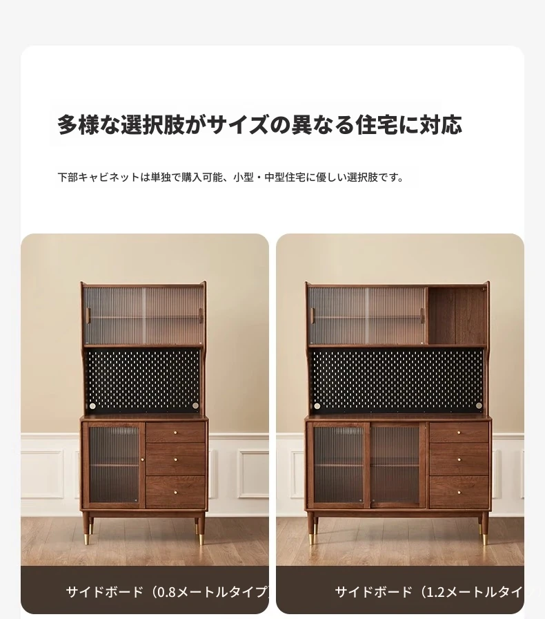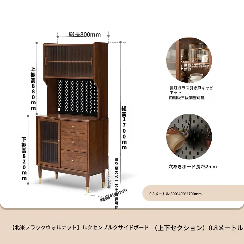 【北米ブラックウォールナット-上下段】0.8メートルサイドボード(800*400*1700mm)