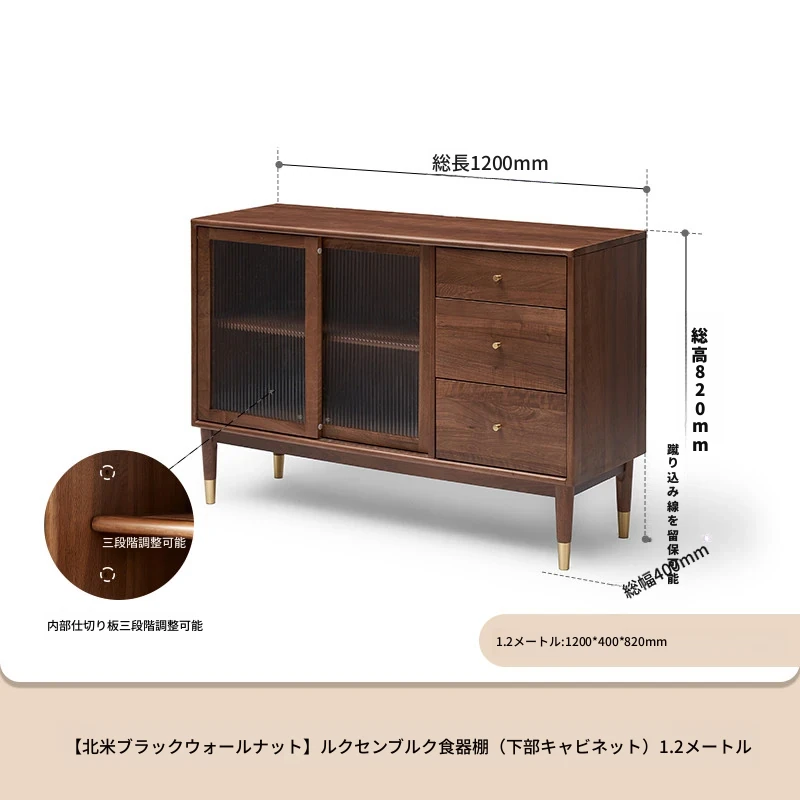 【北米ブラックウォールナット-下段】1.2メートルサイドボード(1200*400*820mm)