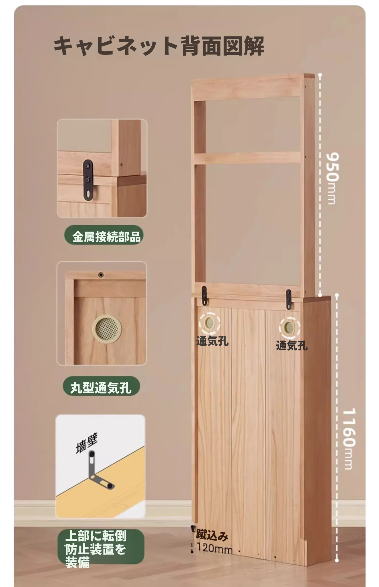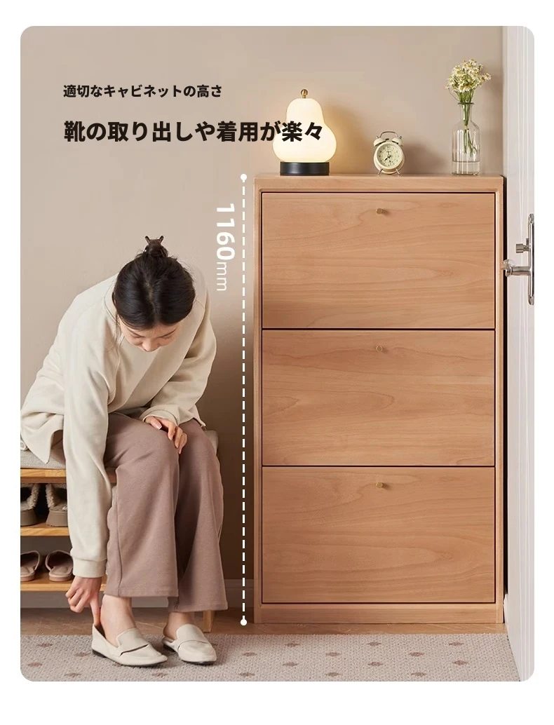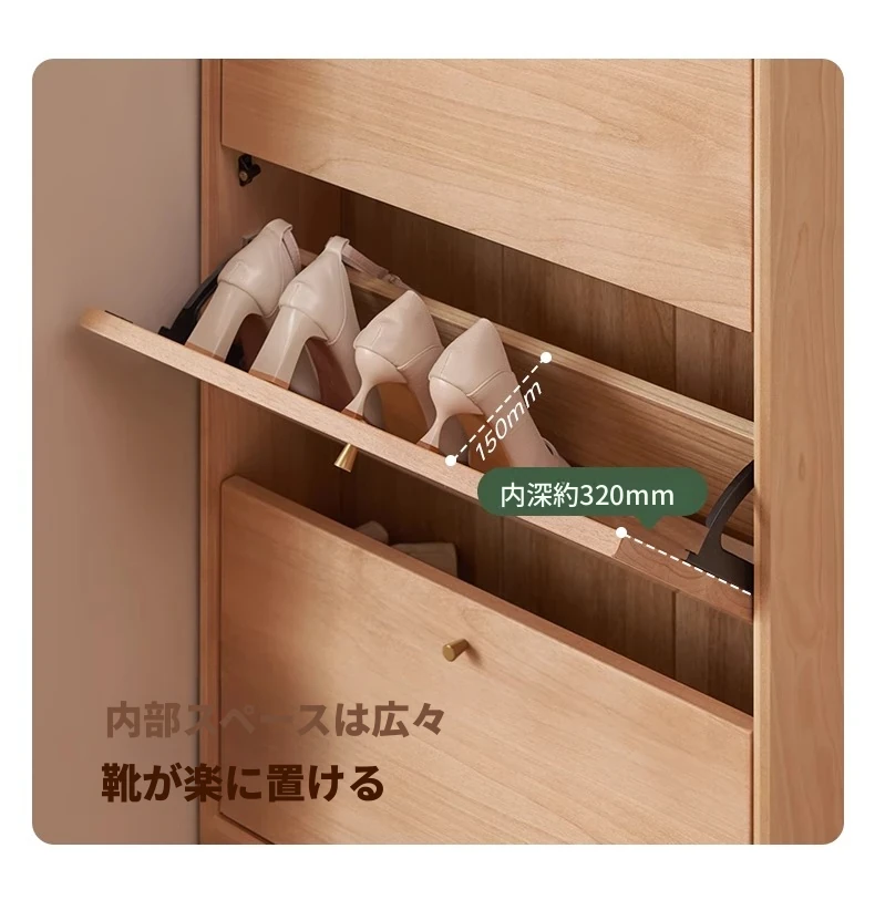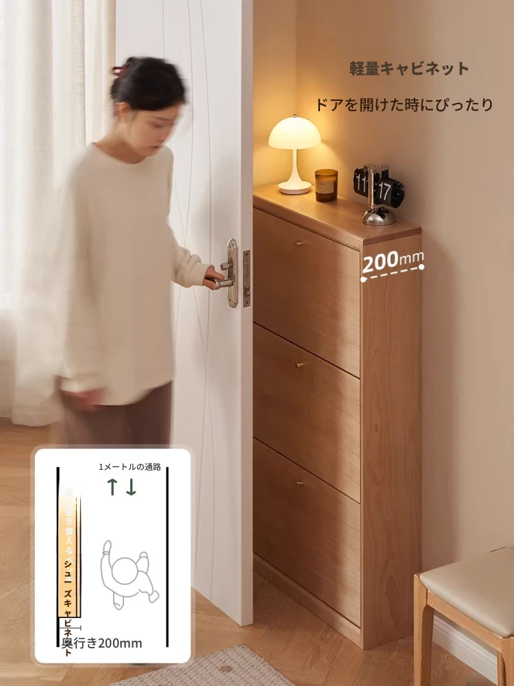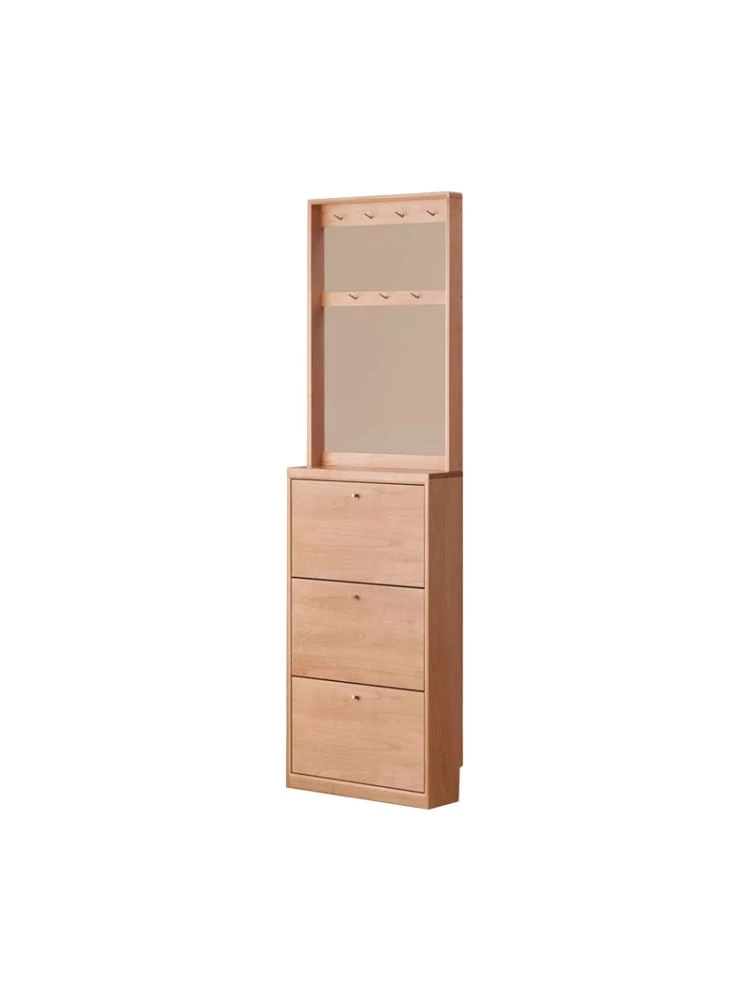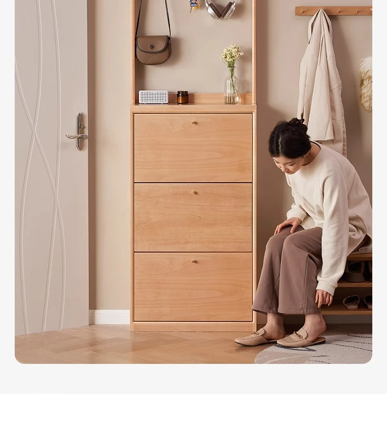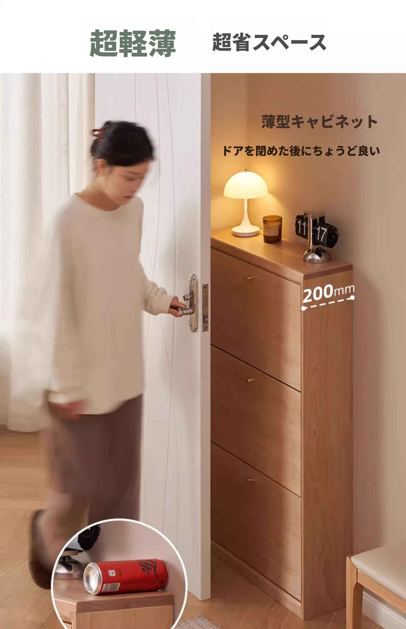 オリジナルエレメンツ無垢材スリムシューズキャビネット、翻転ドアで多層収納!玄関や入居時に最適なコートハンガーも兼ね備えたおしゃれなシューズラック。狭いスペースにもぴったりフィット!