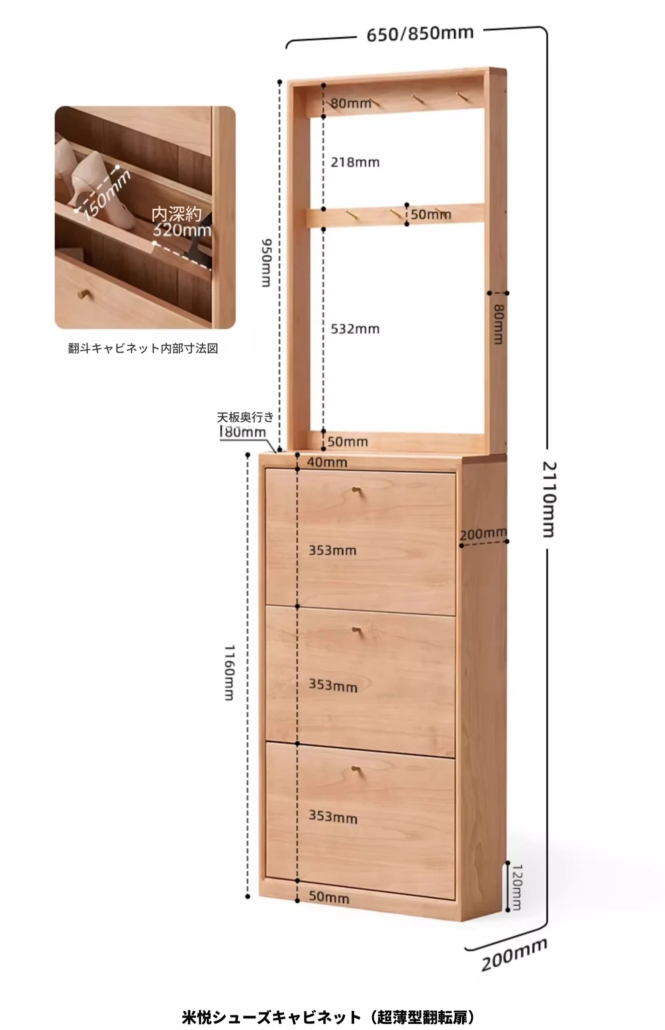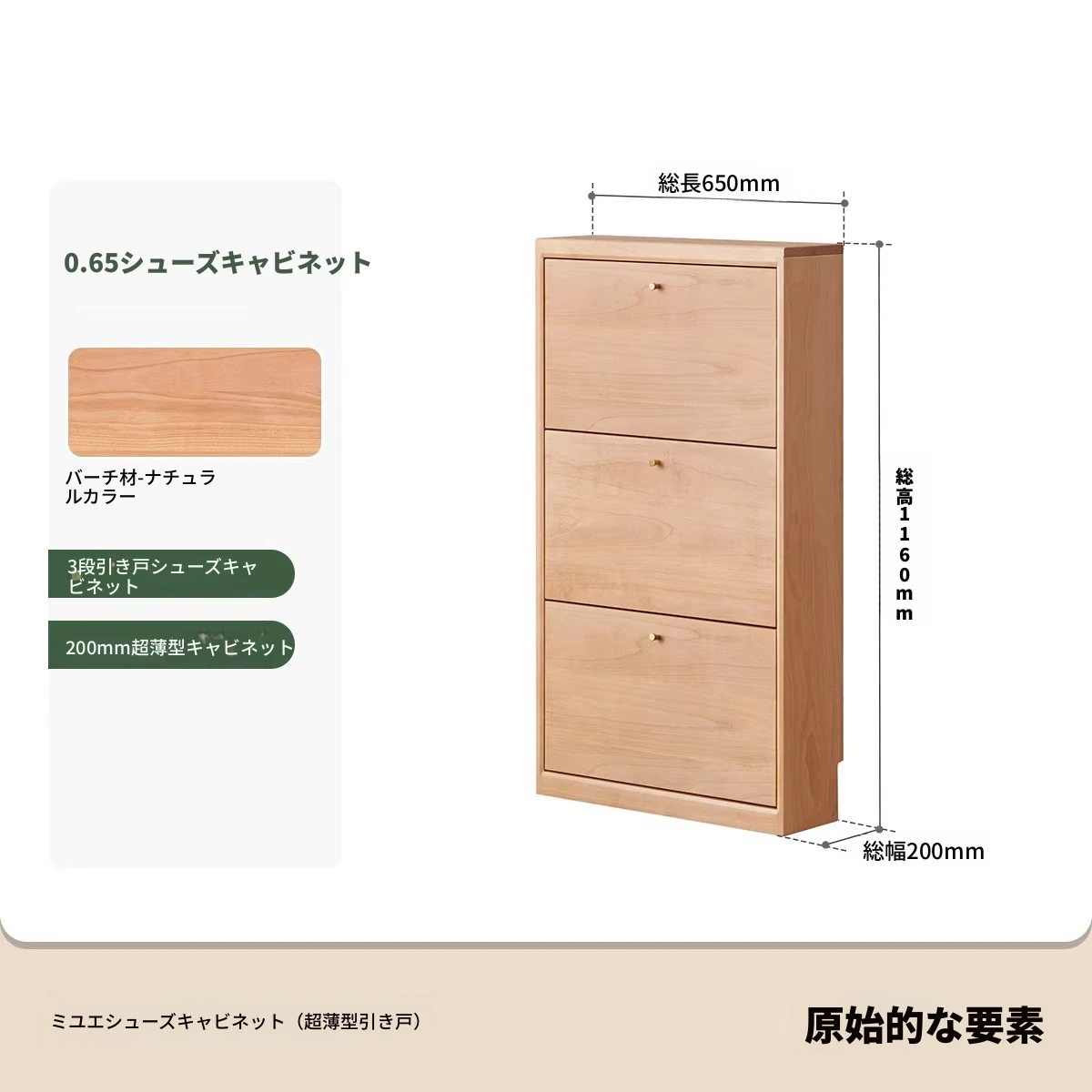 【バーチ-ナチュラルカラー-下部】0.65mメートル悦シューズキャビネット(超薄型翻開ドア)