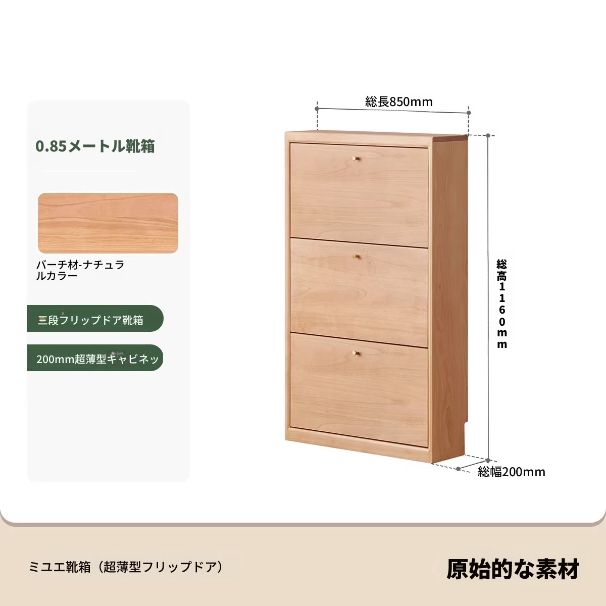 【バーチ-ナチュラルカラー-下部】0.85mメートル悦シューズキャビネット(超薄型翻開ドア)