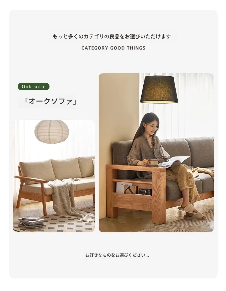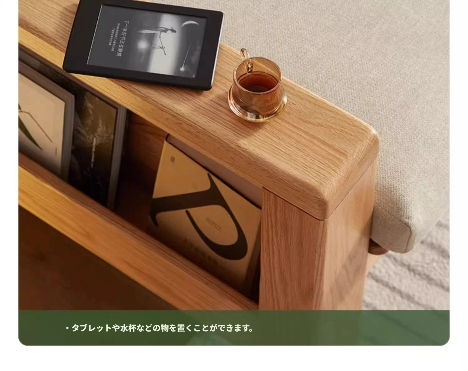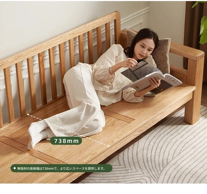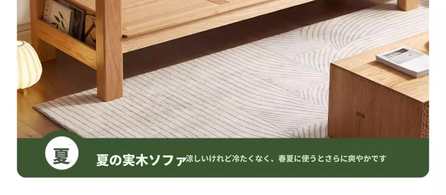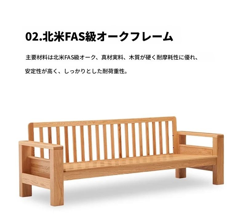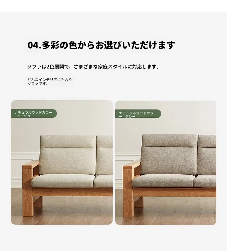 原木無垢材使用!収納付き3人掛けソファ - オーク材製、小型リビングに最適!冬も夏も快適に過ごせる実用的なソファ。高品質な無垢家具で、心地よい空間を演出します。