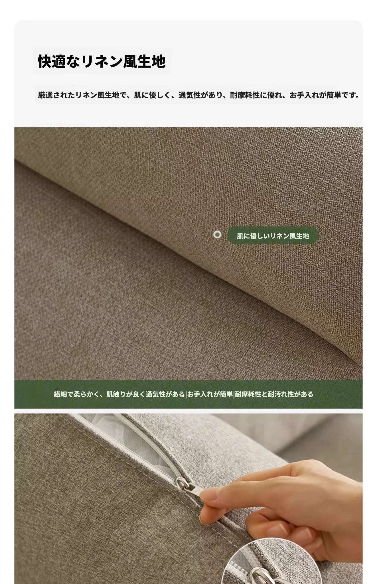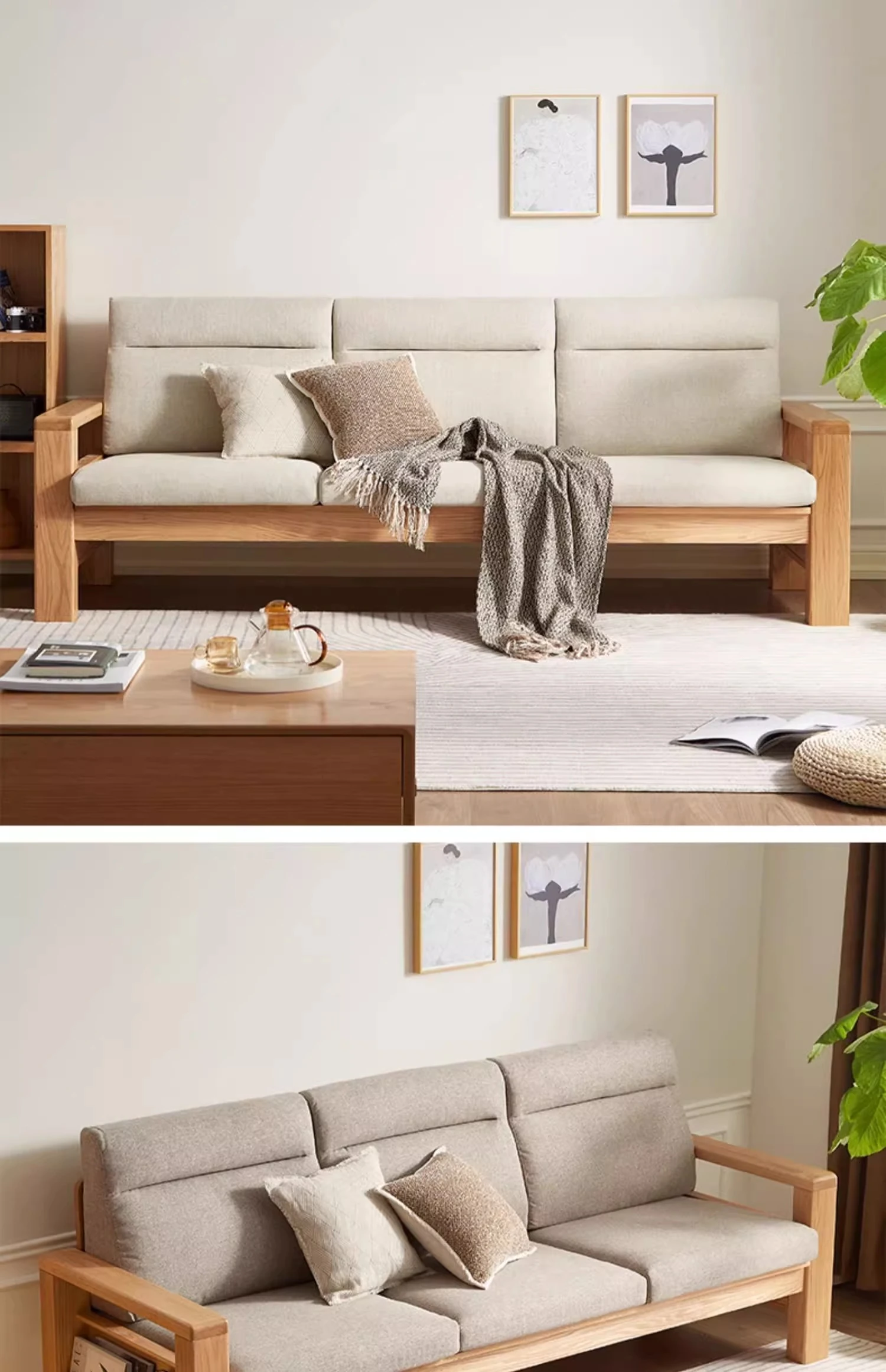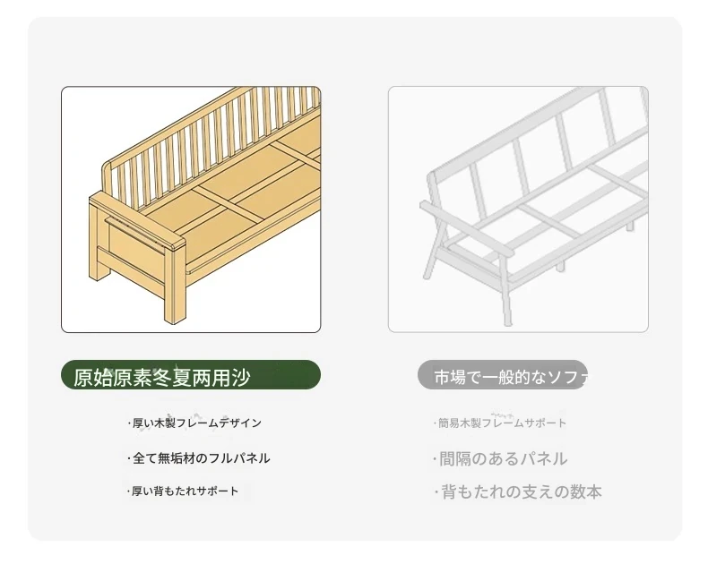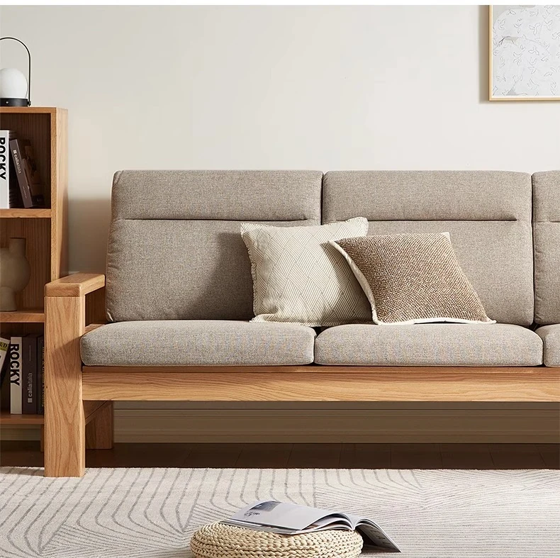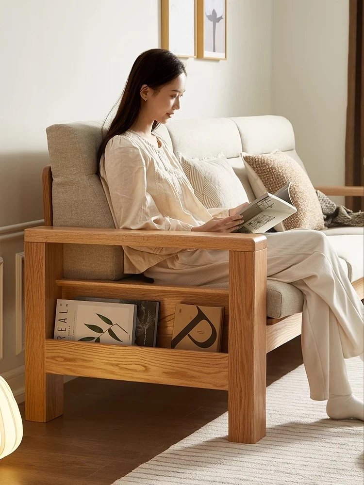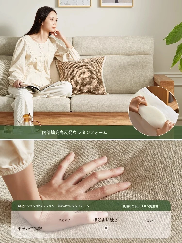 原木無垢材使用!収納付き3人掛けソファ - オーク材製、小型リビングに最適!冬も夏も快適に過ごせる実用的なソファ。高品質な無垢家具で、心地よい空間を演出します。