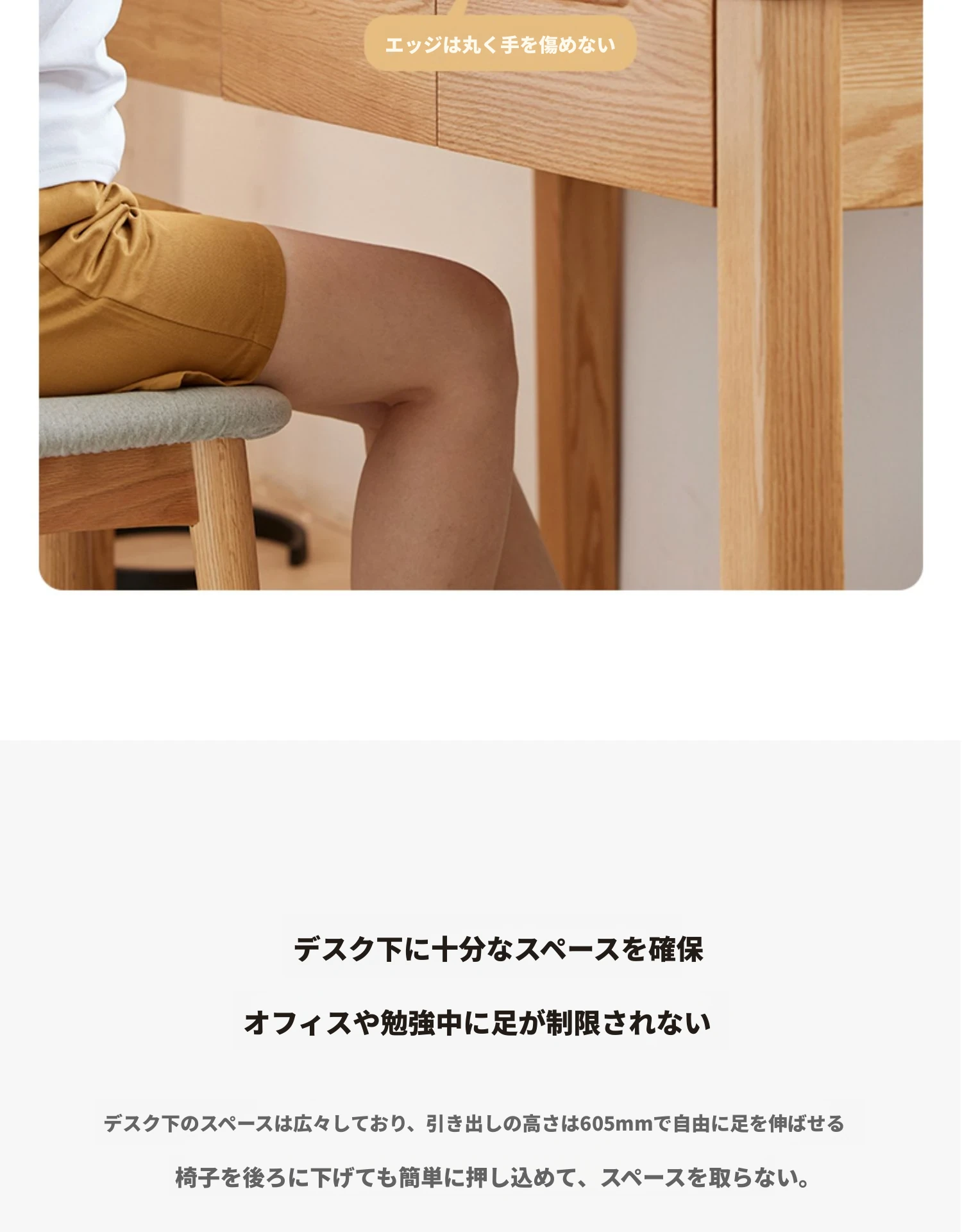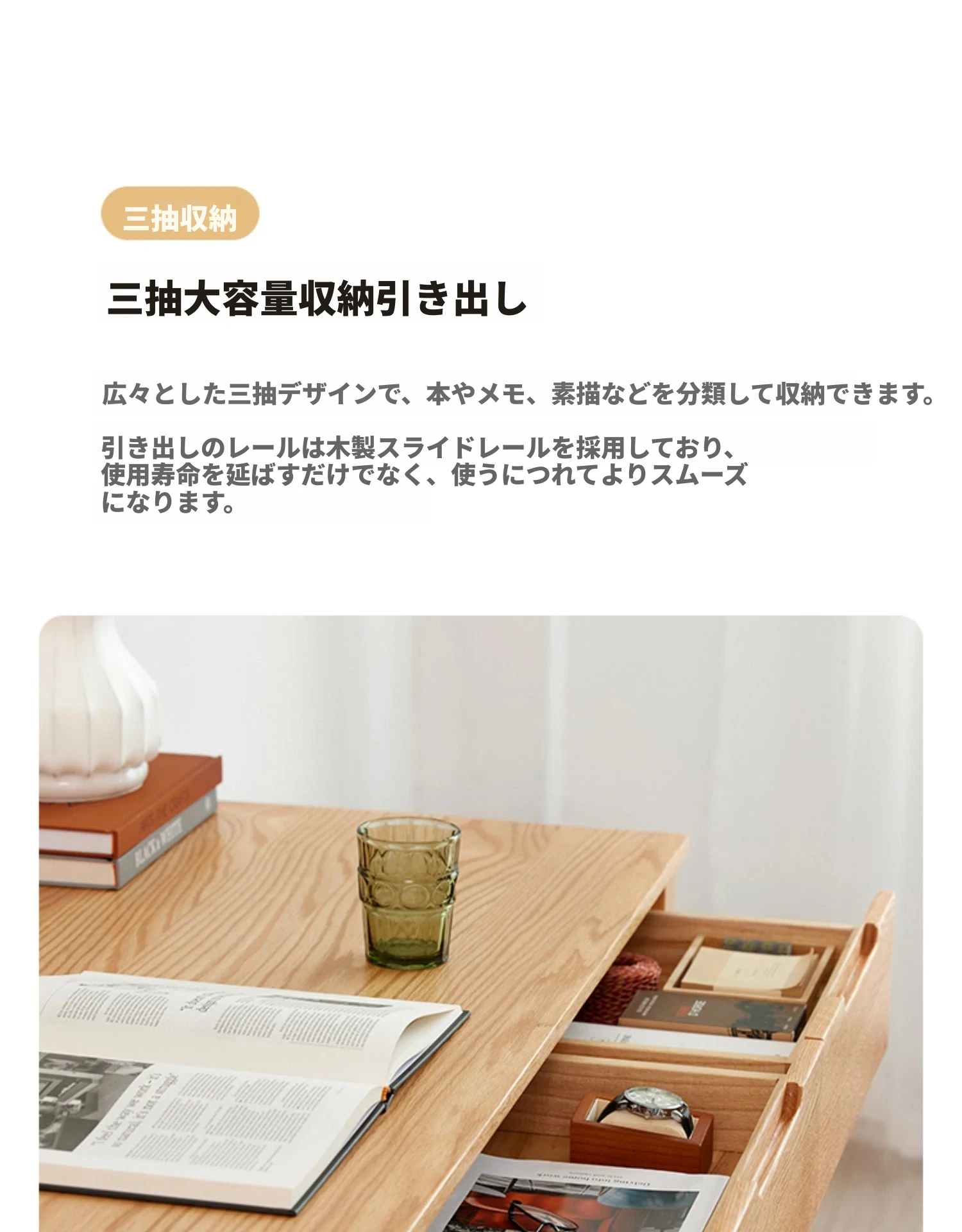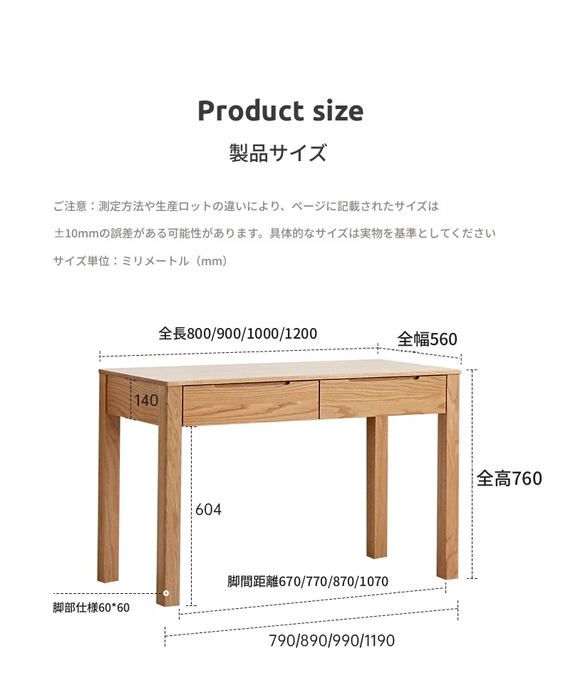 1.0m引き出し2つ-アップグレードA版【ナチュラルカラー】