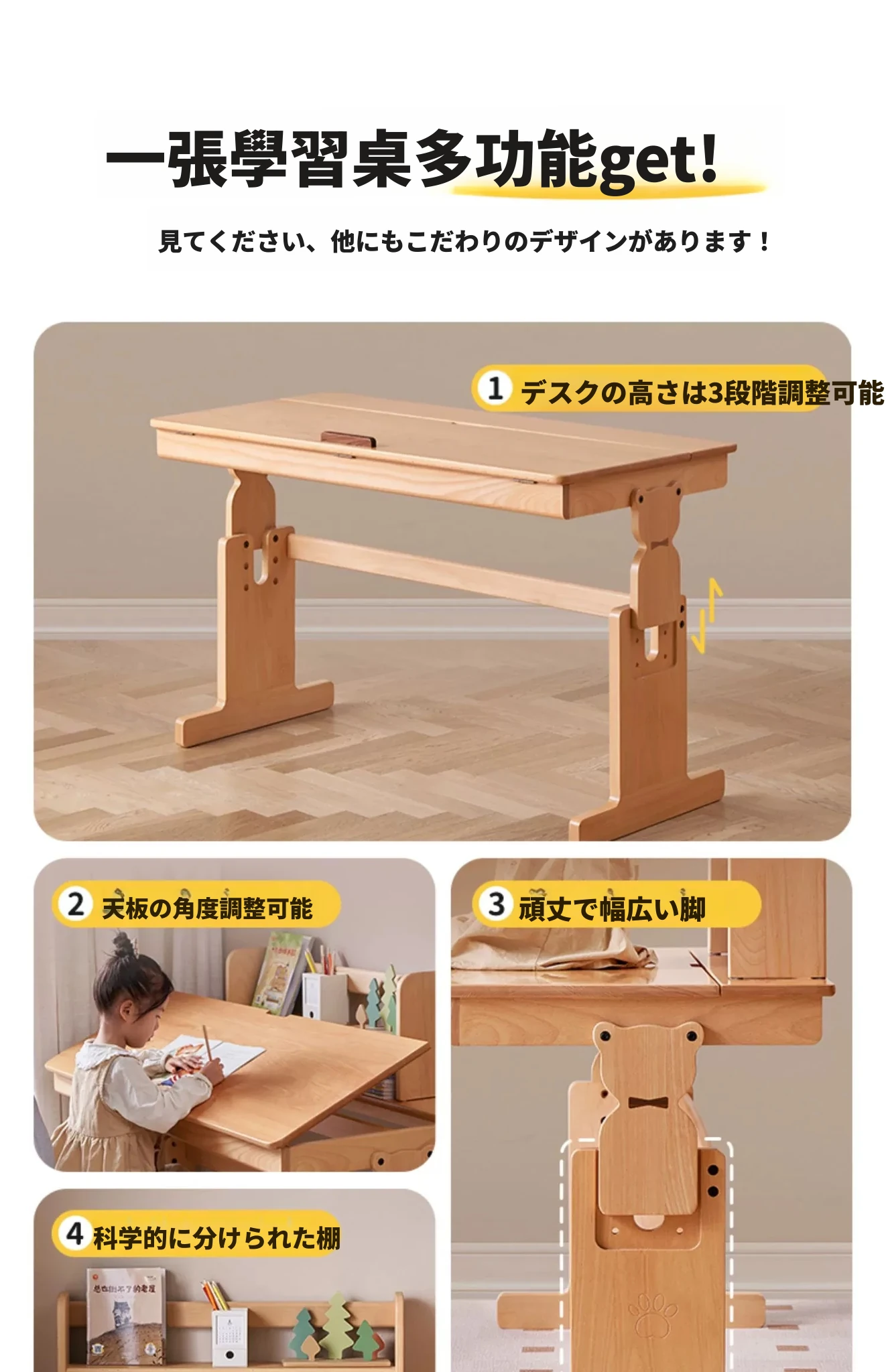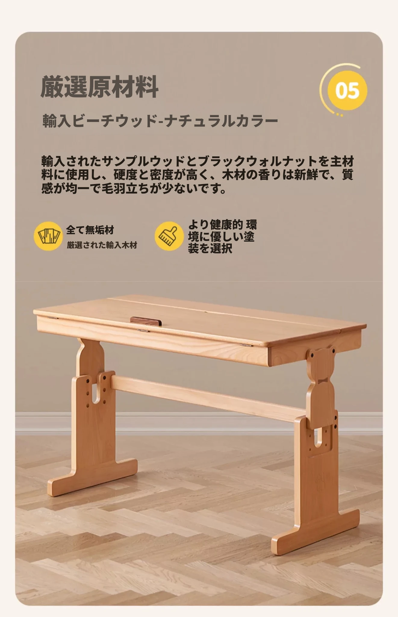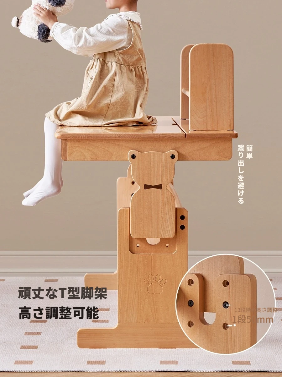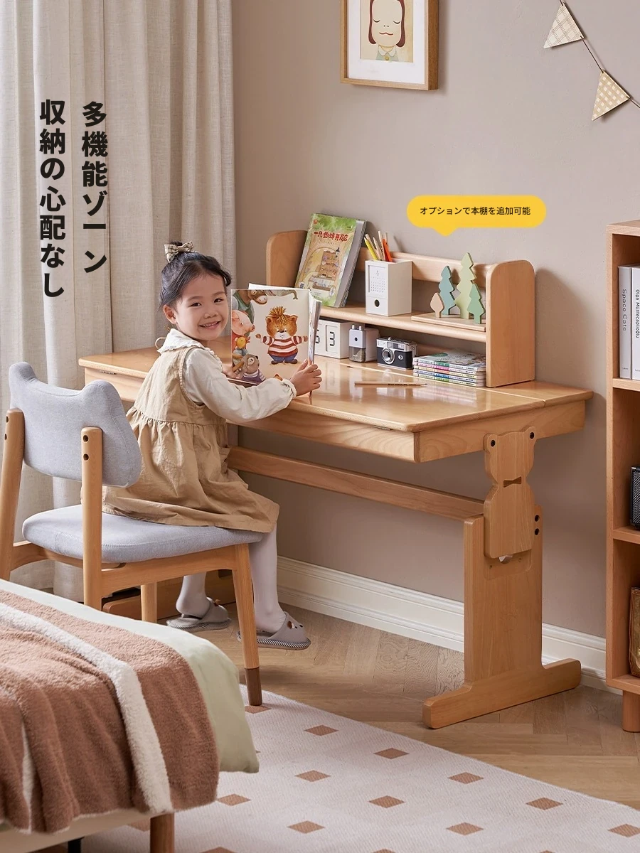 オーソリティフルソリッドウッド学習デスク - 多機能&昇降可能!小学生に最適なバーチ材の家庭用子供用デスクで、快適な学習環境を提供します。