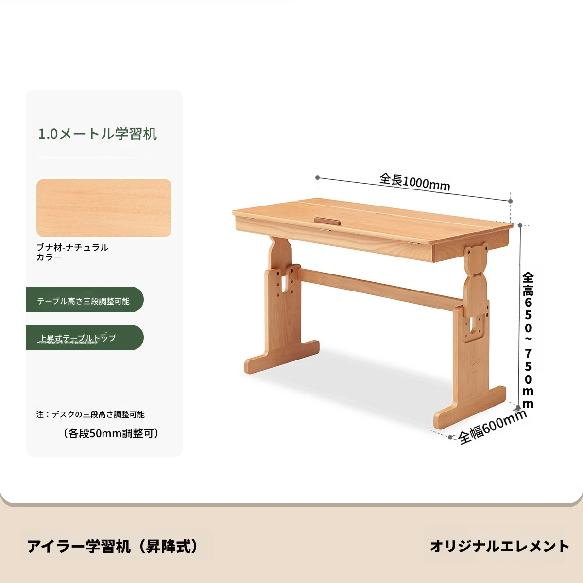 原木色-1.0m昇降学習机