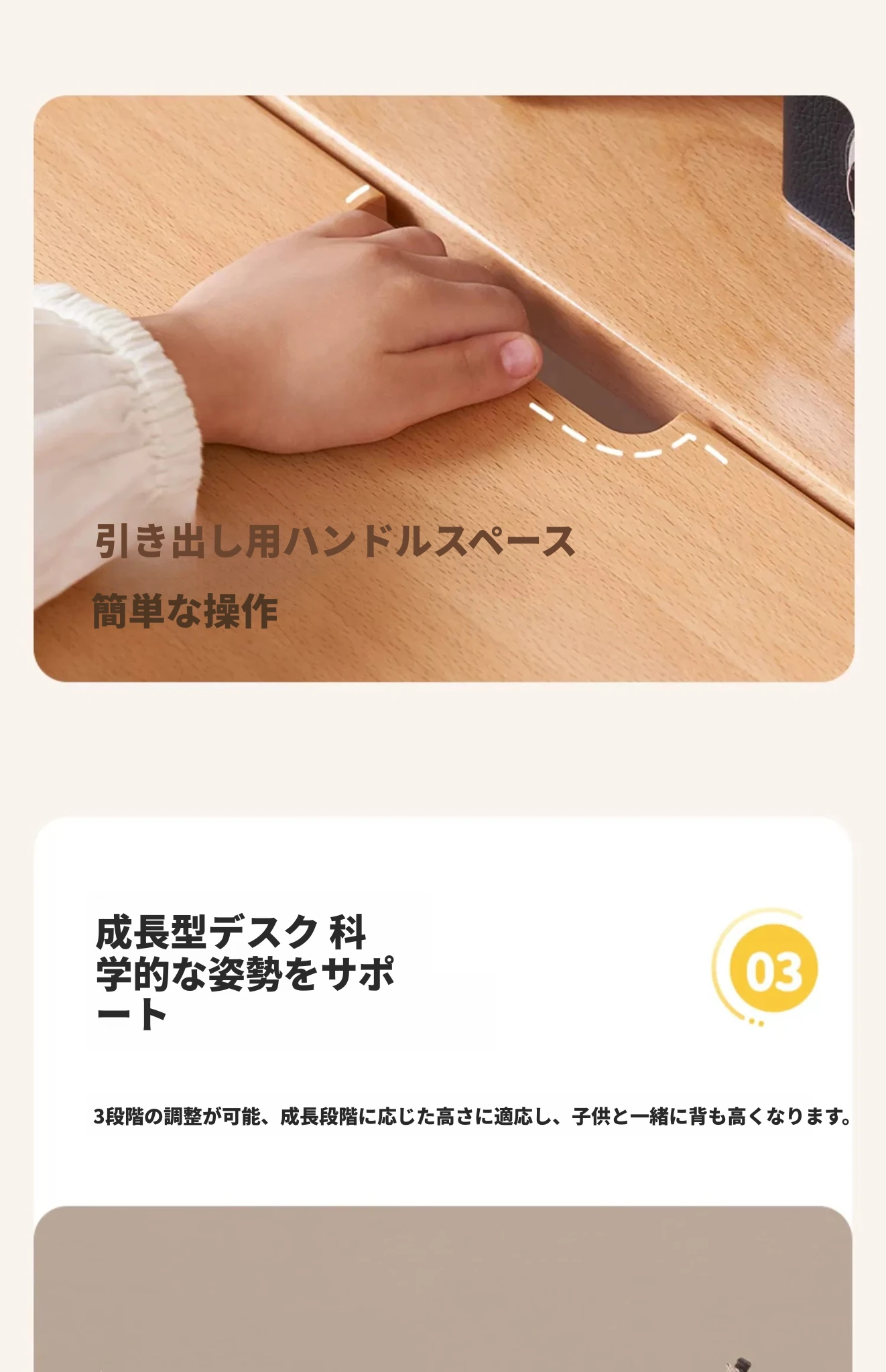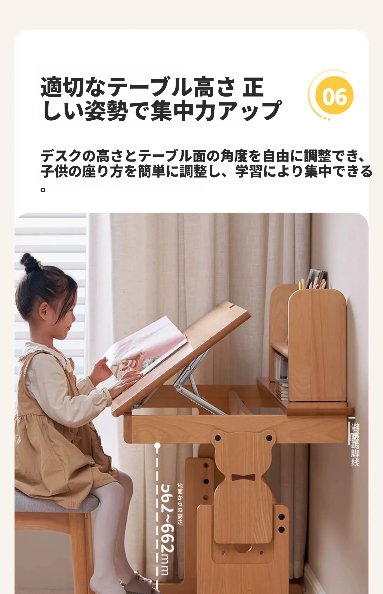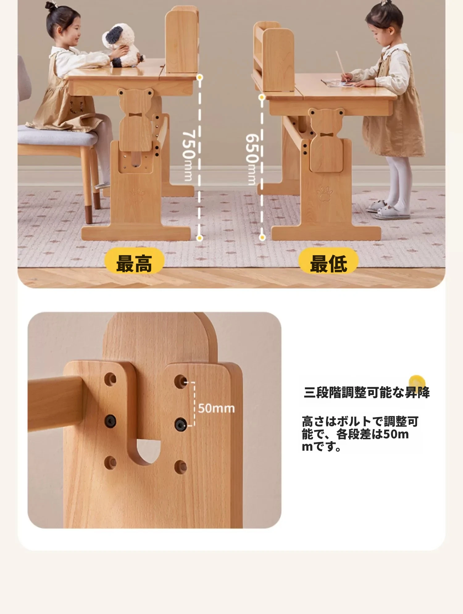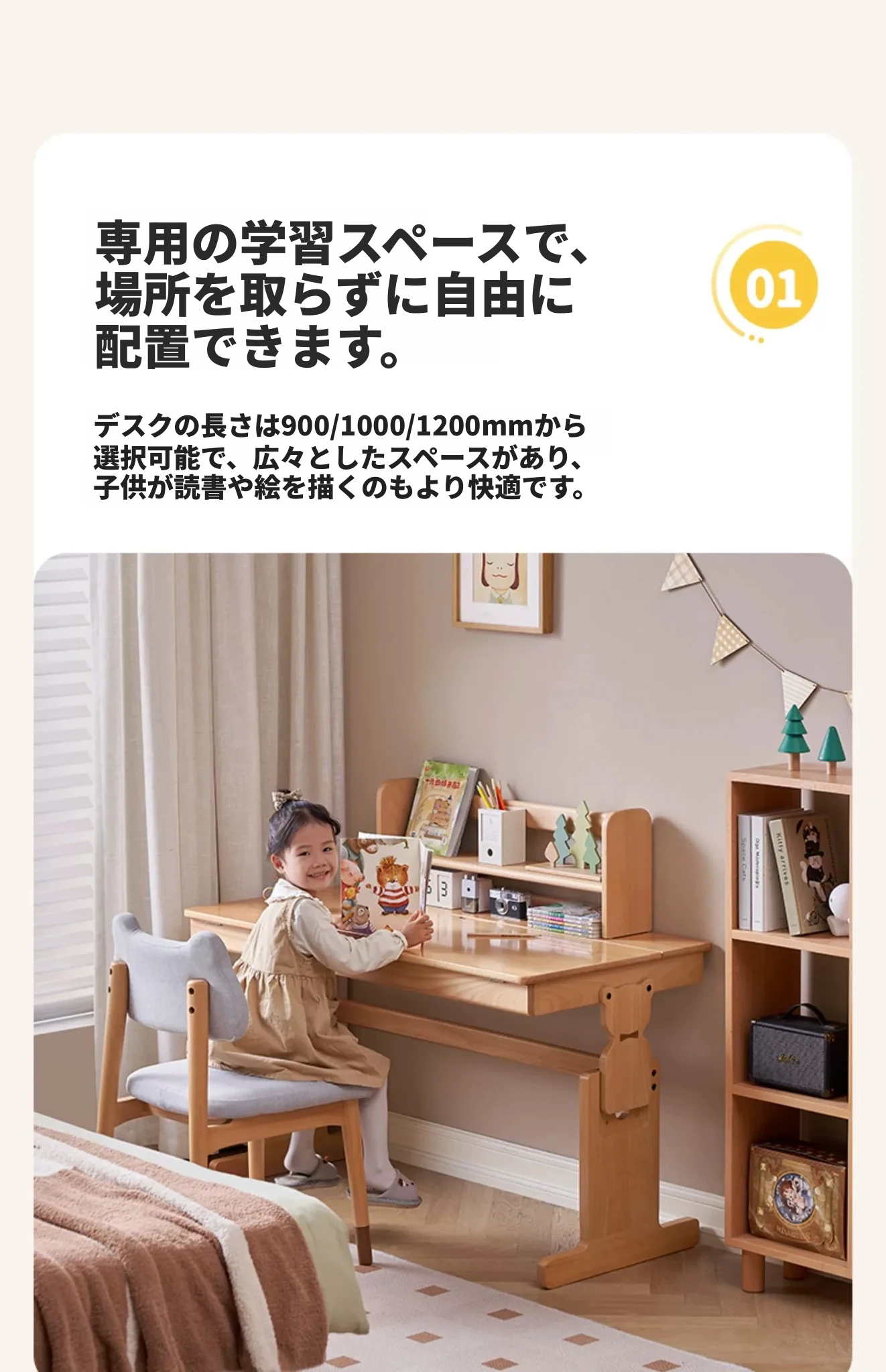 原木色0.9m昇降学習机+小さな本棚