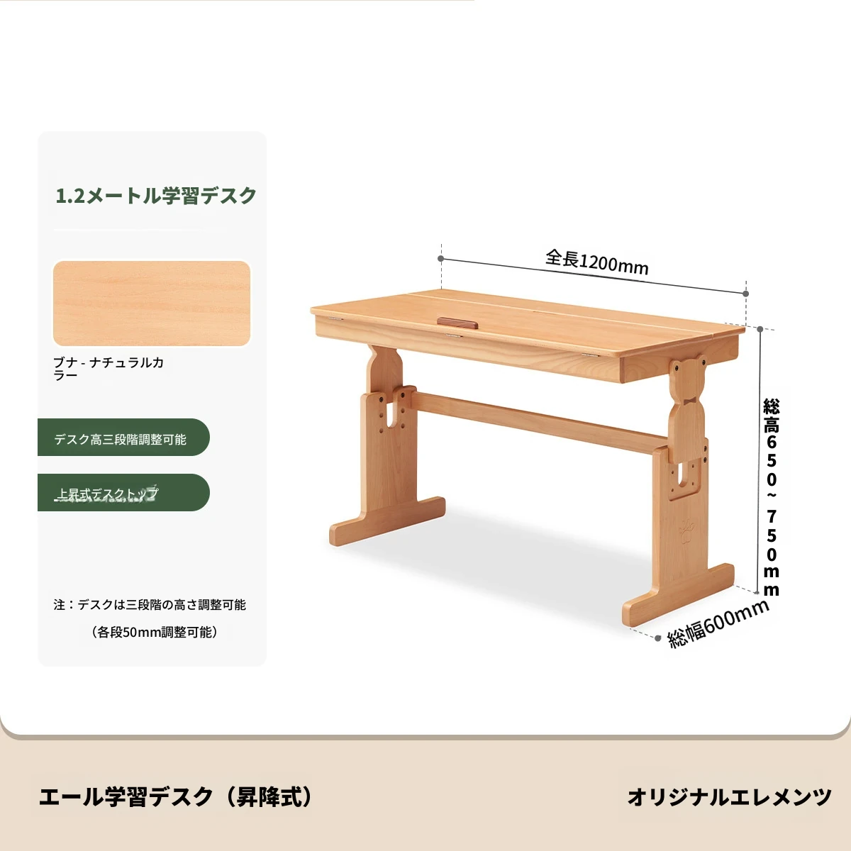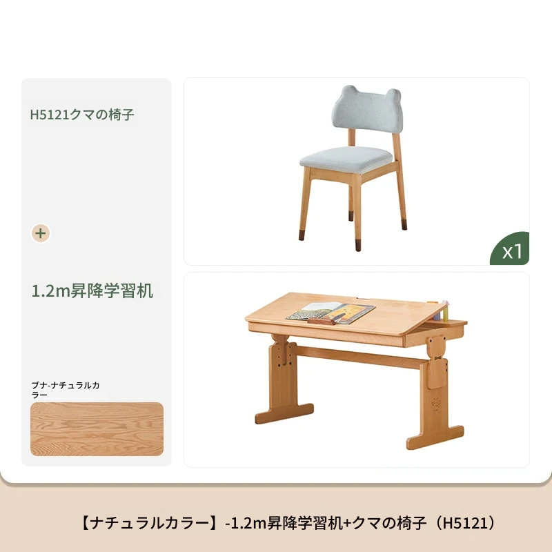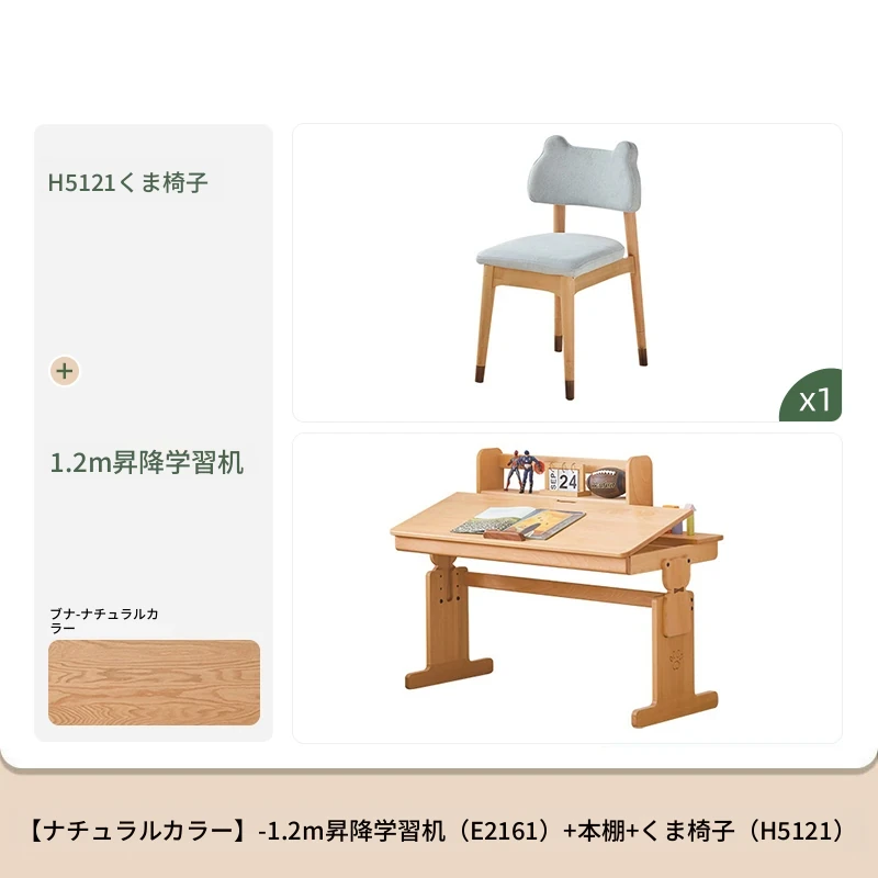 原木色1.2m昇降学習机+小さな本棚