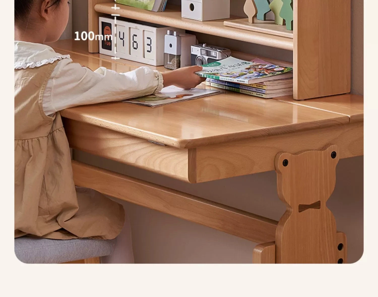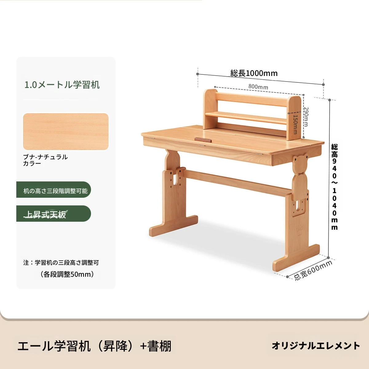 原木色1.0m昇降学習机+小さな本棚